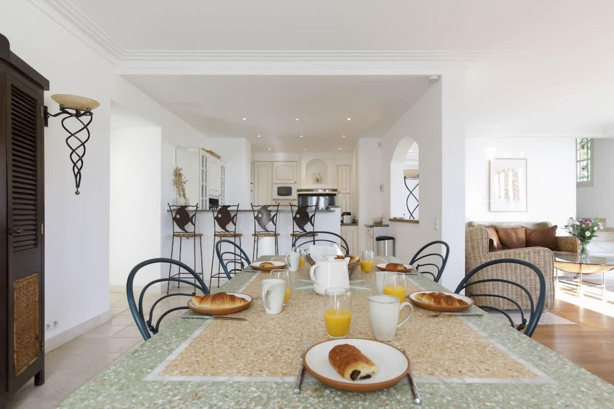 Når du ankommer til denne rummelige Villa Oneiro, bemærker du latter, solskin og havbrise sætter stemningen - perfekt til en gruppe venner eller en stor familie, der ønsker en blanding af afslappende dage og sjove eventyr. Beliggende i bakkerne i Théoule-sur-Mer, omgivet af skovklædte skråninger og Estérel-massivets røde klippekyst, forener dette ophold natur, komfort og mindeværdige nætter. Villaen strækker sig over flere etager med rummelige fællesområder designet til social sammenkomst og planlægning af dagene, et moderne køkken klar til fællesmadlavning og udendørs terrasser med malerisk udsigt. Med hensyn til hygge får du to soveværelser med adgang til en terrasse med havudsigt, hver møbleret med en dobbeltseng, et tredje soveværelse med 2 enkeltsenge og en terrasse og et fjerde med en queensize-seng. Du kan rumme 3 mere i kælderrummet, der er udstyret med en køjeseng og en sovesofa. Aftenerne er ubesværet magiske her, mens solen skinner gyldent, grillfester på terrassen, fællesmiddage efterfulgt af brætspil eller vin under stjernerne. Du er tæt nok på småbyens caféer og strandbarer, hvis du ønsker lokal stemning og livlige steder ved kysten. Efter en dag på stranden eller en vandretur i bakkerne kan du gå ned til en af Théoules mange bugter og strande, hvor turkisblåt vand møder røde klipper. Uanset om du foretrækker sandbugter eller vilde klippefyldte steder, er der en kyststrækning, der venter på dig. Vandsportsentusiaster kan dykke, snorkle eller padle langs kysten; landsentusiaster kan udforske skovstier, kyststier eller naturskønne udsigtspunkter i Estérel-bakkerne.