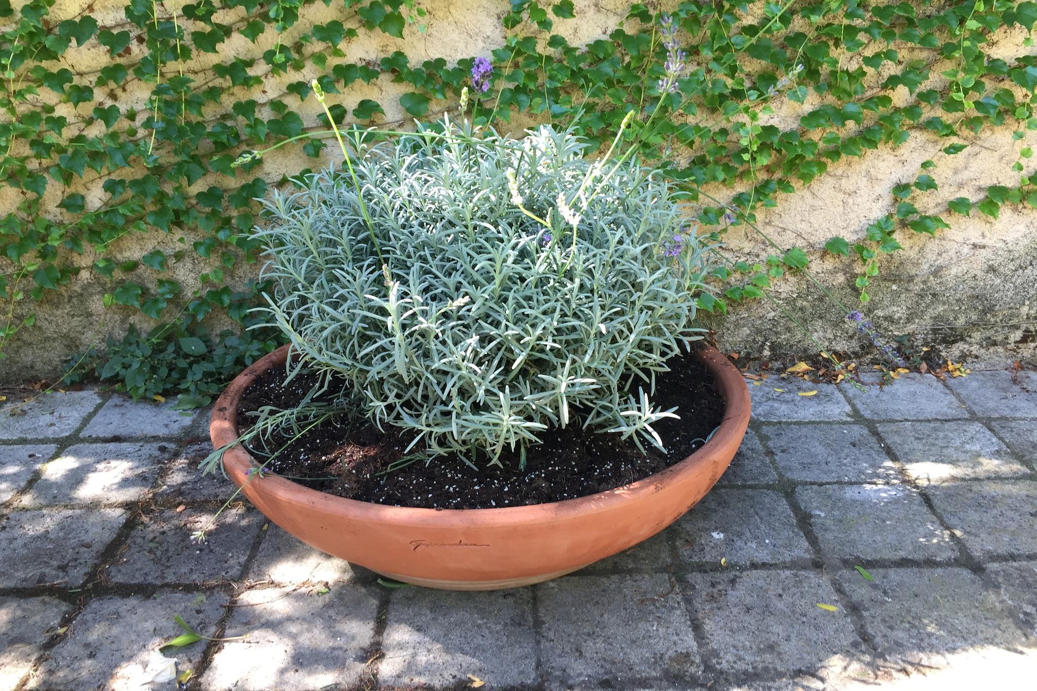 Gammelt vinlager med terrasse og have