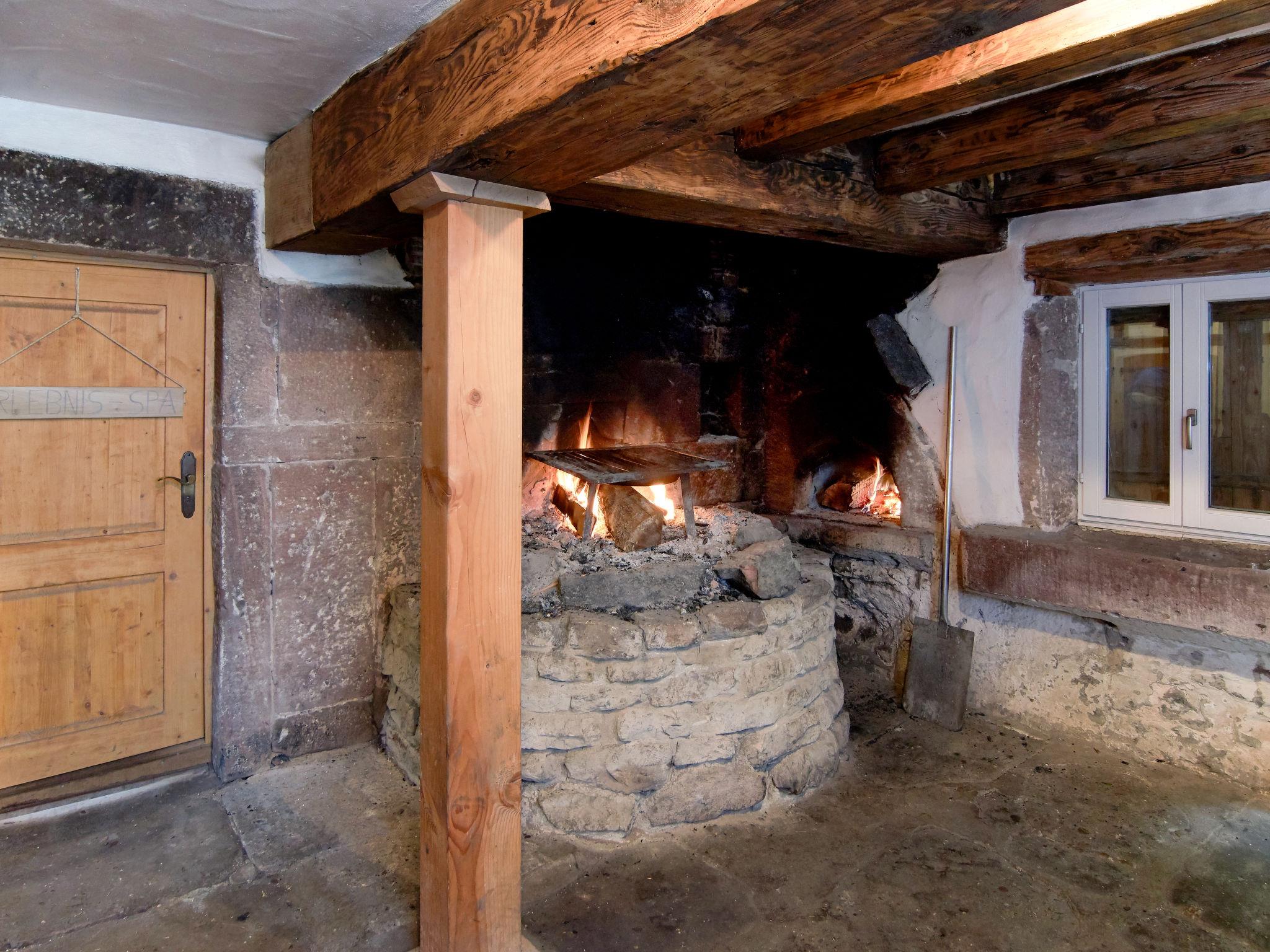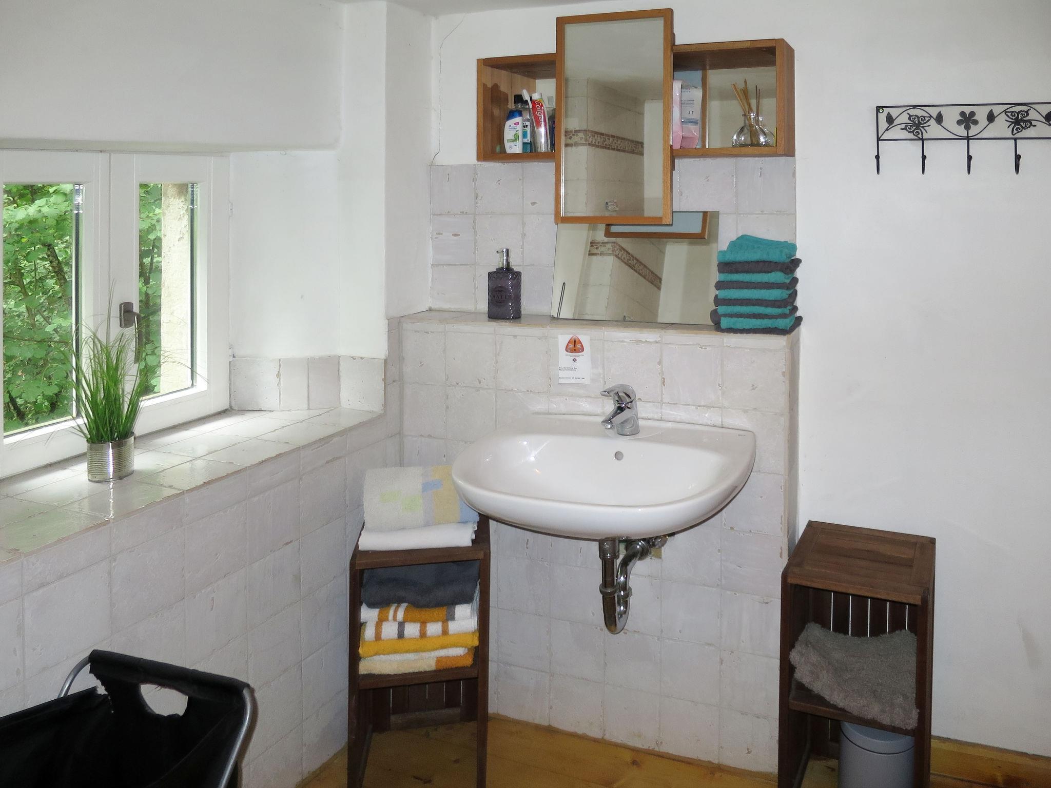 House "Escher", detached. 3.8 km from the centre of Thiéfosse, 42 km from the centre of Épinal, 110 km from the centre of Nancy, in a quiet position on a slope, 6 km from the lake, in the woods. Private: property 350 m2 with meadow. Patio, garden furniture, fireplace. In the house: sauna. Storeroom available. 200 m long bumpy, narrow motor access to the house (via unmade road). Parking (for 5 cars) on the premises. Supermarket 6 km, bus stop "Thiefosse Centre" 4 km. Groups of teenagers on request only. The tap water has no drinking water quality. Important note: Water supply from our own spring. In the event of extreme drought during the season, it may not be possible to guarantee an adequate water supply. In this case, the property will be cancelled by HHD free of charge and any amounts already paid will be refunded. The customer is not entitled to make any further claims in this regard.