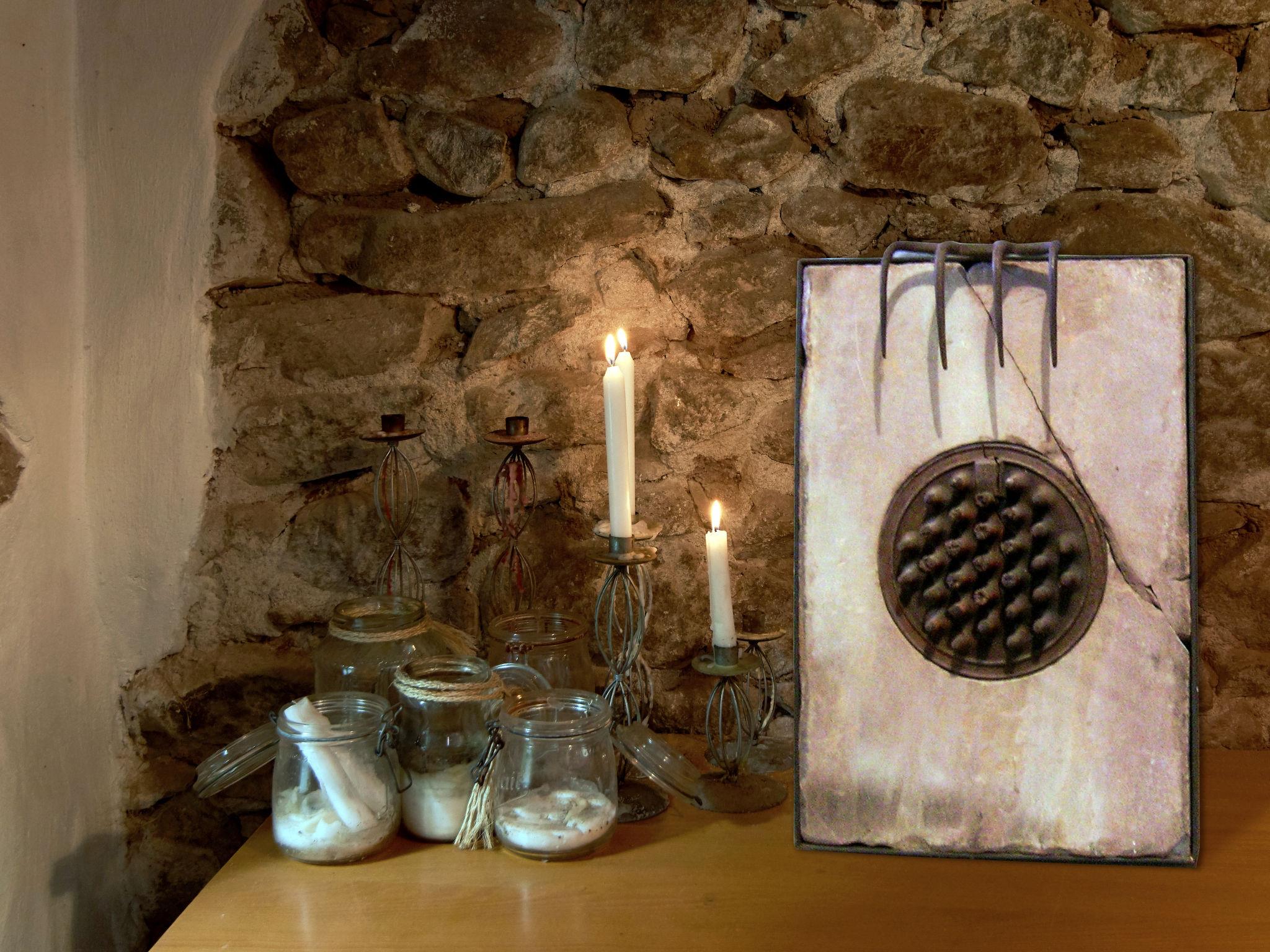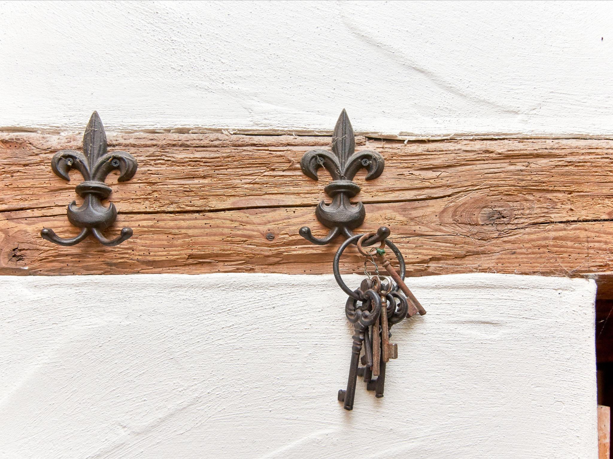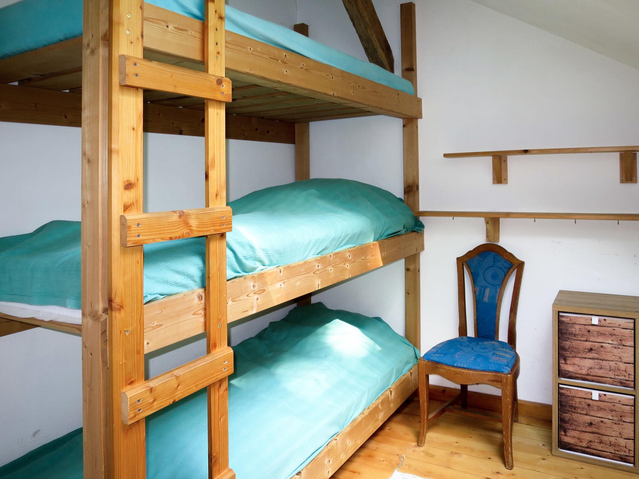 "Escher", 6-room house 150 m2 on 3 levels. Rustic and wooden furniture furnishings: living room, Low door height 170 cm with open-hearth fireplace, Scandinavian wood stove and satellite TV. Kitchen (oven, dishwasher, 4 ceramic glass hob hotplates, toaster, kettle, electric coffee machine). Shower/WC. Upper floor: open dining room with dining table. Exit to the balcony. 1 double bedroom with sloping ceilings. 1 room with sloping ceilings with 1 bed and 1 x 2 bunk beds, 1 double bed. 1 room with sloping ceilings with 1 bed and 3 x 2 bunk beds, 1 double bed. 1 room with sloping ceilings with 2 beds and 1 x 2 bunk beds. Shower/WC. 2nd upper floor: 1 double bedroom. Electric heating, wood heating. Wooden floors. Large balcony. Balcony furniture, deck chairs (6). Facilities: children's high chair, baby cot. Internet (WiFi, free). Please note: non-smoking house. Maximum 3 pets/ dogs allowed.