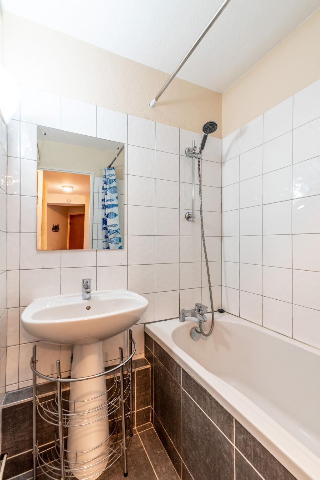 2-room apartment 27 m2 on 3rd floor. Renovated, beautiful furnishings: living/dining room with 1 pull-out bed (2 pers. 2 x 80 cm, length 190 cm), TV (flat screen). 1 small room with 1 french bed (140 cm, length 190 cm). Entrance hall with 1 x 2 bunk beds (80 cm, length 190 cm). Open kitchen (dishwasher, 2 ceramic glass hob hotplates, toaster, kettle, microwave, electric coffee machine). Bathroom, sep. WC. Heating, electric heating, boiler (200 litres). Small balcony, east facing position. Facilities: Internet (WiFi, free). Please note: non-smokers only. Smoke alarm. The property is one of a type of property or apartment. Offer by a private individual according to Art. 155, IV of CGI.