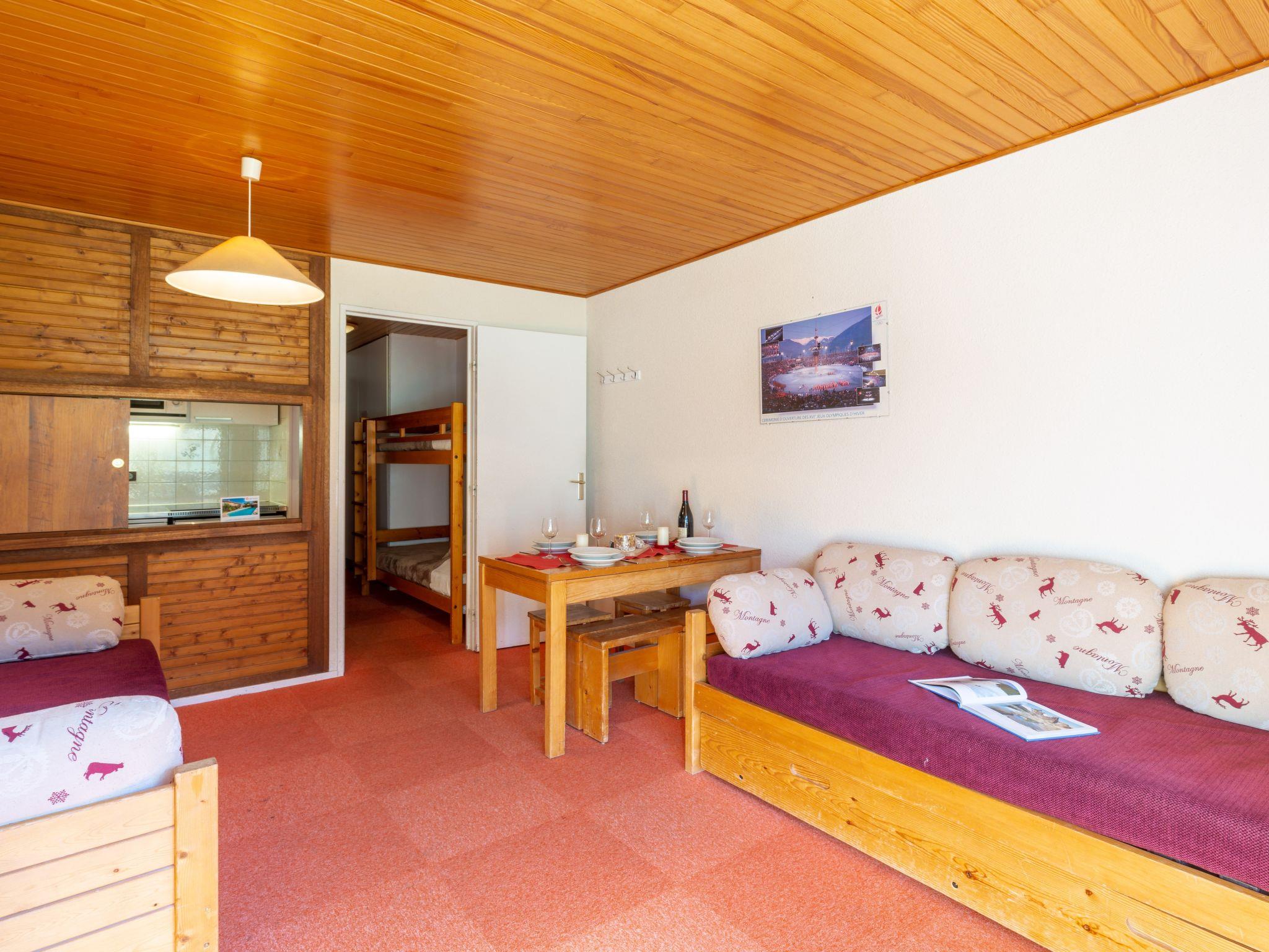 1-room apartment 27 m2 on 6th floor. Simple furnishings: living/dining room with 1 pull-out bed (2 x 80 cm), flat screen. Entrance hall with 1 x 2 bunk beds (80 cm). Kitchenette (4 hot plates, mini-oven, dishwasher, toaster, kettle, electric coffee machine). Bath/WC. Balcony, south facing position. Very beautiful panoramic view of the mountains and the ski run. Facilities: Internet (WiFi, extra). Please note: smoke alarm. Offer by a private individual according to Art. 155, IV of CGI.