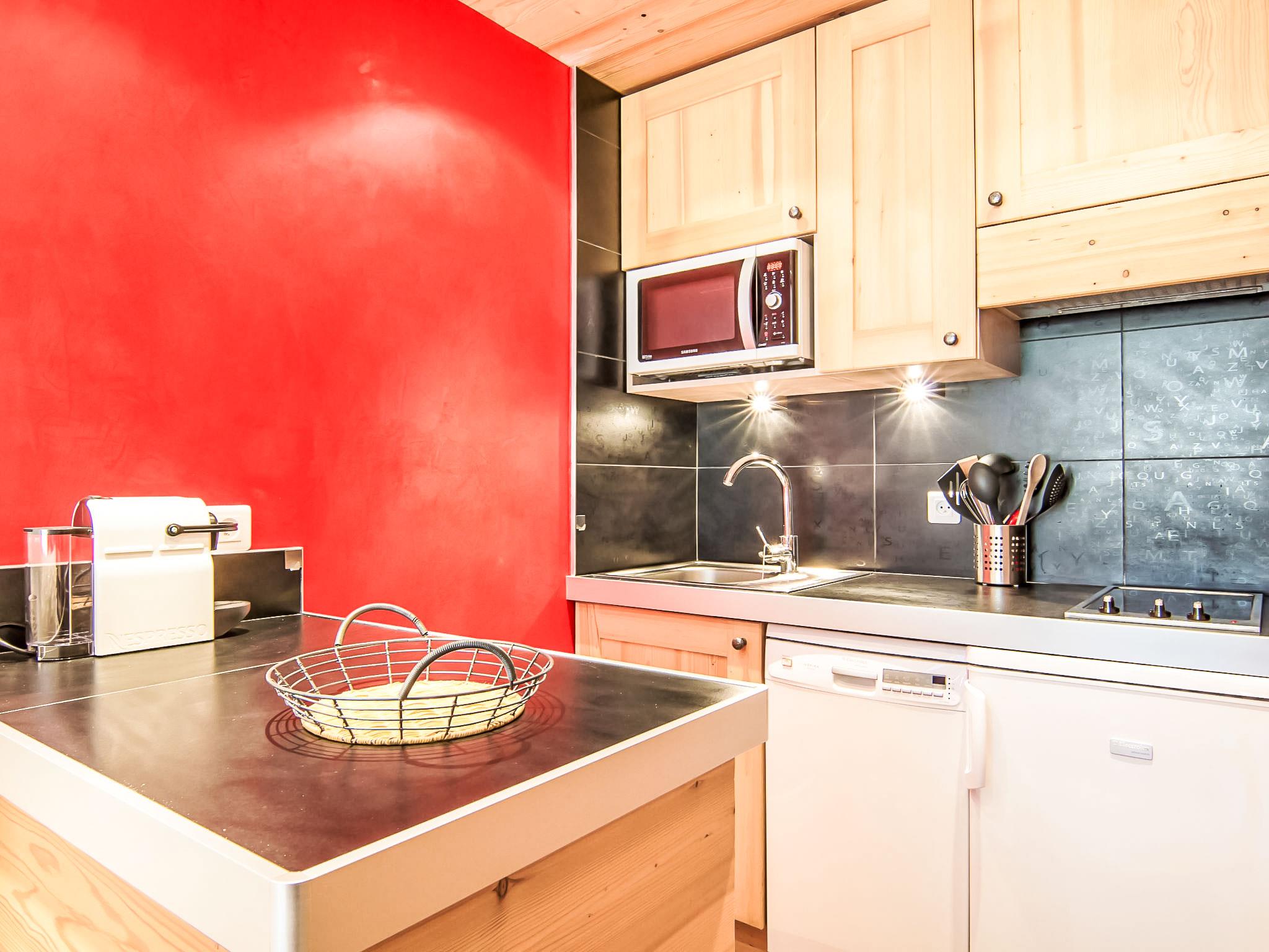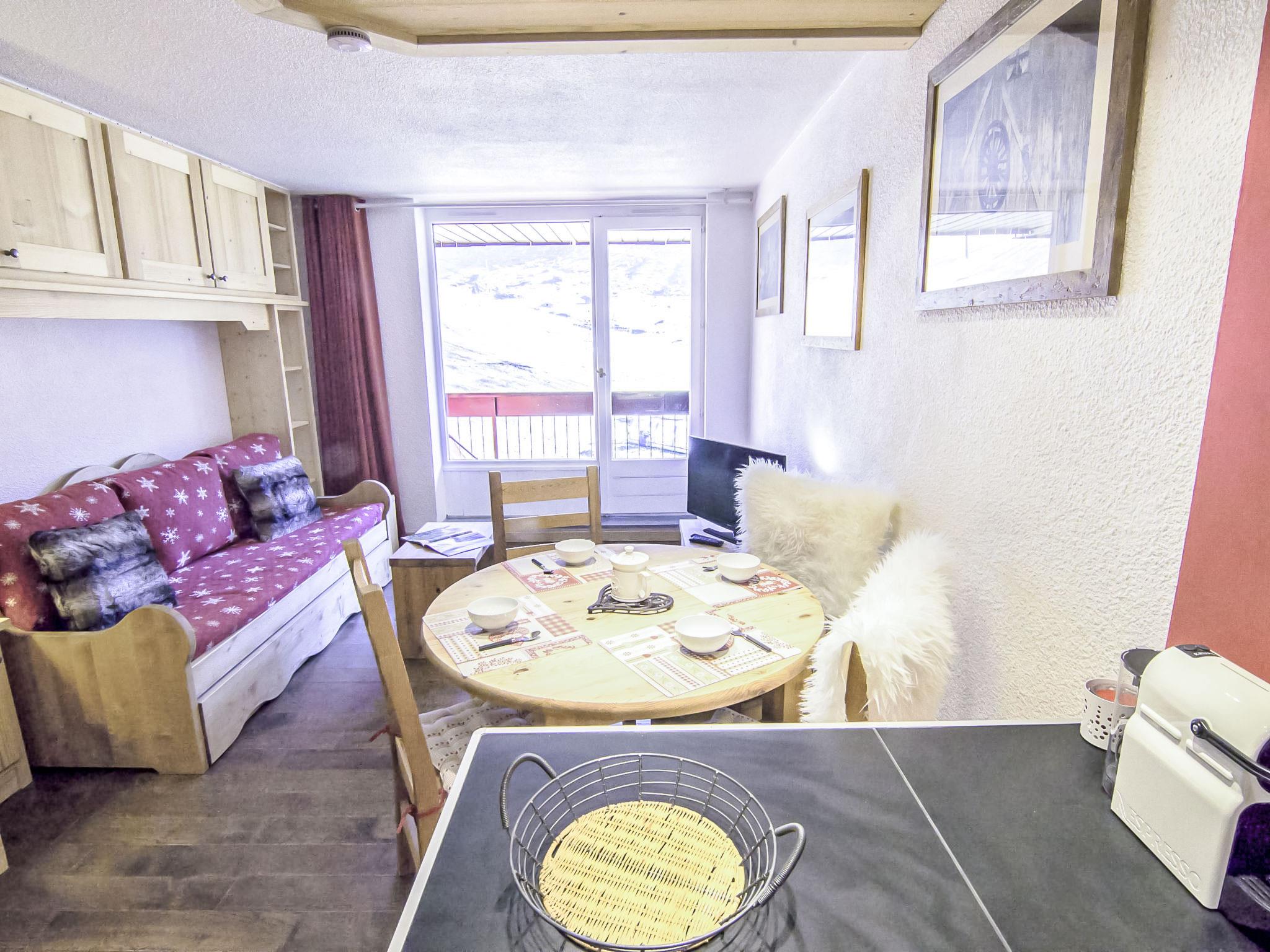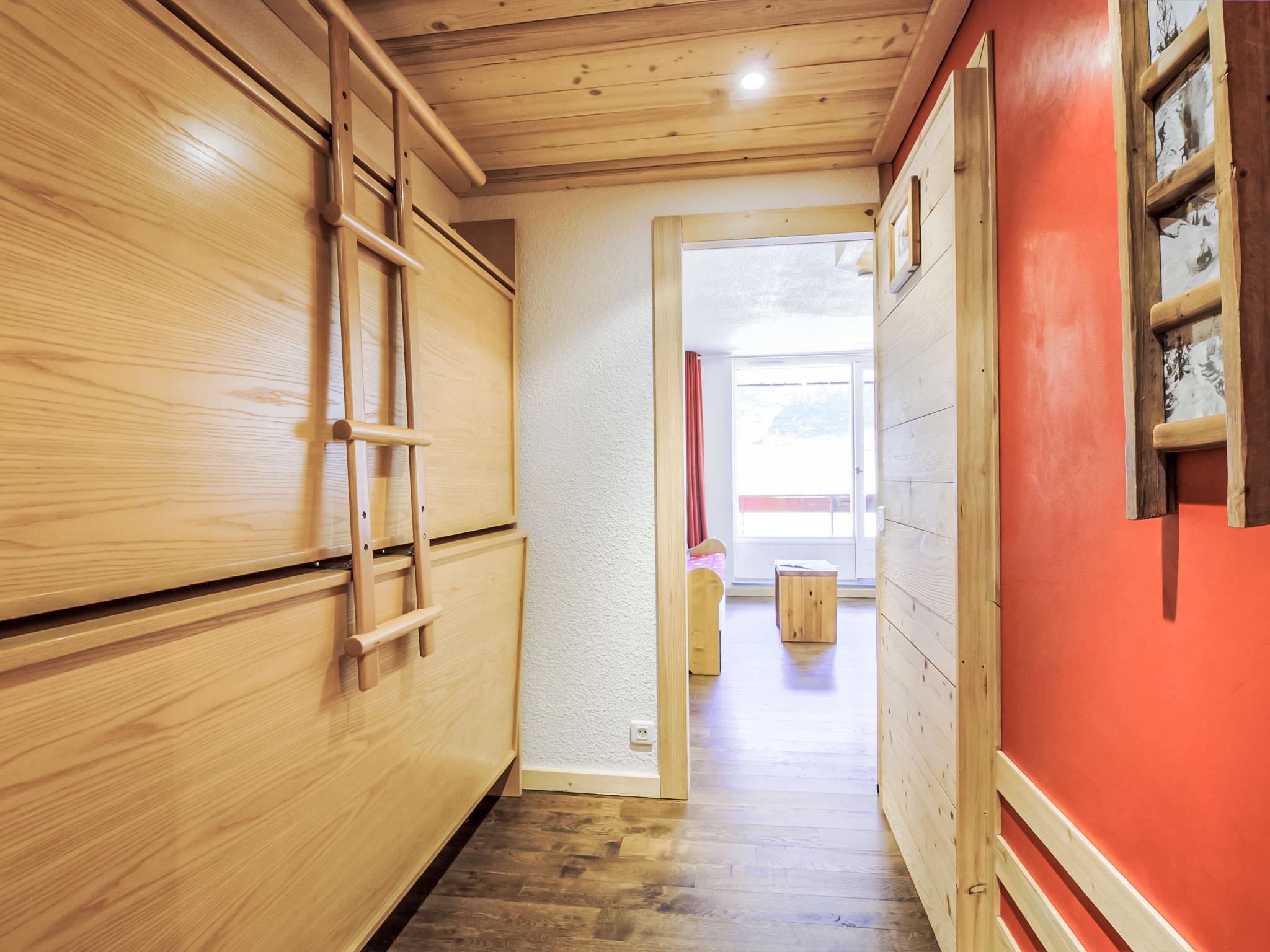 1-room studio 25 m2 on 7th floor. Fully renovated, beautiful and tasteful furnishings: living/dining room with 1 pull-out bed (2 pers. 2 x 80 cm, length 190 cm), satellite TV. Entrance hall with 2 wall-trunk beds (80 cm, length 190 cm). Kitchenette (dishwasher, 2 ceramic glass hob hotplates, microwave, grill, electric coffee machine, Capsules for coffee machine (Nesspresso) extra). Shower/WC. Balcony, south facing position. Very beautiful panoramic view of the mountains and the ski run. Facilities: Internet (WiFi, free). Parking space n 545 (roofed) at the house, height 180 cm. Please note: non-smokers only. Smoke alarm. Studio on the last floor, facing south without vis à vis. Ski departure and return by the feet, in the heart of the lifts, children ski school on the bottom of the residence.