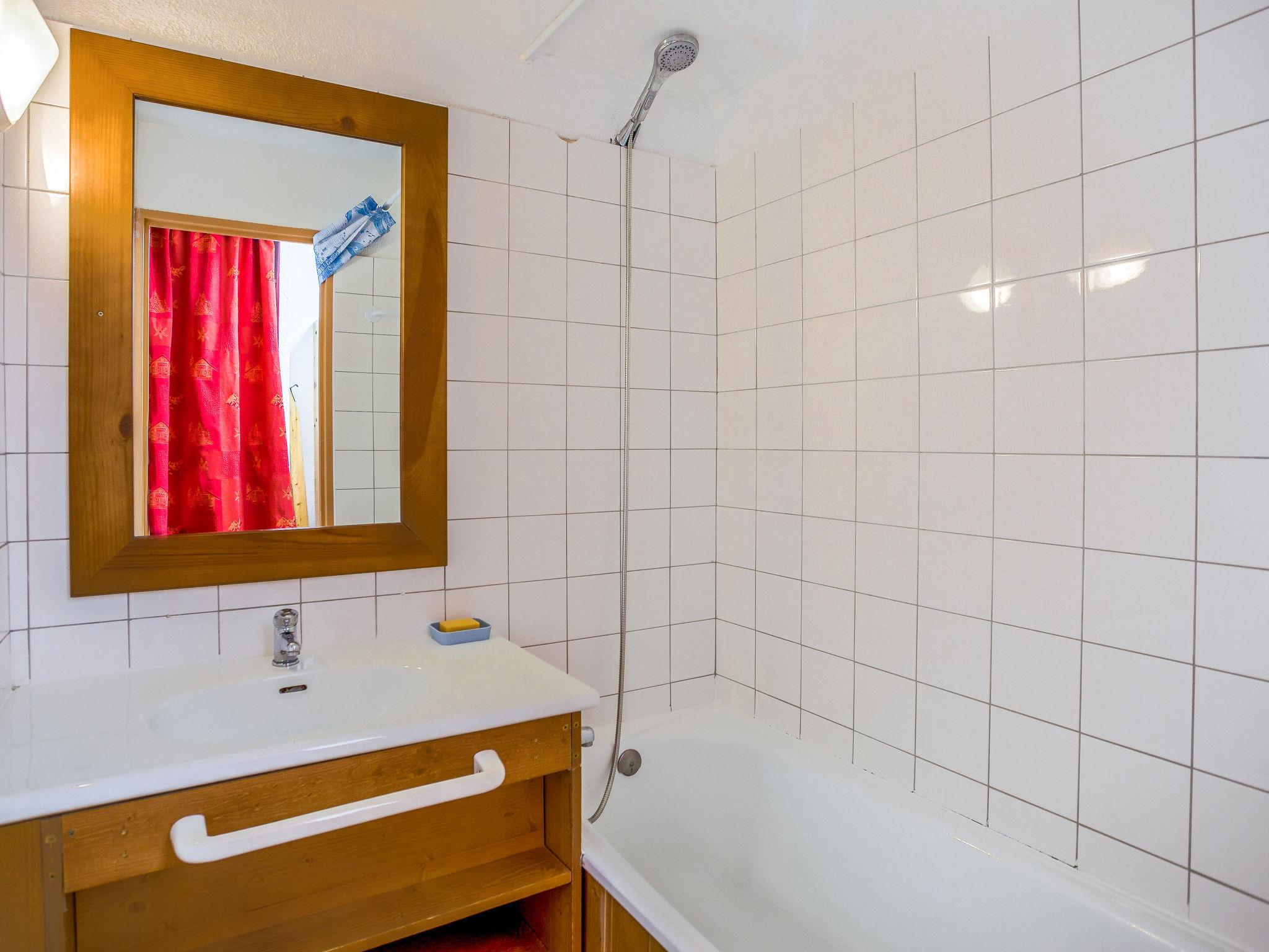1-room studio 20 m2 on 3rd floor. Renovated: living/dining room with 1 double sofabed (140 cm, length 190 cm), TV (flat screen). Entrance hall, 2 bunk beds (70 cm, length 190 cm). Kitchenette (dishwasher, 2 ceramic glass hob hotplates, microwave). Shower/WC. Electric fireplace. Balcony 6 m2, east facing position. View of the mountains, the ski run and the countryside. Please note: non-smokers only. Smoke alarm. 296B01848P