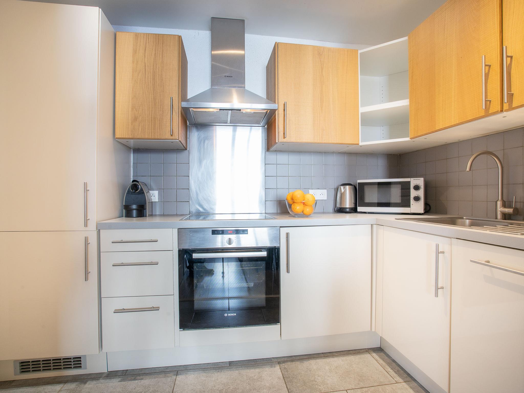 5-room apartment 60 m2 on 5th floor. Fully renovated, comfortable and tasteful furnishings: living/dining room with TV (flat screen). Exit to the balcony, west facing position. 1 room with 1 french bed (140 cm, length 190 cm). 1 room with 1 french bed (140 cm, length 190 cm). Exit to the balcony. 1 room with 1 x 2 bunk beds (80 cm, length 190 cm). 1 room with 1 x 2 bunk beds (90 cm, length 200 cm). Large, open kitchen (oven, dishwasher, 4 ceramic glass hob hotplates, toaster, kettle, microwave, freezer, electric coffee machine, Capsules for coffee machine (Nespresso) extra, raclette grill) with dining table. Bathroom, shower, 2 sep. WC's. Electric heating. Very beautiful panoramic view of the mountains and the ski run. Facilities: washing machine. Internet (WiFi, free). Please note: smoke alarm.