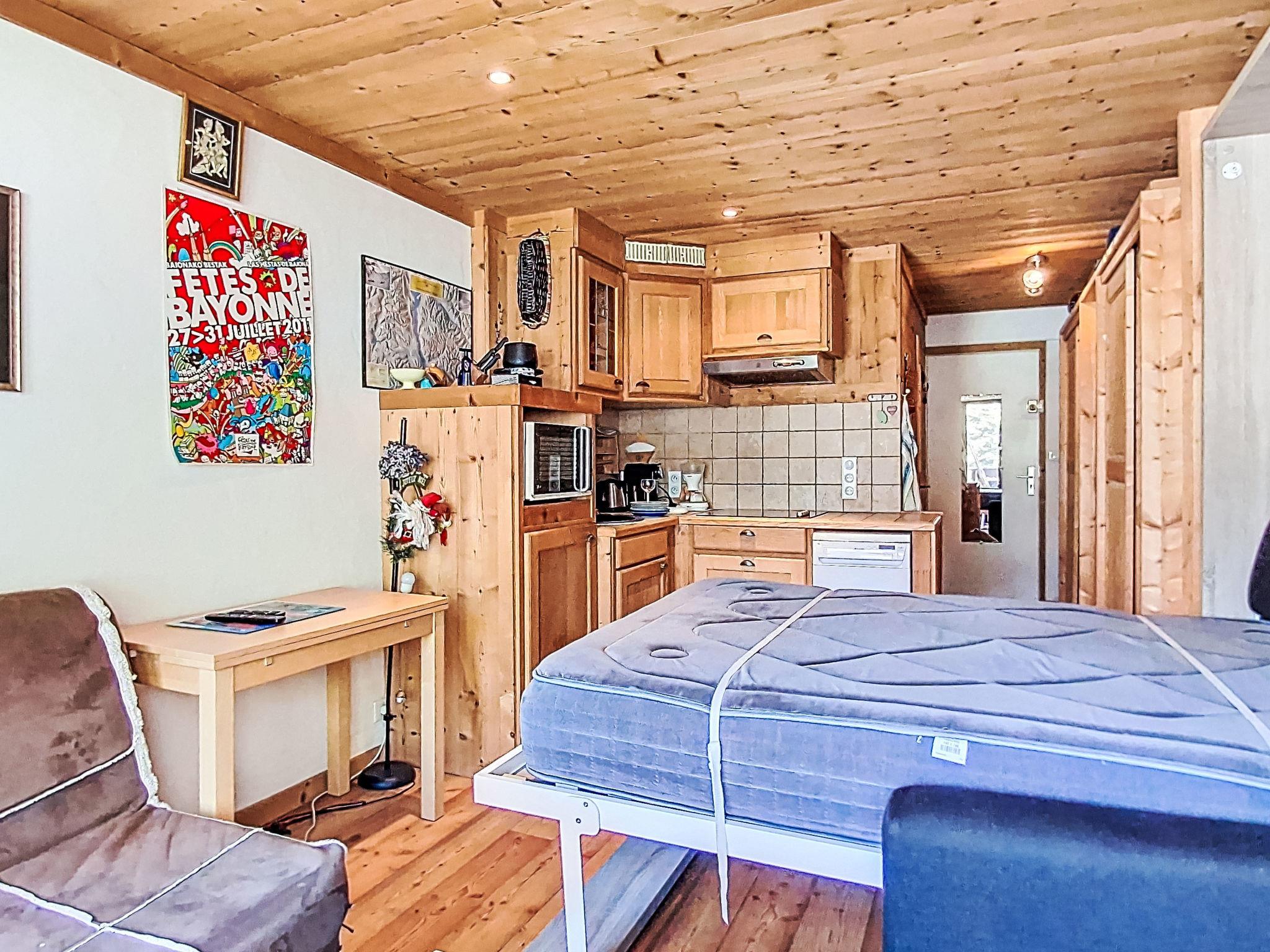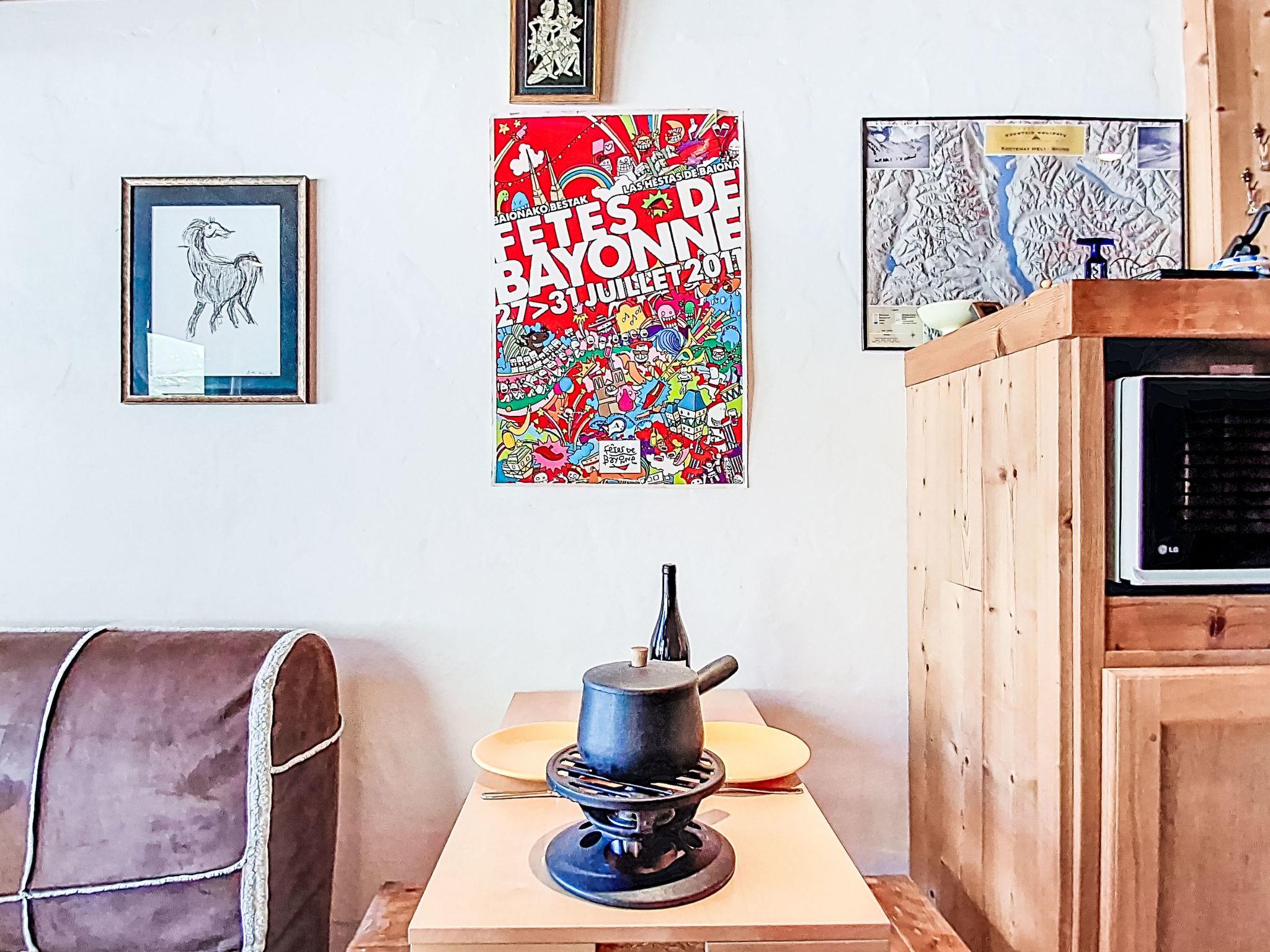 1-room studio 25 m2 on 2nd floor, south-east facing position. Wooden furniture furnishings: living/dining room with 1 sofabed (140 cm, length 190 cm), TV (flat screen). Exit to the balcony, south-east facing position. Open kitchen (dishwasher, 4 ceramic glass hob hotplates, toaster, kettle, microwave, electric coffee machine, Capsules for coffee machine (Nespresso) extra, fondue Set (cheese)). Bath/WC. Balcony furniture. View of the countryside. Please note: non-smokers only. Smoke alarm. Offer by a private individual according to Art. 155, IV of CGI.