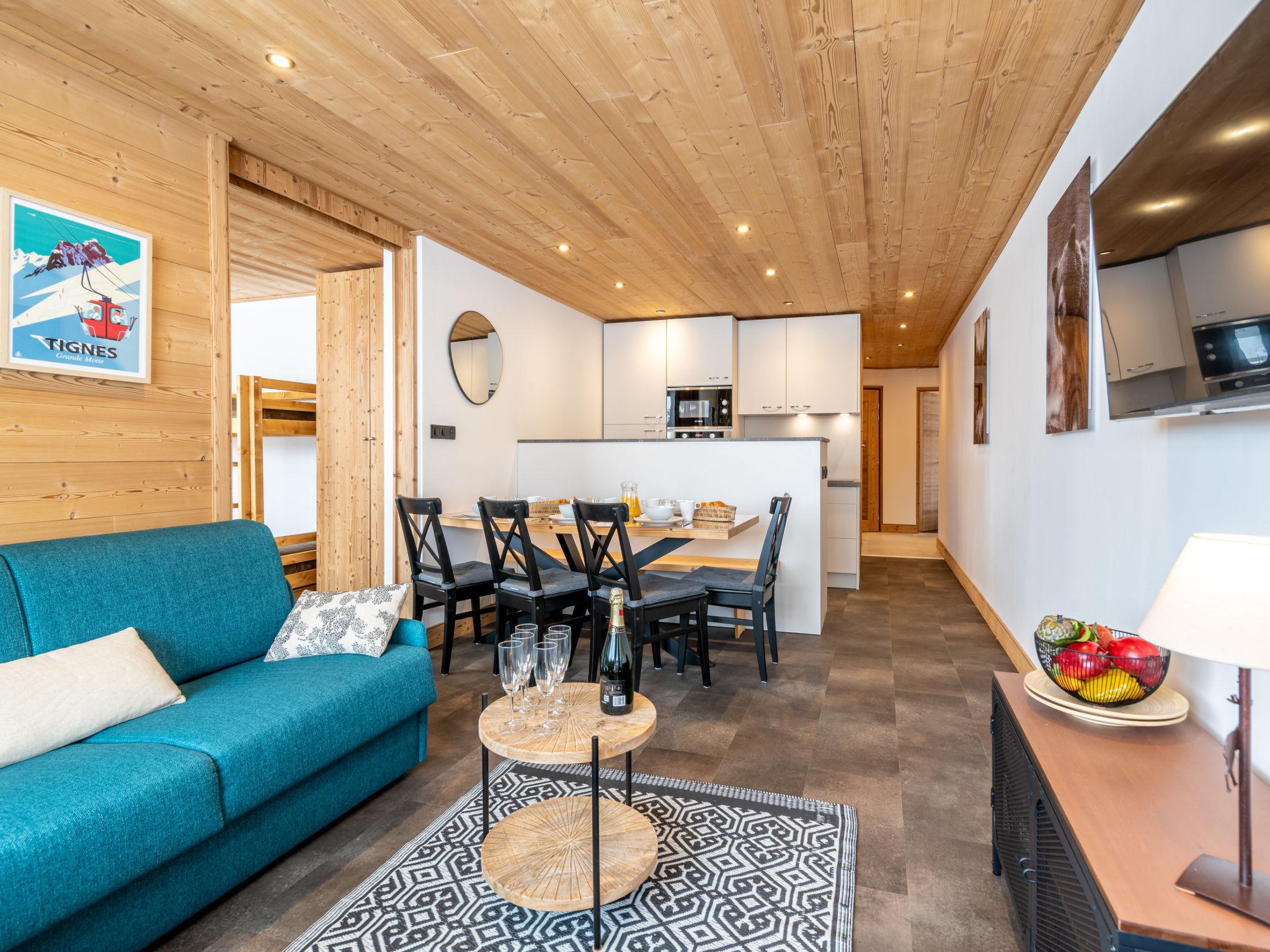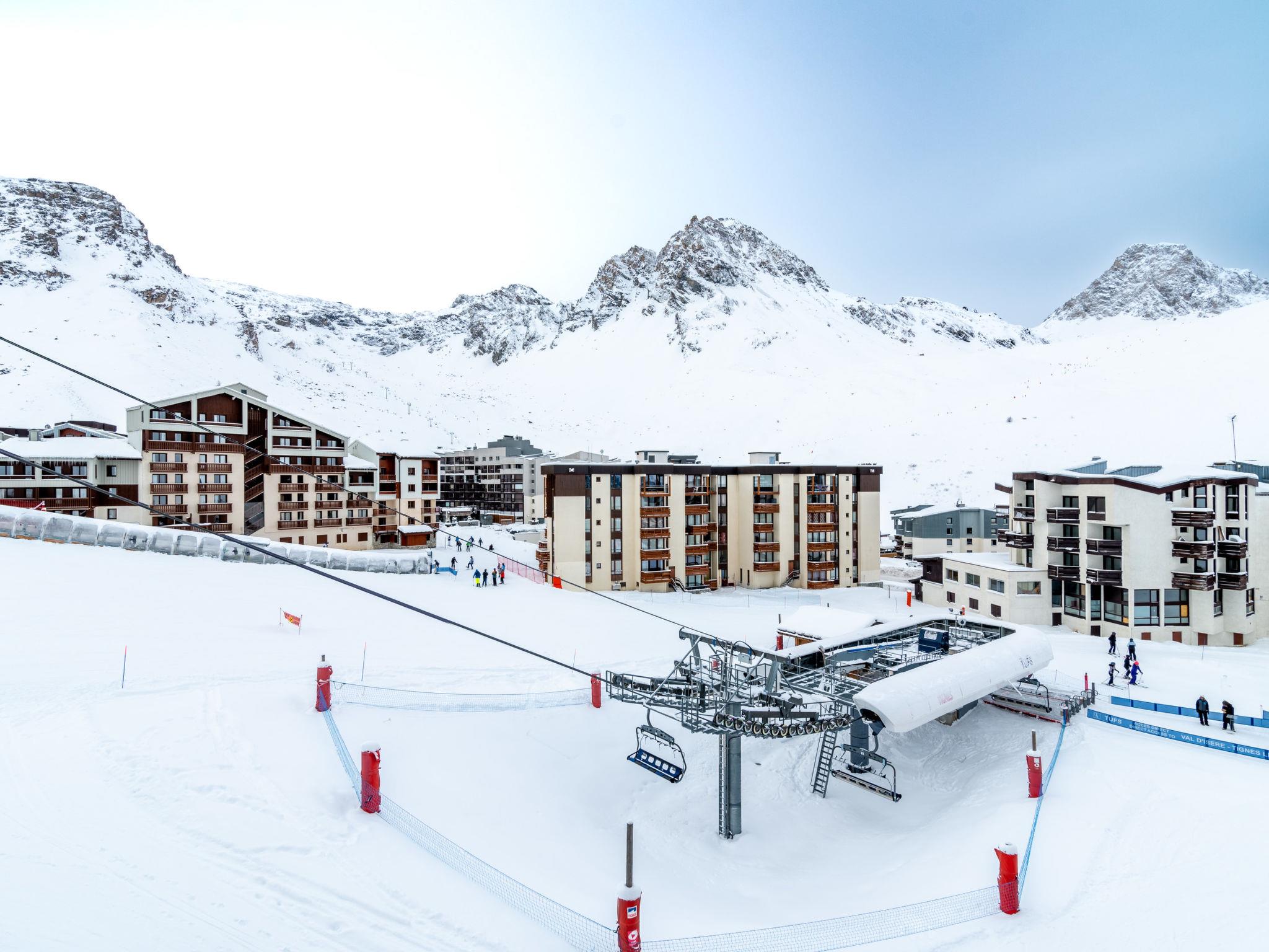 Tignes Val Claret: Residence "Les Hauts du Val Claret(Val Claret)", 4 storeys. 20 m from the skiing area. In the complex: lift, storage room for skis, central heating system. Grocery, supermarket, shopping centre 100 m, restaurant 10 m, bakery 50 m, bus stop 600 m, indoor swimming pool 800 m. Sports centre 800 m, chair lift 10 m, skisport facilities 10 m, slopes 20 m, ski rental 20 m, ski school, ice rink 800 m. Well-known ski regions can easily be reached: Espace Killy. Well-known lakes can easily be reached: le Lac du Chevril 800 m. Please note: ski bus (free of charge). Additional accommodations can be booked.