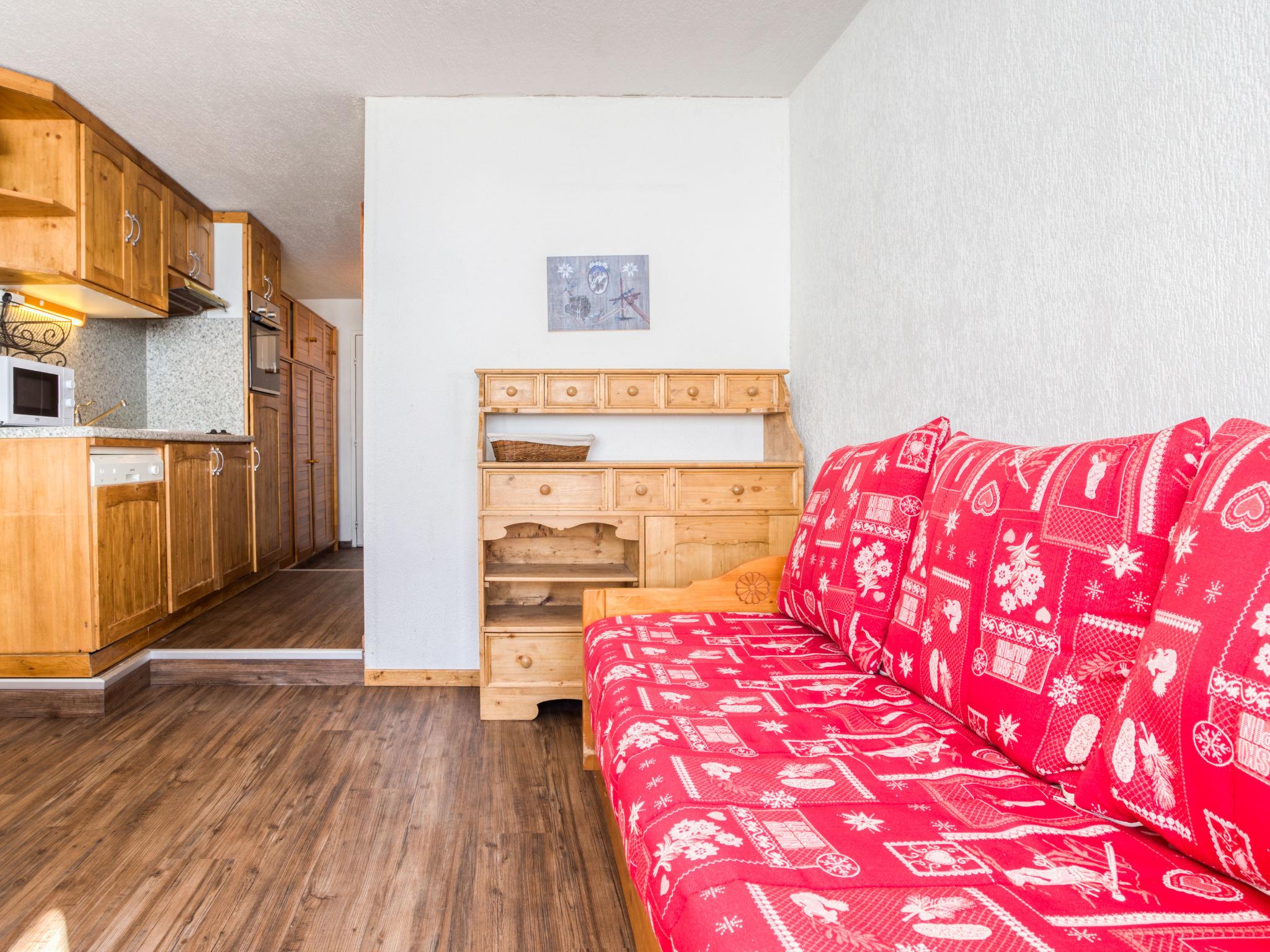 "Grandes Platières II", 2-room apartment 27 m2 on 6th floor. Bright, renovated, practical and beautiful furnishings: living/dining room with 2 beds (80 cm), flat screen. Exit to the balcony. Sleeping alcove with 1 french bed (1 x 120 cm, length 190 cm), 1 wall-trunk bed (80 cm, length 190 cm). Kitchenette (oven, dishwasher, 2 ceramic glass hob hotplates, microwave). Shower, sep. WC. Balcony, south facing position. Marvellous panoramic view of the mountains and the ski run. Facilities: Internet (WiFi, extra). Please note: non-smokers only. Smoke alarm. Instead of an enclosed bedroom, some sleeping areas are located in an open-plan area (gallery, alcove, etc.).