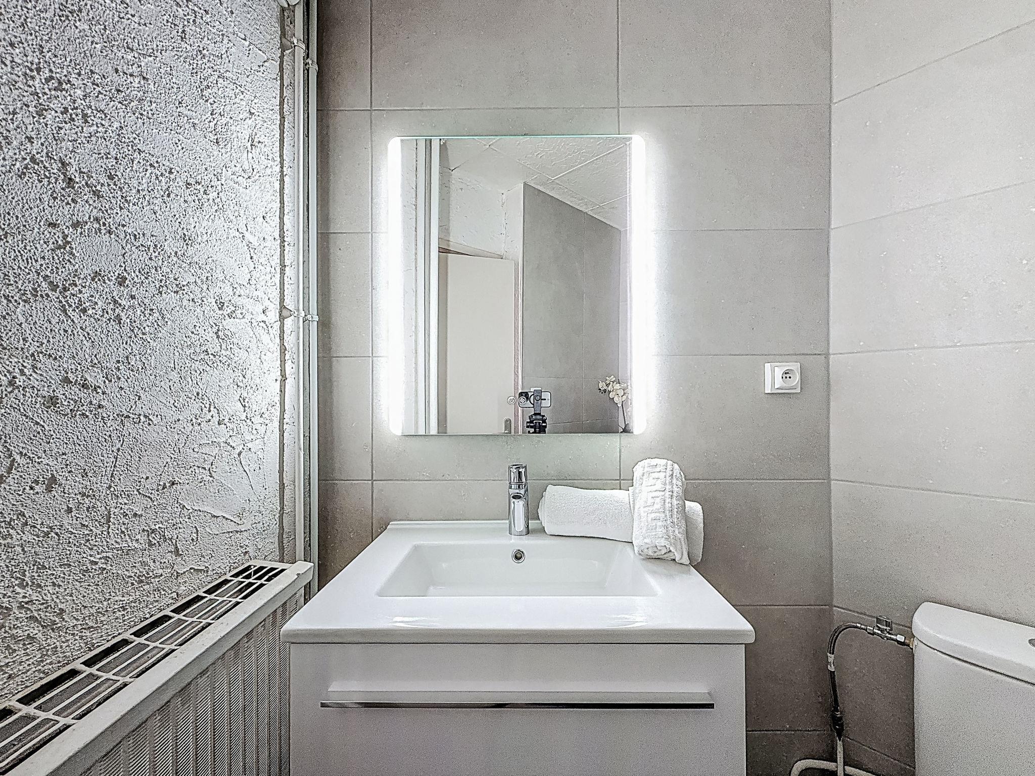 1-room apartment 22 m2 on 1st floor. Living/dining room with 1 bed (90 cm), 1 double sofabed (160 cm), flat screen, hi-fi system and DVD. Kitchenette (2 hot plates, microwave). Shower/WC. Balcony, south facing position. Beautiful view of the mountains. Facilities: Internet (WiFi, extra). Please note: smoke alarm.