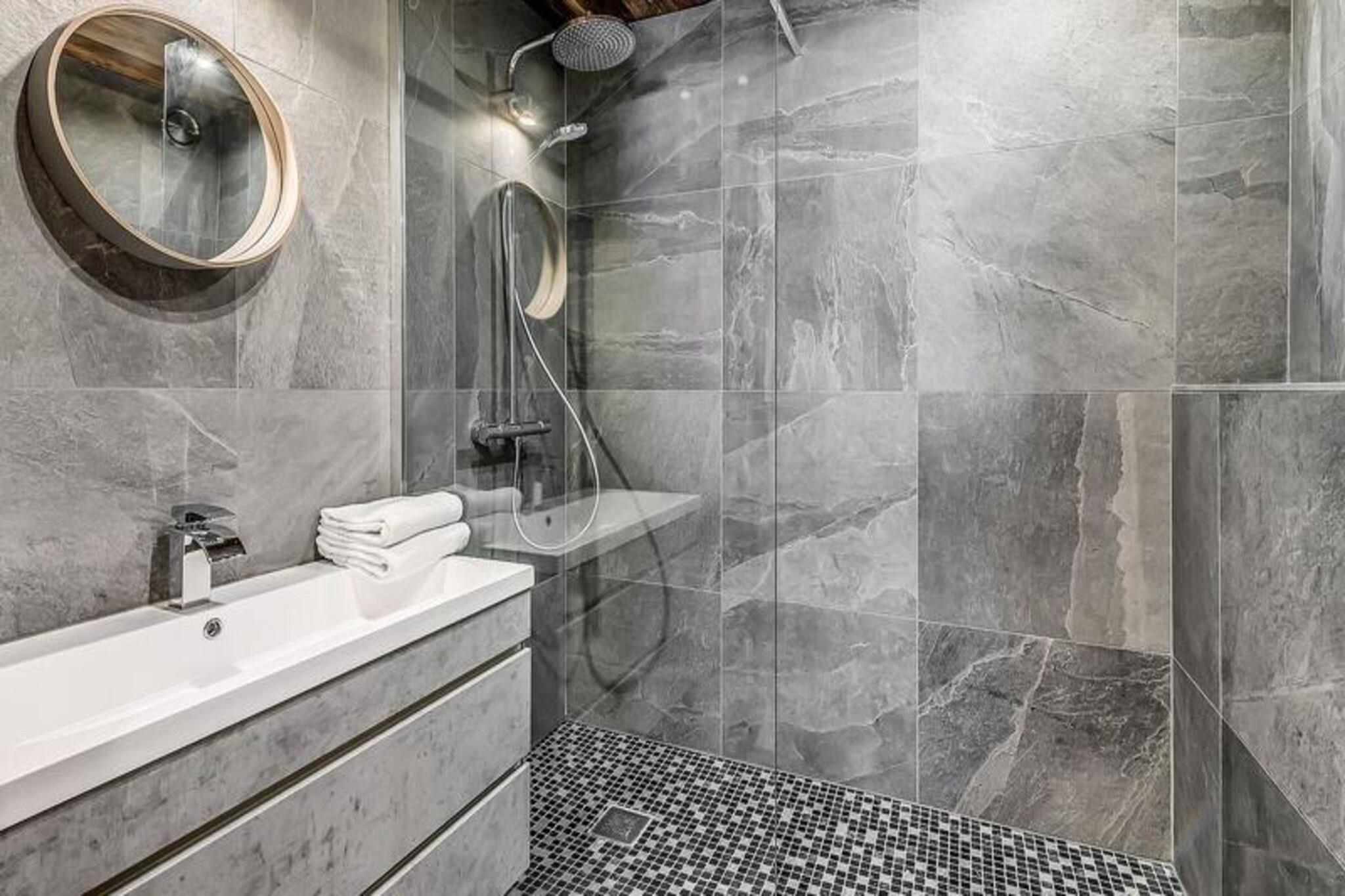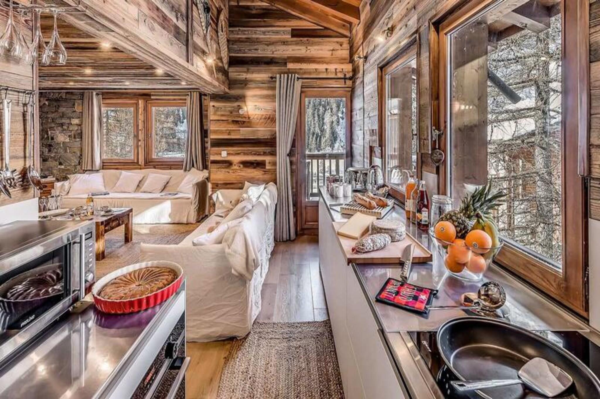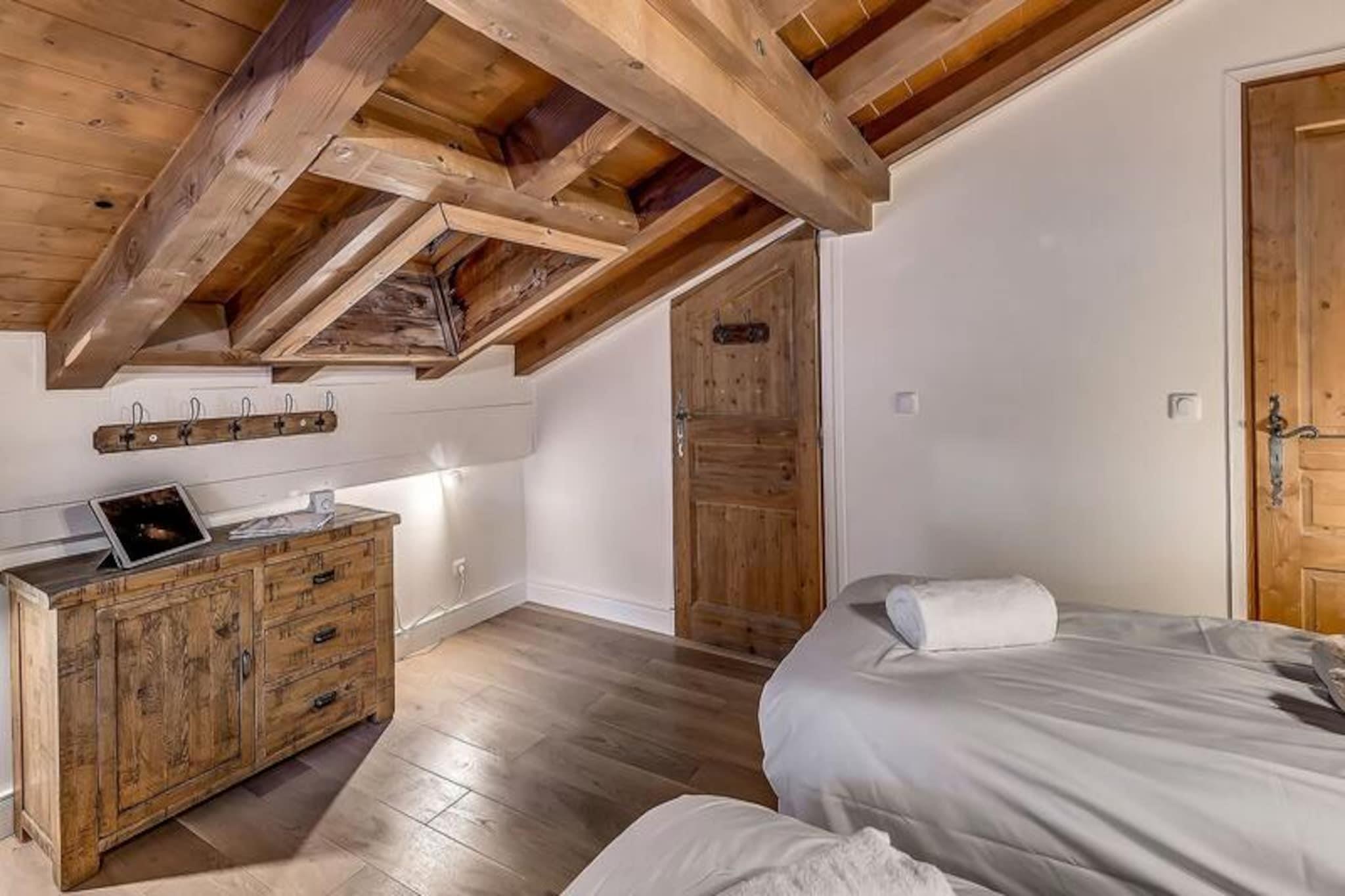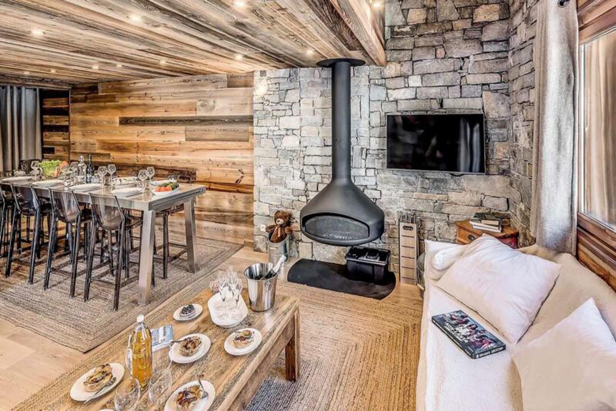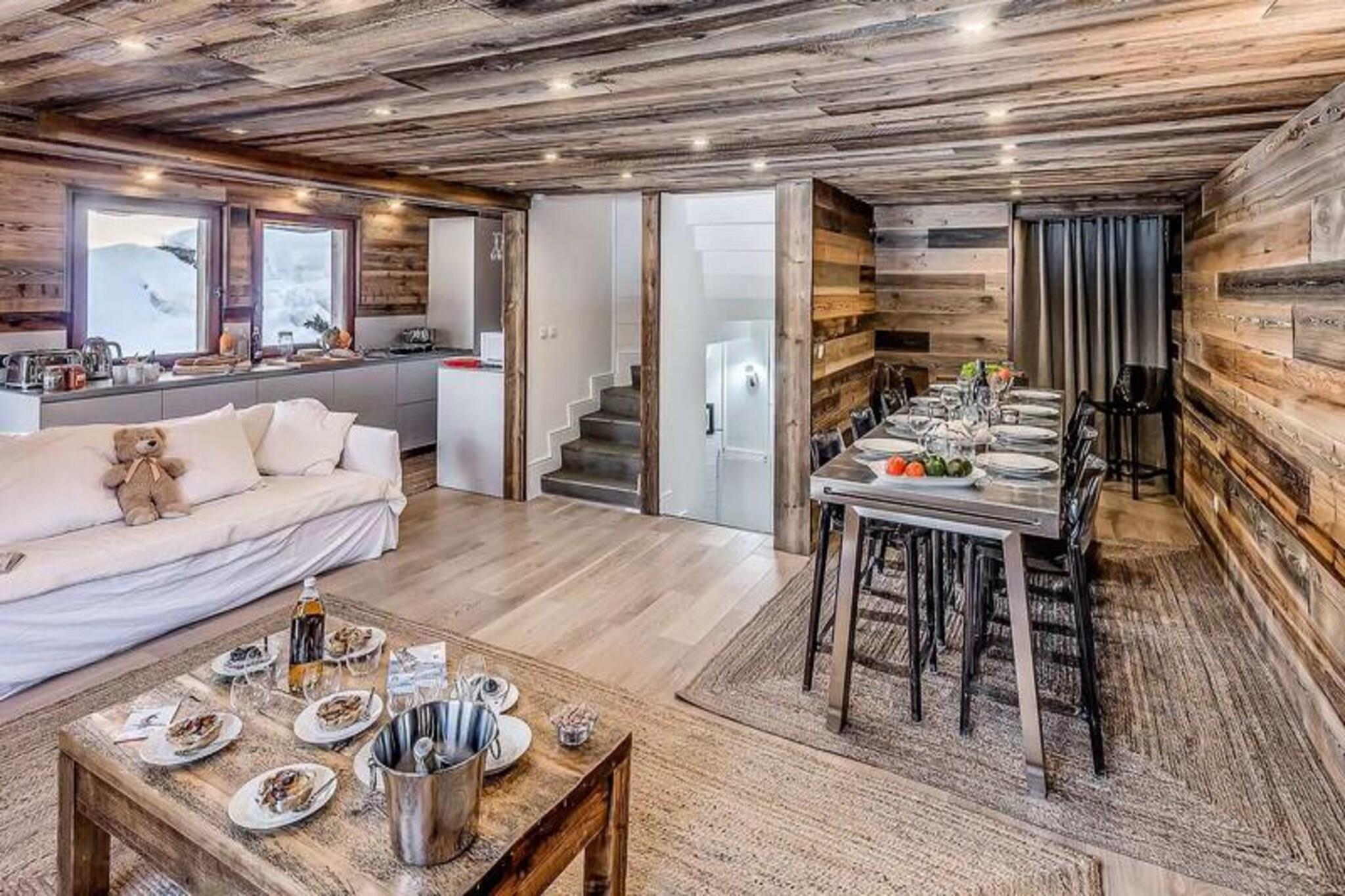 Højt over den maleriske landsby Tignes les Brévières inviterer Chalet Paradis Blanc dig til at opleve den perfekte alpine flugt. Med sine syd- og sydvestvendte terrasser tilbyder chaleten en betagende udsigt over Dome de la Sache og de omkringliggende pister, badet i sollys fra morgen til aften. Dette fredfyldte tilflugtssted ligger i det eksklusive Belvedere-område, hvor ro møder spændingen ved skiområdet Tignes - Val d'Isère, der er kendt for sine pister i verdensklasse og charmerende afterski-stemning. Uanset om du er her for eventyr eller afslapning, er dette chalet din port til uforglemmelige bjergøjeblikke. \n\nDen dobbelthuse Paradis Blanc strækker sig over fem etager og har plads til op til 12 gæster i seks smukt indrettede soveværelser, hver med eget badeværelse. Chaleten er omhyggeligt designet som et skofrit opholdsrum, der sikrer et rent og hyggeligt miljø. I snedækket etage finder du et skirum og vaskeri, mens de øverste etager har rummelige soveværelser med luksuriøst sengetøj og moderne bekvemmeligheder som håndklædetørrer og hårtørrer. Hjertet i hytten er dens åbne opholdsstue med et eksklusivt Bulthaup-køkken, et spisebord til 12 personer og en designerpejs, der skaber en varm og indbydende atmosfære. \n\nBare få skridt fra hytten tilbyder landsbyen Les Brévières en begynderpiste med en gratis skilift, en skiskole og dejlige restauranter, der serverer autentisk alpin mad. Boisses-gondolen forbinder dig ubesværet med det vidtstrakte skiområde Tignes - Val d'Isère, hvilket gør det nemt at udforske områdets legendariske pister. Om sommeren forvandles regionen til et paradis for vandreture, cykling og at nyde de franske alpers naturlige skønhed. \n\nChalet Paradis Blanc er mere end et sted at bo - det er et fristed, hvor moderne luksus møder alpin charme. Uanset om du samles med familie eller venner, lover denne hytte et mindeværdigt ophold fyldt med komfort, eventyr og ærefrygtindgydende udsigt.