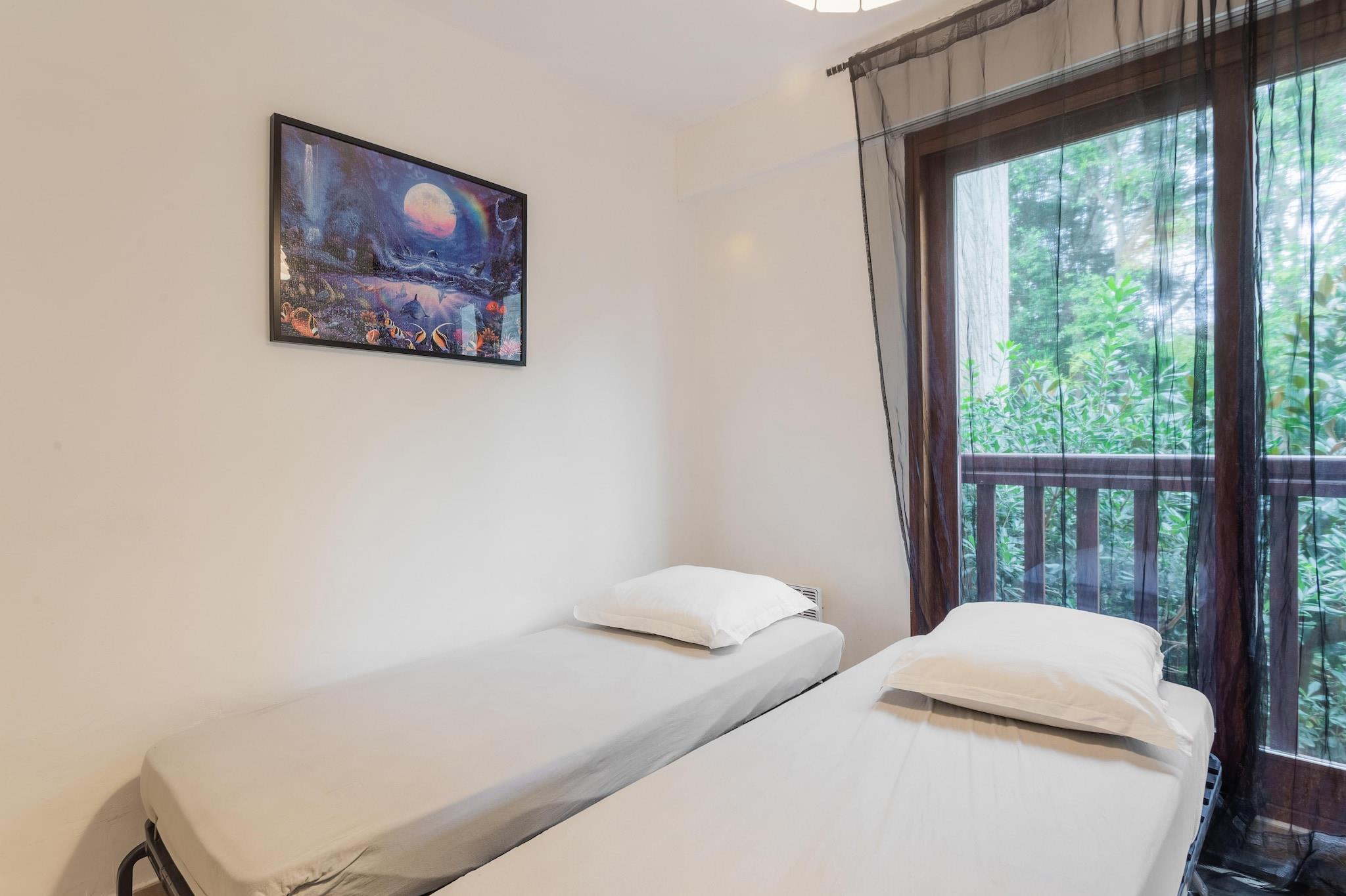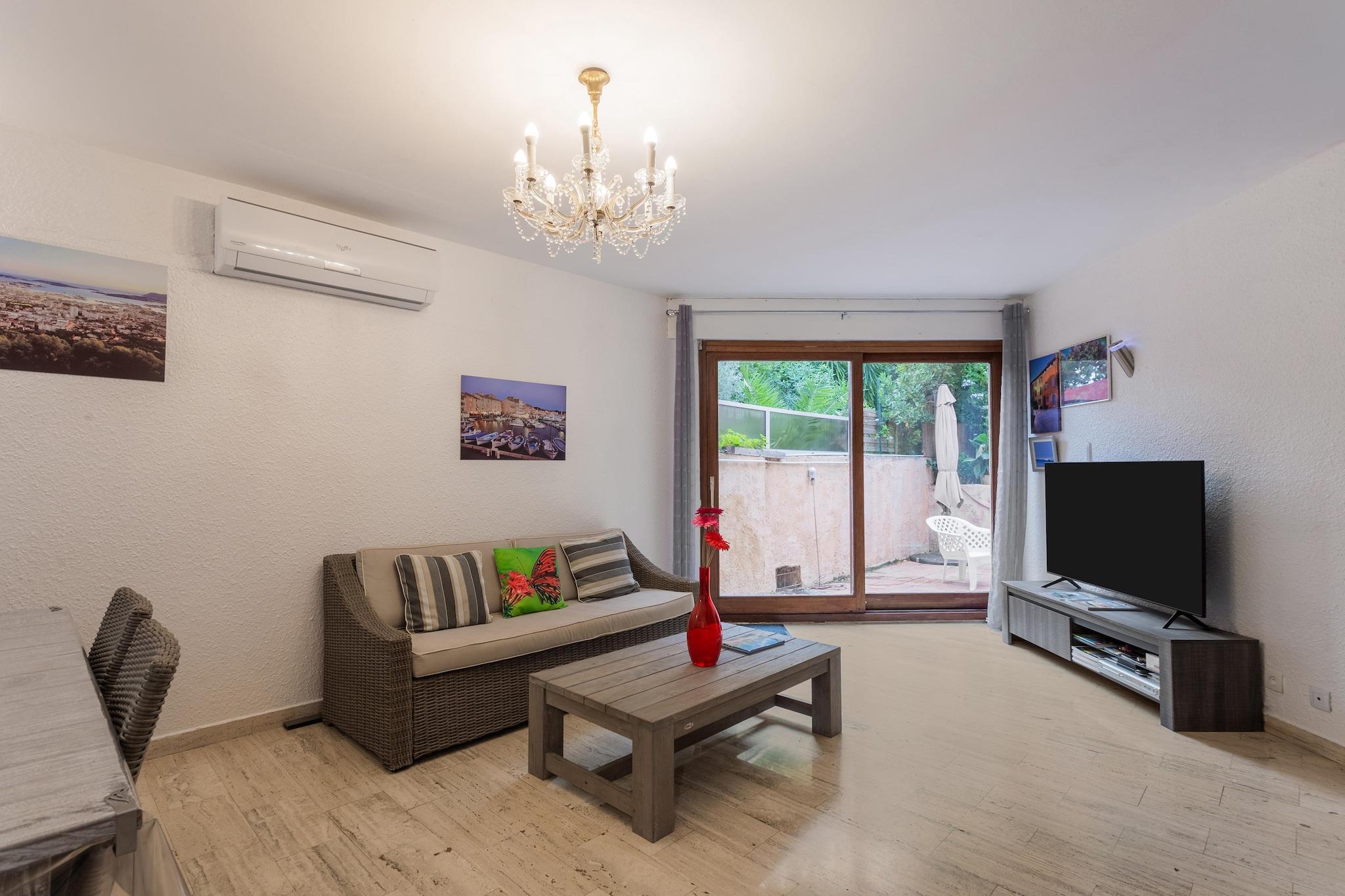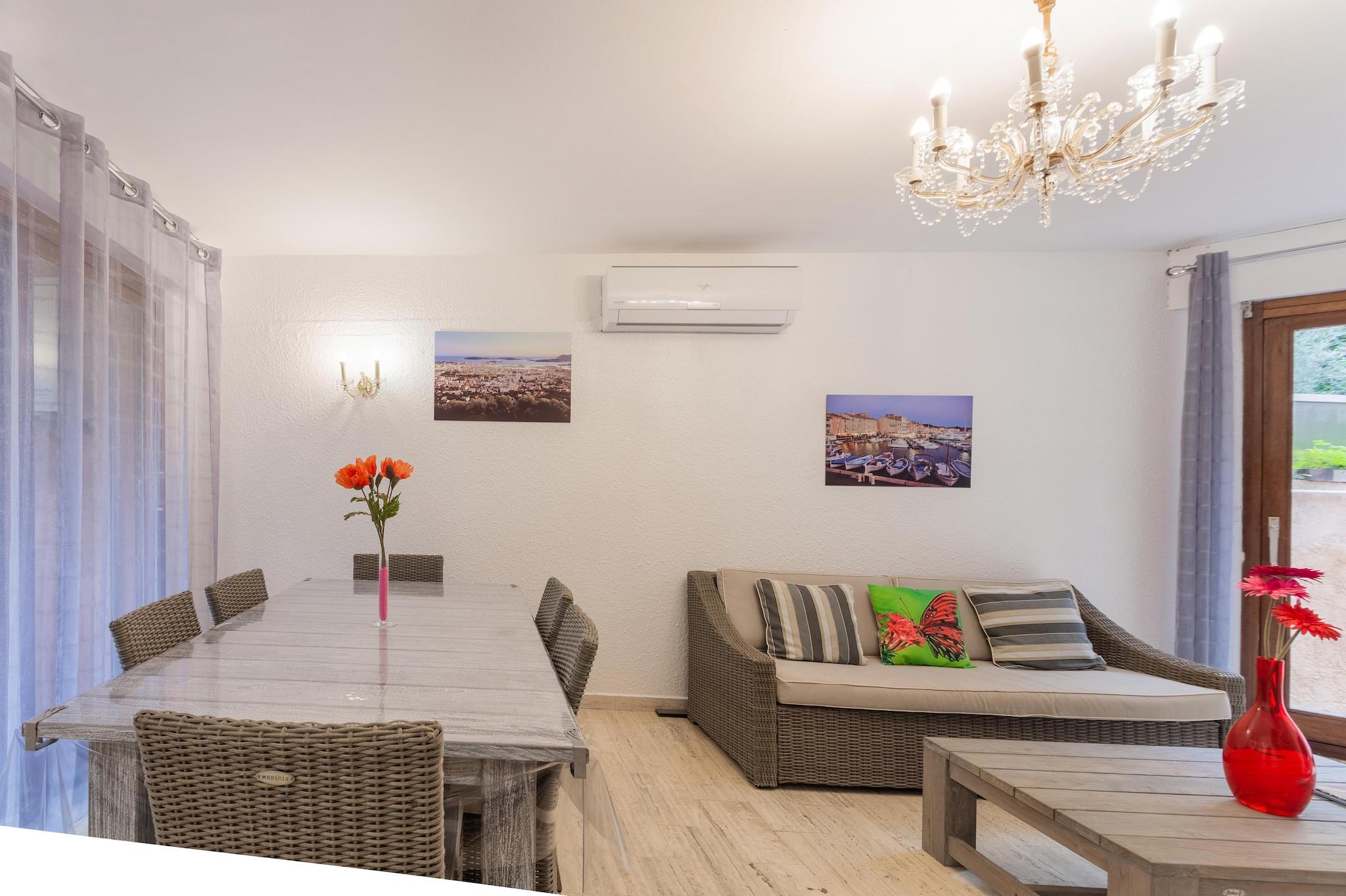Dette veludstyrede feriehus i Var er ideelt til en familie. Ejendommen har en fælles swimmingpool, en fælles tennisbane og ligger i gåafstand fra stranden. Du kan nyde lange gåture på stranden eller vandsport, kun 1 km væk. Gå ud til restauranterne eller besøg supermarkedet 0,5 km væk. Et spil golf kan nydes 15 km derfra. Chapelle Notre Dame du Cap Falcon er placeret for enden af Cap Brun, midt i en statue af Jomfruen, fantastisk udsigtspunkt, der omfavner havnen i TOULON, og bugter til dykning! La Calanque og L"ESCALE er de populære restauranter! Feriehuset har en rummelig opholdsstue med tv, dvd-afspiller og aircondition. Du kan tilbringe en aktiv dag med at spille tennis på tennisbanen. En privat indhegnet have giver dig mulighed for at slappe af midt i naturen Parkering på gaden er gratis Parkeringspladser i boligen er efter først-til-mølle princippet Deponer skraldespandene + sortering i det dedikerede teknikrum i ejerlejligheden.Nærmeste lufthavn ligger 15 km væk.