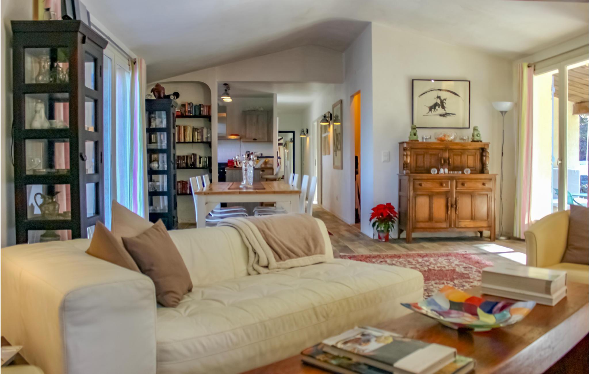 På grund af sin høje beliggenhed giver denne hyggelige villa med tre soveværelser og to badeværelser fuldstændig privatliv samt en storslået udsigt over en dal med de charmerende landsbyer Fayence, Callian og Montauroux op til bjergene i baggrunden. Ejendommen er en 2.500 m² stor have med blomster, træer og en græsplæne, hvor børnene kan lege helt uforstyrret. Ferieboligen har to terrasser, og I kan slappe af ved poolen med en vidunderlig udsigt. Spadsér gennem den smukke landsby Tourrettes. Golfspillere kan svinge køllerne på Terre Blanche-golfbanen.