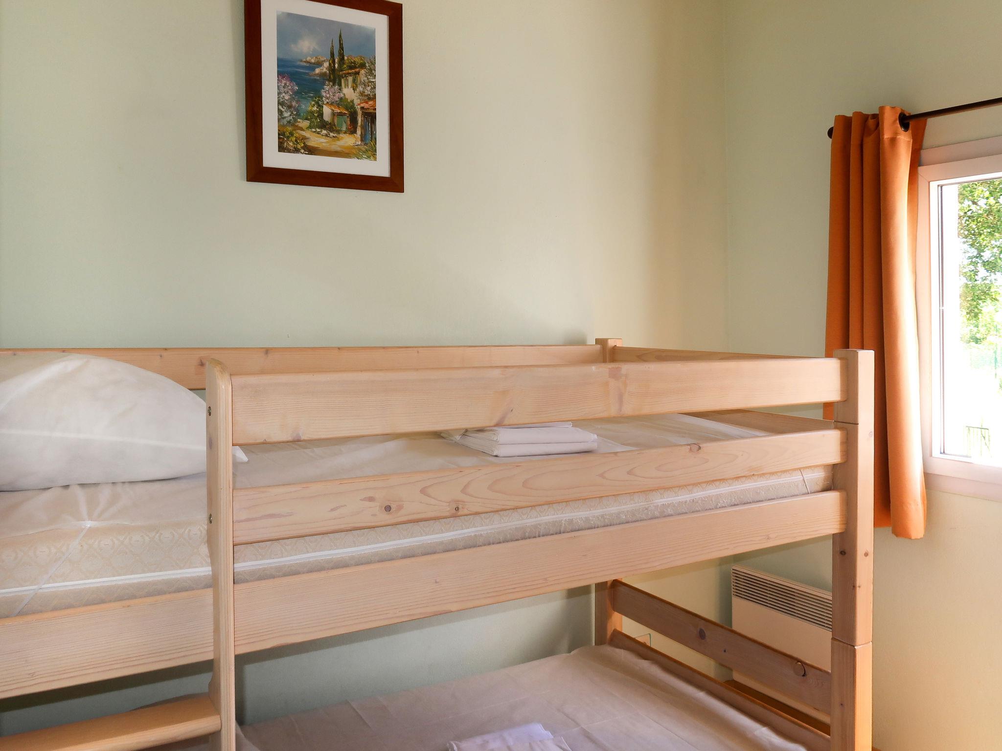 "Les Bastides de Fayence", 4-room terraced house 67 m2 on 2 levels. Bright, beautiful and cosy furnishings: living/sleeping room with 1 double sofabed, dining table and TV. Exit to the terrace. Open kitchen (4 hot plates, oven, dishwasher, microwave, electric coffee machine). Shower/WC. Upper floor: 1 room with sloping ceilings with 1 french bed and shower. 1 room with sloping ceilings with 1 french bed. 1 room with 1 x 2 bunk beds. Bath/WC. Electric heating. Terrace. Terrace furniture. Facilities: Internet (WiFi). Please note: non-smokers only. Maximum 1 pet/ dog allowed. Smoke alarm.