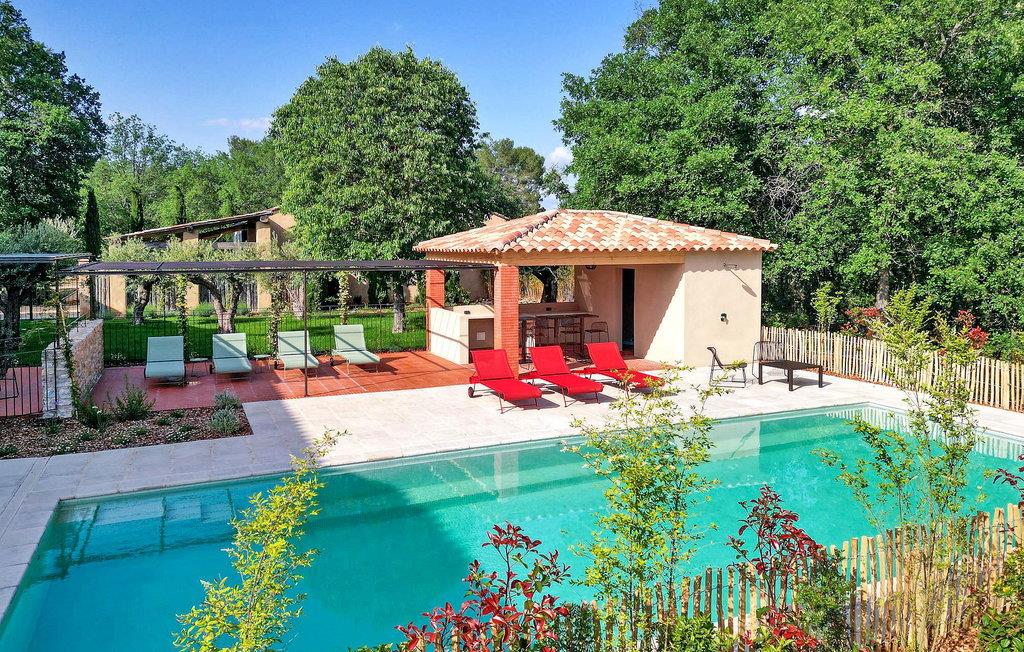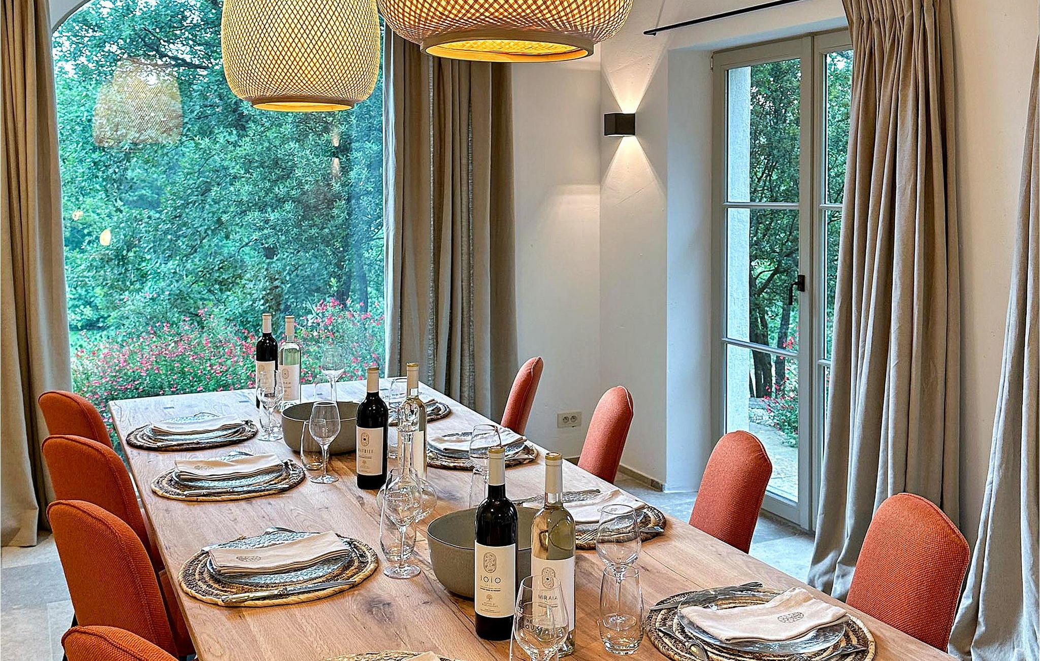 Forkæl dig selv i hjertet af Var med denne luksuriøse villa nær Saint-Maximin, beliggende i en stor vinproducerende ejendom. Denne fantastiske villa har et fuldt udstyret køkken, en rummelig stue med pejs og flere terrasser med malerisk udsigt. Første sal afslører seks suiter med aircondition, hver med sin egen charme og privatliv. Udendørs kan du nyde den opvarmede private pool (12m x 5m) blandt oliventræer og vinmarker med liggestole til afslapning. Villaen og lukkede, eksklusive haver ligger blandt 190 hektar vinproducerende ejendom i det franske landskab. Bemærkelsesværdige funktioner inkluderer aircondition i alle seks soveværelser, mulighed for en privat kok, vingårdsture og opladningsterminaler til elbiler på ejendommen. Andre private poolvillaer er tilgængelige i nærheden, og der er et receptionsområde til arrangementer. Beliggende i hjertet af Var, er villaen det ideelle sted for en afslappende ferie omgivet af natur. Alle lokale butikker i landsbyen Saint-Maximin 5 km væk eller i landsbyen Rougiers 5 km væk. I nærheden giver vinkælderen dig mulighed for at opdage ejendommens aktivitet, og dens mange naturrum er en mulighed for vandre- eller cykelture for en fordybelse i et autentisk og bevaret grønt Provence. Omfavn roen i denne Var-villa, en perfekt flugt, hvor skønheden i Provence omgiver dig.