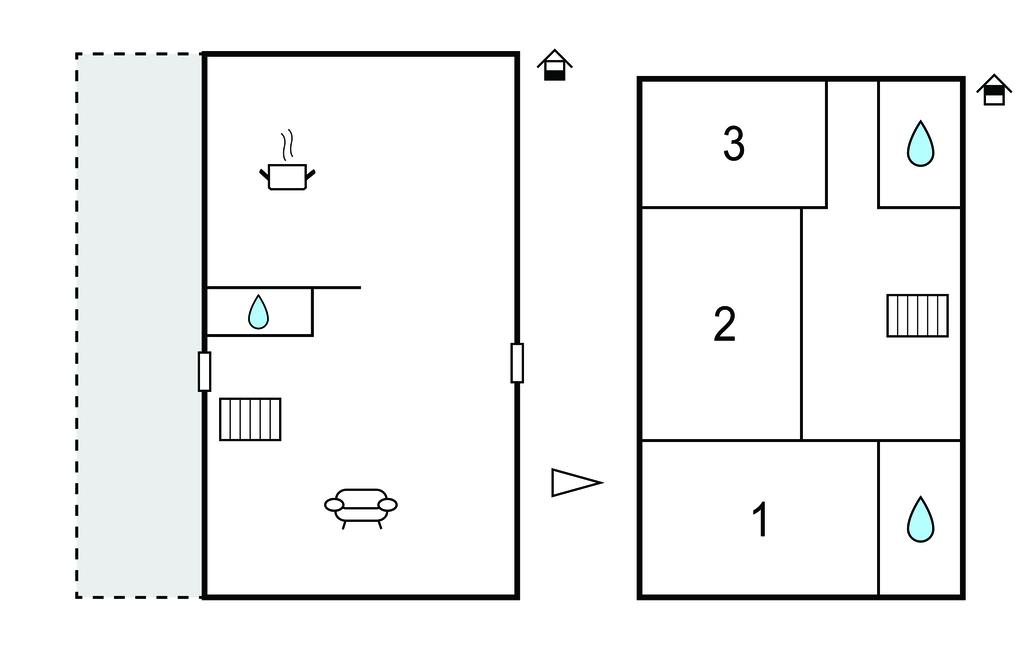 Badeværelse 6m2 (nr. 2) - WC. Varmt og koldt vand. Bruser
