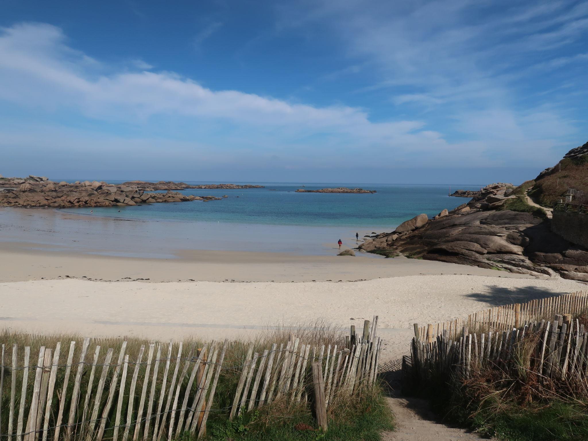 Cosy residence "Les Bains". 100 m from the centre of Trégastel, on top of a hill, 50 m from the sea, 50 m from the beach, road to cross. In the complex: reception, internet access, washing machine, tumble dryer (for shared use, extra). Parking at the house. Shop 100 m, grocery, restaurant 200 m, bus stop 1 km, railway station "Lannion" 10 km, sandy beach "Chemin des Douaniers" 50 m, park "Aquatonic eau de mer" 1 km. Sports harbour 2 km, riding stable 5 km. Nearby attractions: La presqu'île Renote,24h de la Voile, Perros Guirec 5 km, Pleumeur Bodou 5 km, Aquarium de Trégastel, La réserve des 7 îles, Festival du Chant des marins (aout). Hiking paths: La Vallée de Traoueros, Découverte de la côte de granit rose, les vieux Gréments à Paimpol 45 km. Please note: car recommended. Suitable for families, baby equipment on request (extra). Residence with electric gates. The photograph shows a typical example. The photo is just an example. Additional accommodations can be booked.