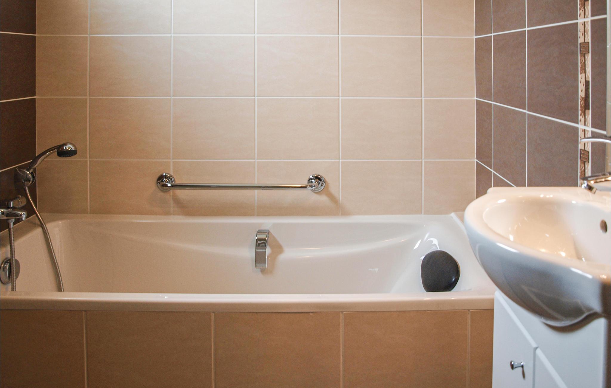Badeværelse (nr. 1) - Varmt og koldt vand. Bruser og badekar