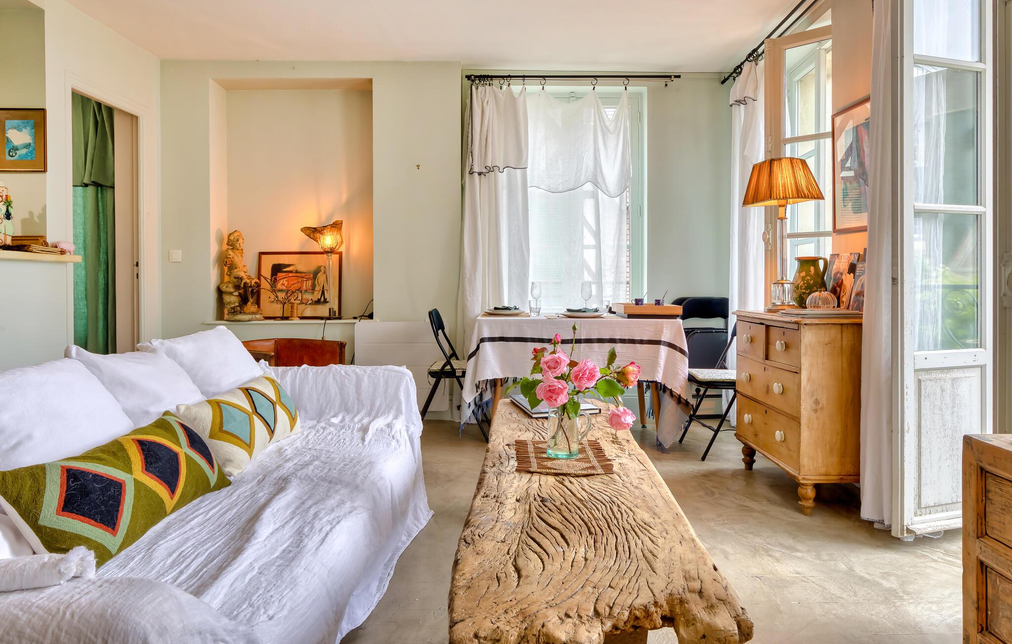 Nyd en uforglemmelig ferie for to i denne charmerende ferielejlighed med havudsigt nær stranden. Lad jer betage af det stilfulde interiør i denne fortryllende ferielejlighed, møbleret med stor sans for detaljer, hvor I kan tilbringe hyggelige dage i intim samvær kun få skridt fra sandstranden. Tilbered lækre måltider med friske råvarer fra markedet, planlæg jeres aktiviteter blandt de gamle bindingsværkshuse i nabolaget, og nyd den unikke atmosfære med et glas vin om aftenen. Fra den charmerende lille altan kan I allerede se den nærliggende sandstrand. Start dagen med en friskbrygget kaffe og glæd jer til en begivenhedsrig dag. Udnyt nærheden til butikker og restauranter, og vælg spontant mellem stranden eller en slentretur gennem byen. Slentr gennem det maleriske fiskerkvarter Honfleur og nyd frisk fisk og skaldyr ved havnen, udforsk den berømte badeby Deauville med dens elegante villaer, butikker og den berømte strandboulevard Les Planches, eller cykl gennem æbleplantagerne i det idylliske Pays d'Auge.