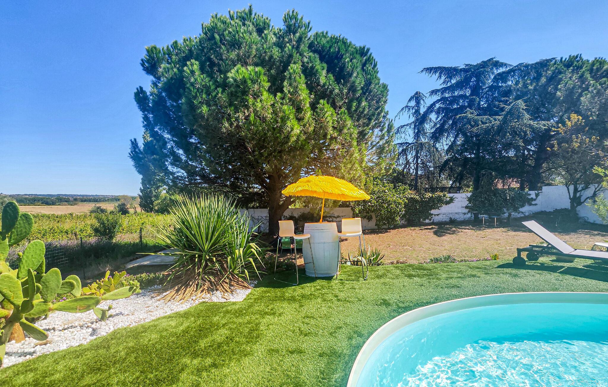 Tilbring en varieret ferie i dette komfortable feriehus med pool og et charmerende udendørsområde.