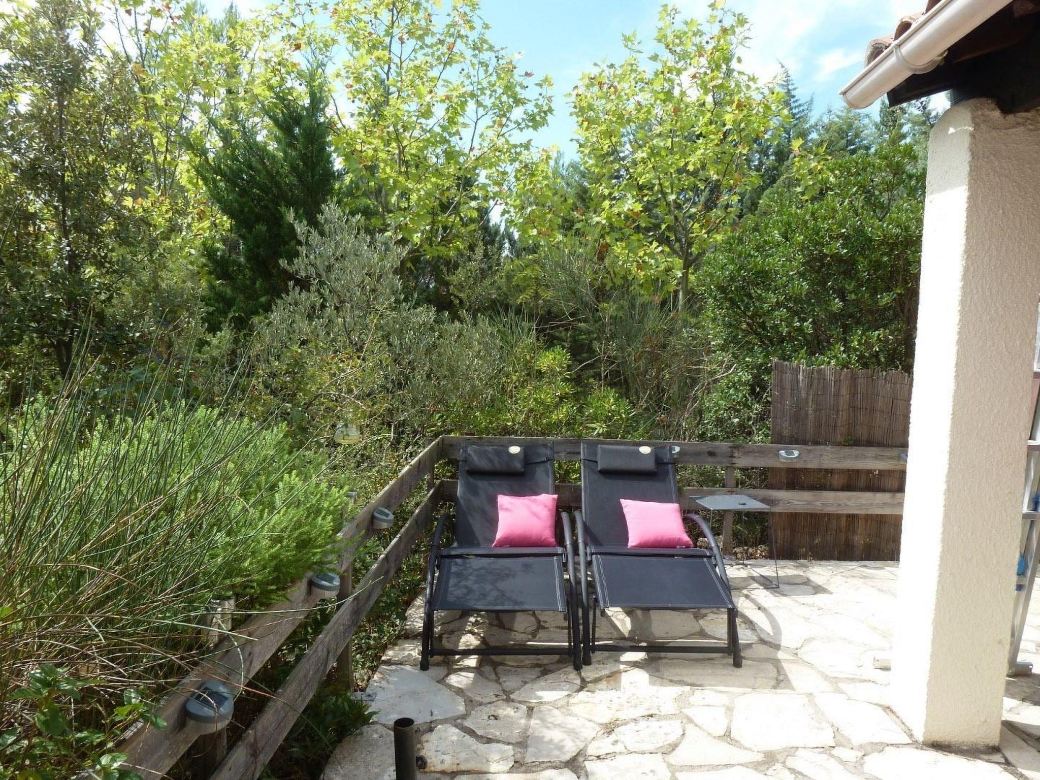 Lilliputienne has 3 terraces, a front terrace with 2 wooden deckchairs, a table with 4 chairs and a large parasol, a side terrace with a bench and a rear terrace where there is a table in the shade around the grape tree and 2 more deckchairs for sunbathing. All terraces guarantee optimum privacy, partly due to vegetation. You can cool down under the outdoor shower if necessary. Outside there is a covered terrace with 2 wooden loungers, large parasol, a table with parasol and 4 chairs. Side terrace with chest for the cushions (I put a tablecloth over it, it is rather white and so looks like a freezer!), a bench, chair and parasol. Behind, the grape tree surrounded by a table with four chairs. All the terraces are lit. At the back of the property there are 2 more deck chairs with parasol and the clothes lines. Additional chairs can also be found behind the house.