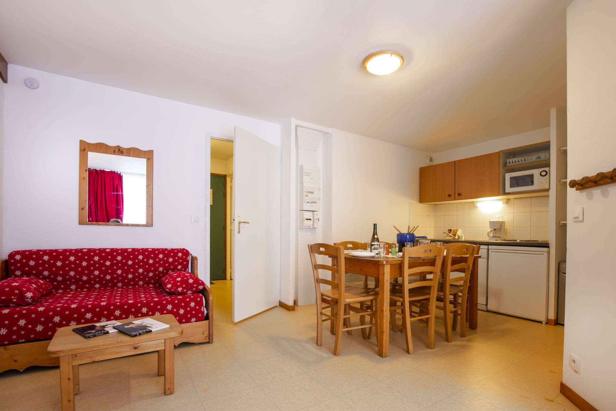 Bo i denne komfortable 31m² lejlighed beliggende i "Les Balcons de la Vanoise"-boligen i Termignon, Frankrig. Lejligheden er ideel til op til 6 personer og ligger kun 50 meter fra gondolens afgangssted, hvilket giver nem adgang til et af de største skiområder i verden. Lejligheden i stueetagen har opholdsstue med balkon, fladskærms-tv og åbent køkken udstyret med køleskab, fryser, opvaskemaskine, mikroovn, kaffemaskine, elkedel og brødrister. I stuen er der en dobbelt sovesofa og en enkeltseng, mens soveværelse 1 har to tilstødende enkeltsenge. Entréen indeholder en ekstra enkeltseng. Badeværelset har bruser, og der er separat toilet. Yderligere faciliteter omfatter et skirum, vaskeri (mod ekstra gebyr) og en udendørs parkeringsplads afhængig af tilgængelighed. Kæledyr er velkomne. Boligen er bekvemt placeret i nærheden af butikker (200m) og en restaurant (50m). Valgfri tjenester såsom sengelinned, håndklæder og slutrengøring er tilgængelige mod et ekstra gebyr. Nyd eksklusive rabatter med Alpvisions partnere.