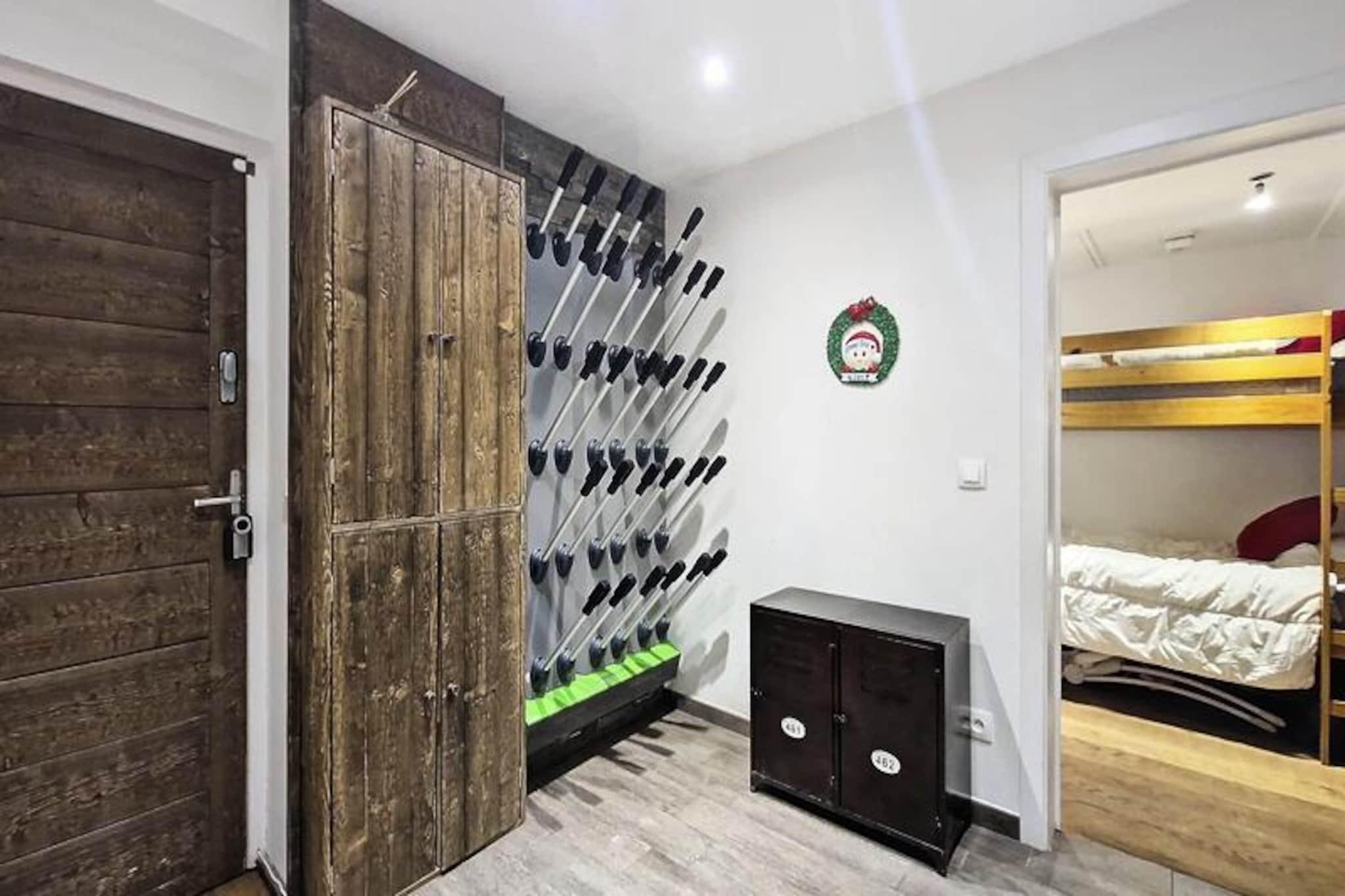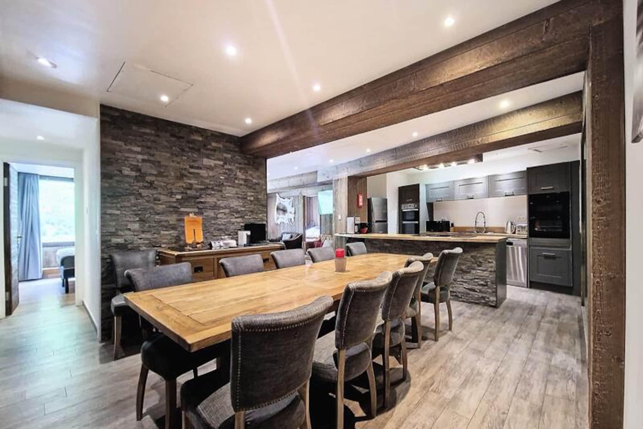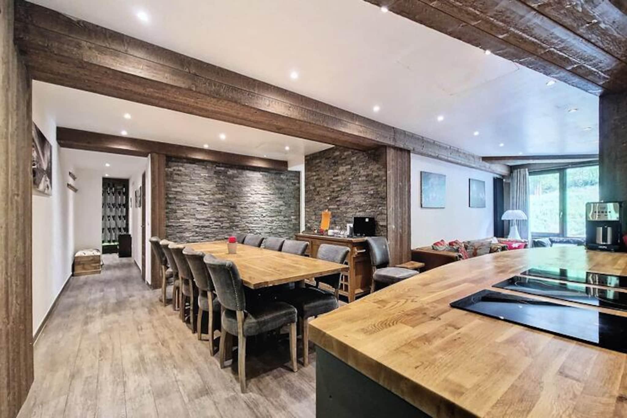 Midt i Val d'Isères pulserende charme tilbyder denne udsøgte lejlighed med 6 værelser et luksuriøst tilflugtssted for op til 10 gæster. Beliggende på hovedgaden, kun 4 minutters gang fra pisterne, kombinerer den bekvemmelighed med elegance, hvilket gør den til den perfekte base for en uforglemmelig alpin ferie. Fra det moderne design til den enestående udsigt over bjergene mod nord er hver eneste detalje omhyggeligt udvalgt for at sikre et mindeværdigt ophold i en af ??Frankrigs mest berømte skisportssteder. Uanset om du er her for vintersport eller sommereventyr, placerer denne bolig dig i hjertet af det hele. \n\nLejligheden er på 132 m² og kan prale af en rummelig åben opholdsstue med en hyggelig stue, spiseplads og et fuldt udstyret køkken med dobbeltovne, vinkælder og vaskemaskine/tørretumbler. Fem smukt indrettede soveværelser opfylder ethvert behov, herunder eget badeværelse for ekstra privatliv og komfort. De gennemtænkte faciliteter strækker sig til en skopumpeter i entréen, WiFi og tv, der sikrer afslapning efter en dag med udforskning. Sengene er redt ved ankomst, og der er premium sengetøj og håndklæder, og hotellet tilbyder valgfri rengøring for ekstra bekvemmelighed.\n\nVal d'Isères livlige landsbyatmosfære ligger lige uden for døren med butikker, restauranter og afterski-steder kun få skridt væk. Om vinteren kan du nyde fordelagtige priser på liftkort til Tignes og Val d'Isère, mens sommeren afslører et paradis af vandrestier, mountainbikeruter og betagende landskaber. Med to parkeringspladser inkluderet har du nem adgang til at udforske den bredere region.\n\nUanset om du søger spændende pister, rolige bjergudsigter eller et hyggeligt paradis at slappe af, tilbyder denne lejlighed den ultimative alpine oplevelse. Book dit ophold og skab varige minder i hjertet af Val d'Isère.