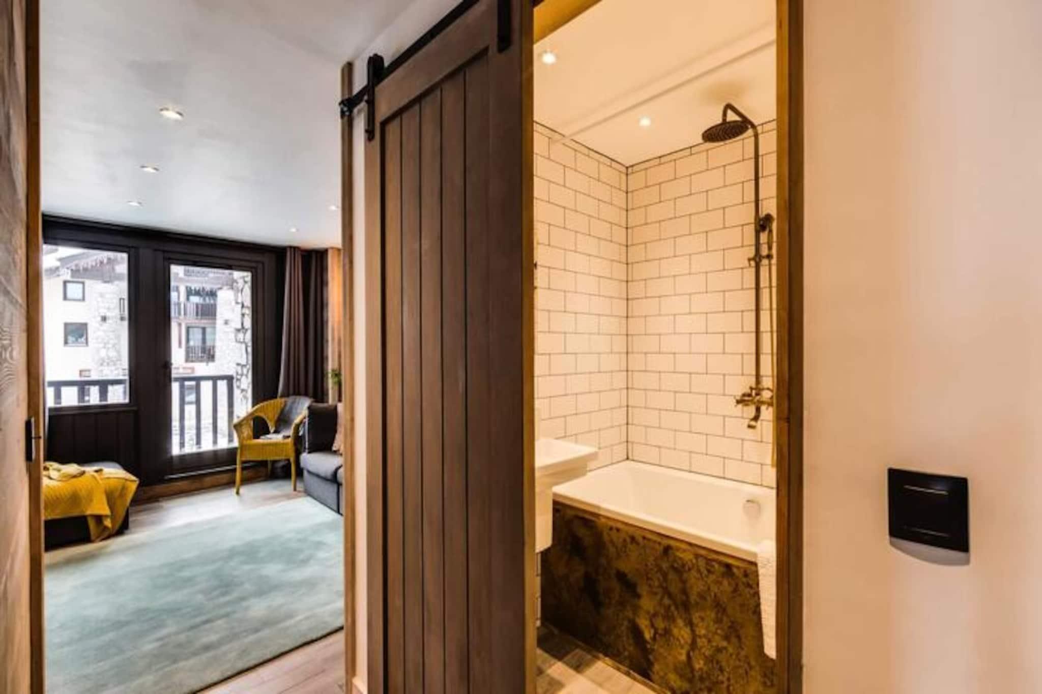 I hjertet af den prestigefyldte landsby Val d'Isère tilbyder denne smukt renoverede lejlighed en harmonisk blanding af traditionel Savoyard-charme og moderne komfort. Omgivet af de majestætiske tinder i de franske alper tilbyder denne bolig en uovertruffen ski-in/ski-out-oplevelse, hvilket gør den til det perfekte alpine tilflugtssted for familier og venner. Fra den sydvendte balkon kan du nyde den rolige udsigt over det livlige torv, mens du nyder den friske bjergluft. Med sin førsteklasses beliggenhed er du kun få skridt fra pisterne, skiskolen og en række butikker og restauranter, hvilket sikrer bekvemmelighed i alle områder. \n\nDenne gennemtænkt designede lejlighed har plads til op til fem gæster fordelt på to hyggelige soveværelser. Soveværelset har en komfortabel dobbeltseng, mens det andet soveværelse har en dobbeltseng og en ekstra væghængt enkeltseng. Den åbne opholdsstue indbyder til afslapning med et fladskærms-tv udstyret med Netflix og Amazon TV, mens det fuldt udstyrede køkken kan prale af moderne apparater, herunder en Nespresso-maskine, opvaskemaskine og vaskemaskine. Et rummeligt badeværelse med badekar og håndklædetørrer sikrer et strejf af luksus, og det separate toilet tilføjer bekvemmelighed. \n\nGæsterne vil sætte pris på de ekstra faciliteter såsom en sikker overdækket parkeringsplads, et skiboks og gratis Wi-Fi. Sengelinned, håndklæder og endda badekåber er inkluderet, og rengøring er inkluderet under dit ophold. Lejlighedens uovertrufne beliggenhed betyder, at du kan lade din bil blive hjemme og nyde alt, hvad Val d'Isère har at byde på, til fods. I nærheden kan du opdage afterskiing-hotspots som Coin des Amis eller Le Doudoune Club, og forkæle dig selv med udsøgte restauranter på La Corniche. \n\nUanset om du er her for at grave dig gennem uberørt sne, udforske den pulserende landsby eller blot slappe af i de fredfyldte alpine omgivelser, lover denne perle i Val d'Isère en uforglemmelig bjergferie. Book dit ophold i dag og skab dyrebare minder på en af ??de mest eftertragtede destinationer i Alperne.