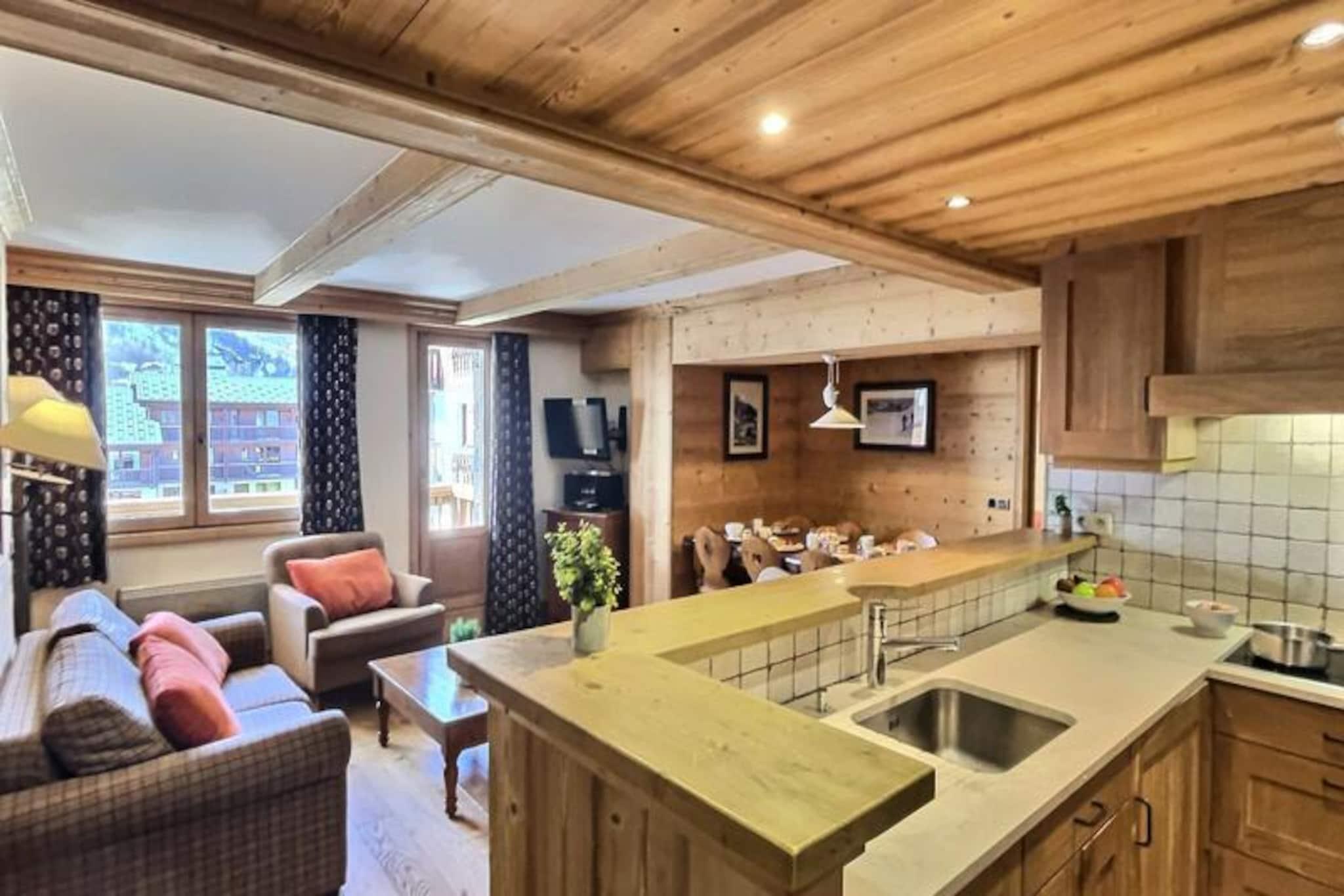 Fremragende 3-værelses lejlighed med sovealkove til 8 personer beliggende i Val d'Isère, med ski-in/ski-out og 500 m fra landsbyens centrum, shuttlebus