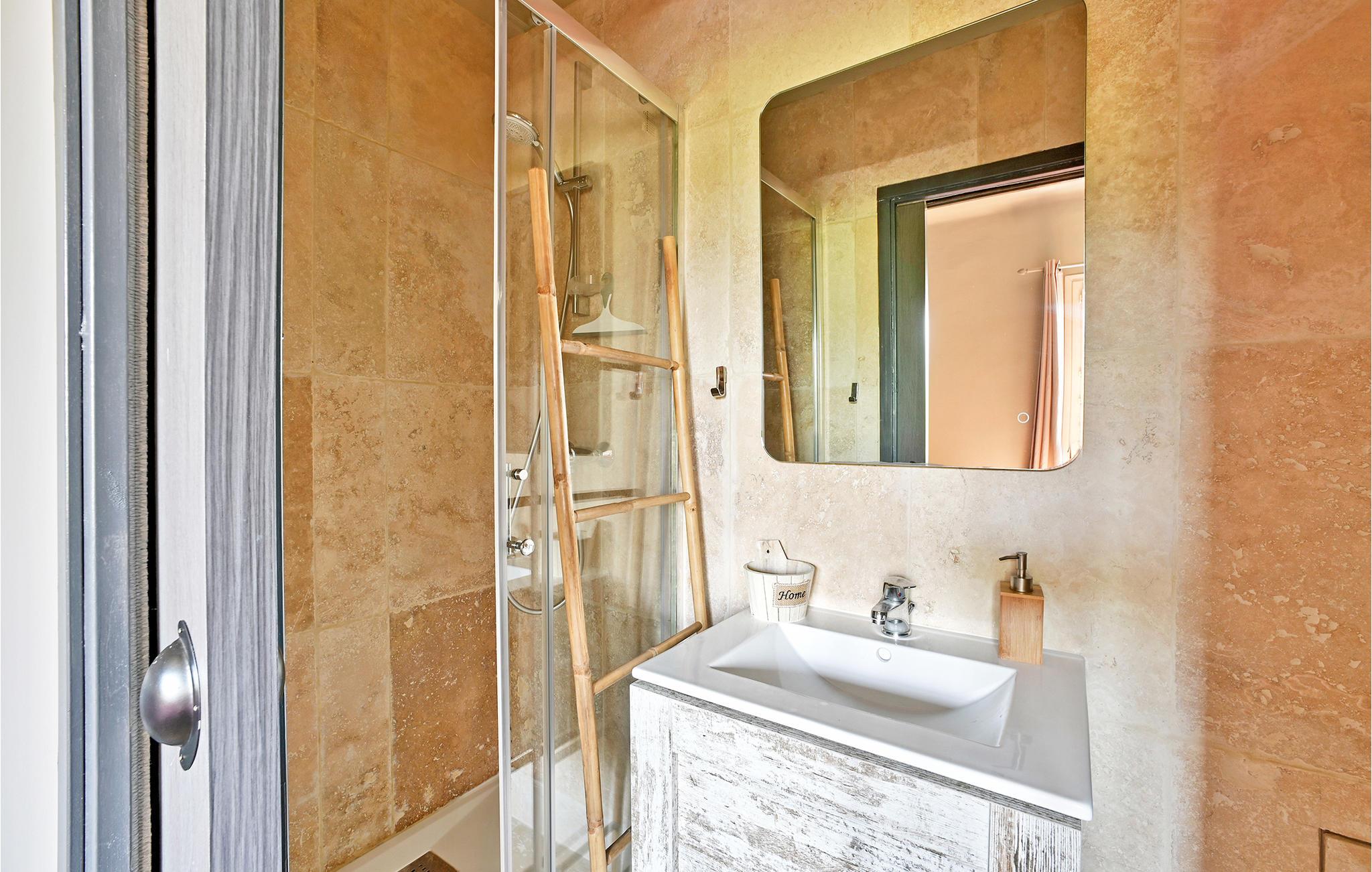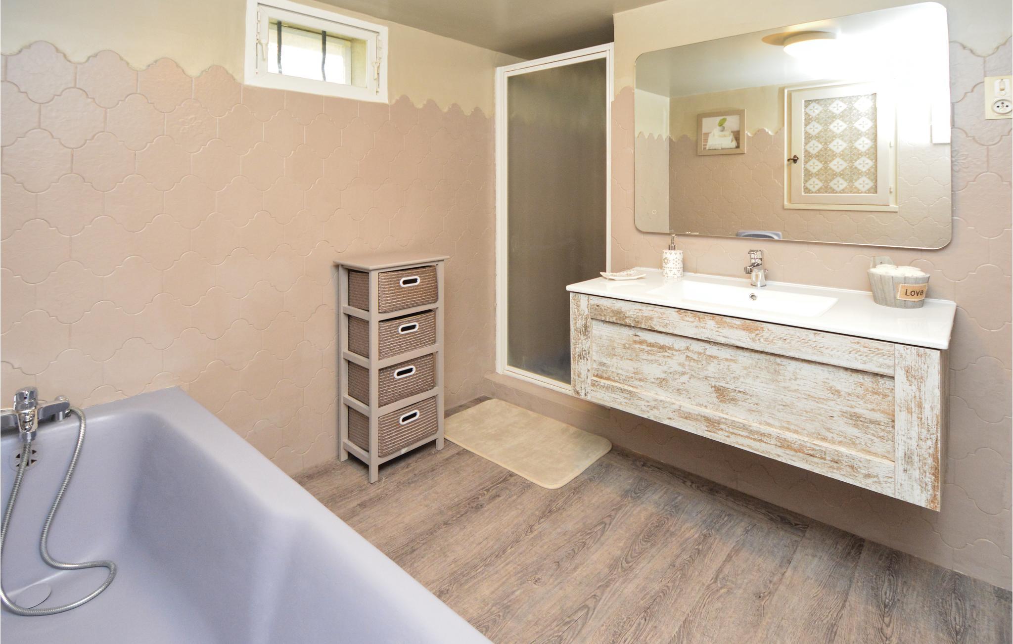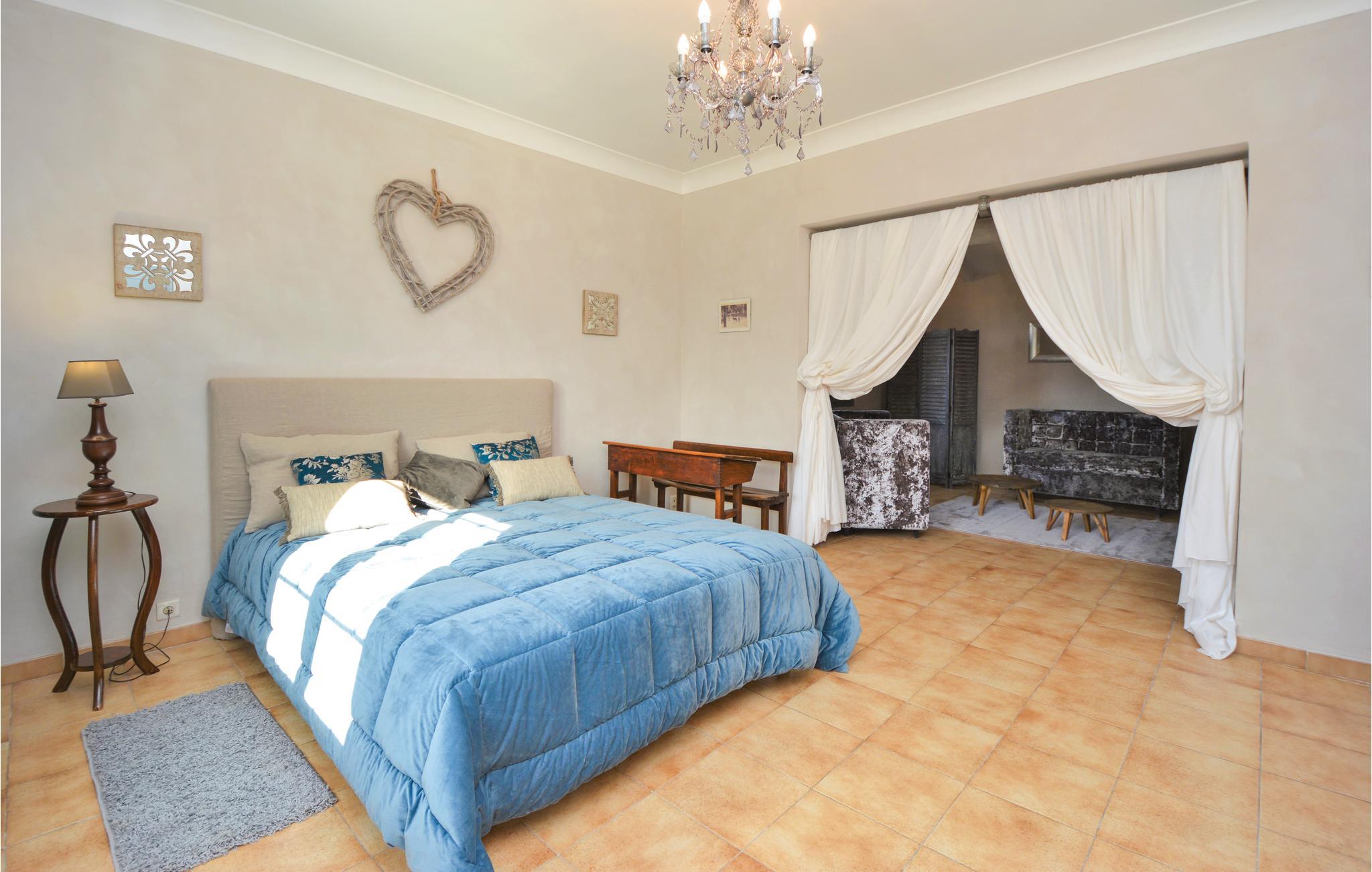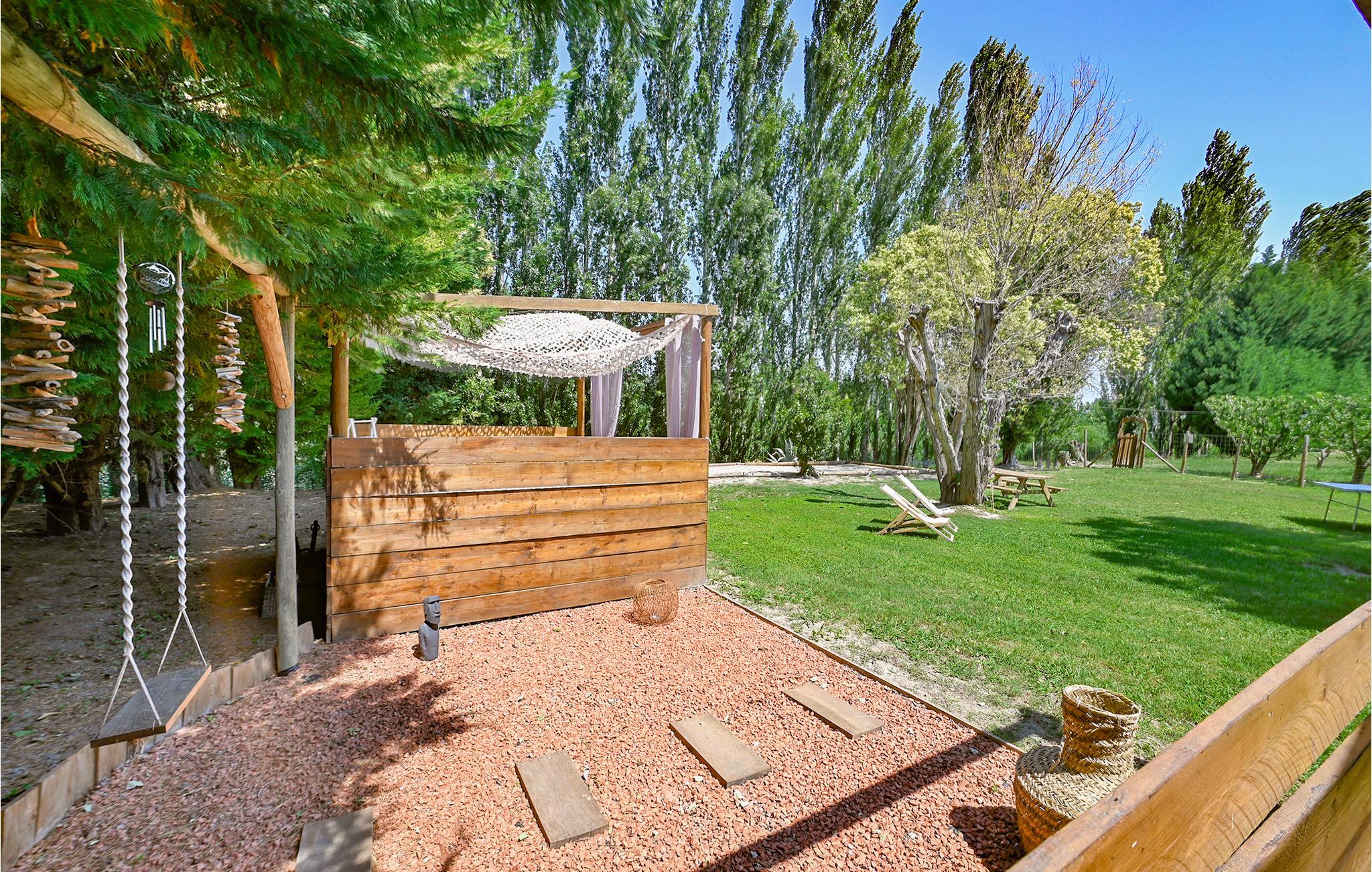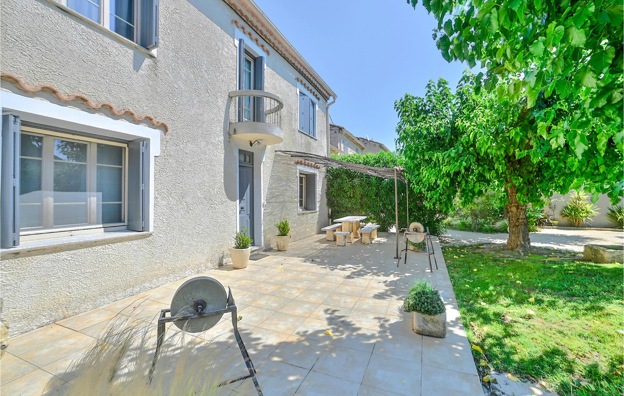 Til boligen hører en lille balkon, en åben terrasse til solbadning og en stor overdækket terrasse. Begge terrasser støder op til jeres private pool. I soveværelset i stueplan er der et hyggeligt siddehjørne. Af og til hører I en traktor tøffe forbi – men til gengæld kan I få udleveret frisk frugt fra husets ejer. I nærheden kan I besøge: Avignon (23 km), Saint-Rémy-de-Provence (21 km), Beaucaire (7 km), Nîmes (30 km), Arles (22 km) og Les Baux-de-Provence (22 km). I kan gå pragtfulde ture i Alpillerne og i den nærliggende by (2,5 km) er det gratis at spille tennis. Her er også en skaterpark og en lille sø.