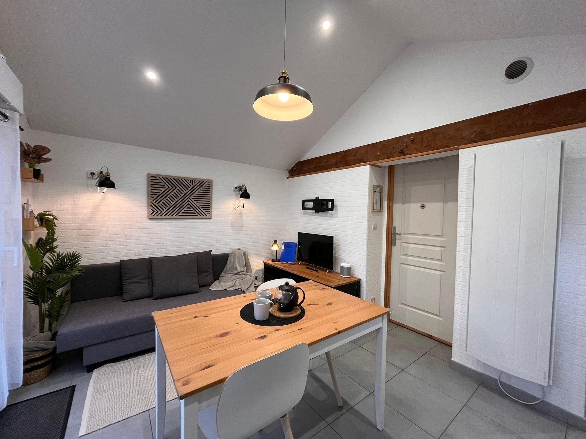 Das Schlafzimmer ist mit einem Queen-size Bett (160 cm) ausgestattet, das Badezimmer mit Dusche und WC, im Wohn-/Essbereich befindet sich eine voll ausgestattete Küche mit Spülmaschine sowie eine Waschmaschine. In dem Raum befindet sich auch ein Schlafsofa (130x190cm) welches von einem Erwachsenen, bzw. zwei Kindern benutzt werden kann. Alle ökologischen Reinigungsprodukte, sowie Pflege und Bettwäsche werden Ihnen zur Verfügung gestellt. Sie profitieren ebenfalls von kostenlosem Wifi, sowie einem SmartTV mit Netflix und Disney+ abonnement.