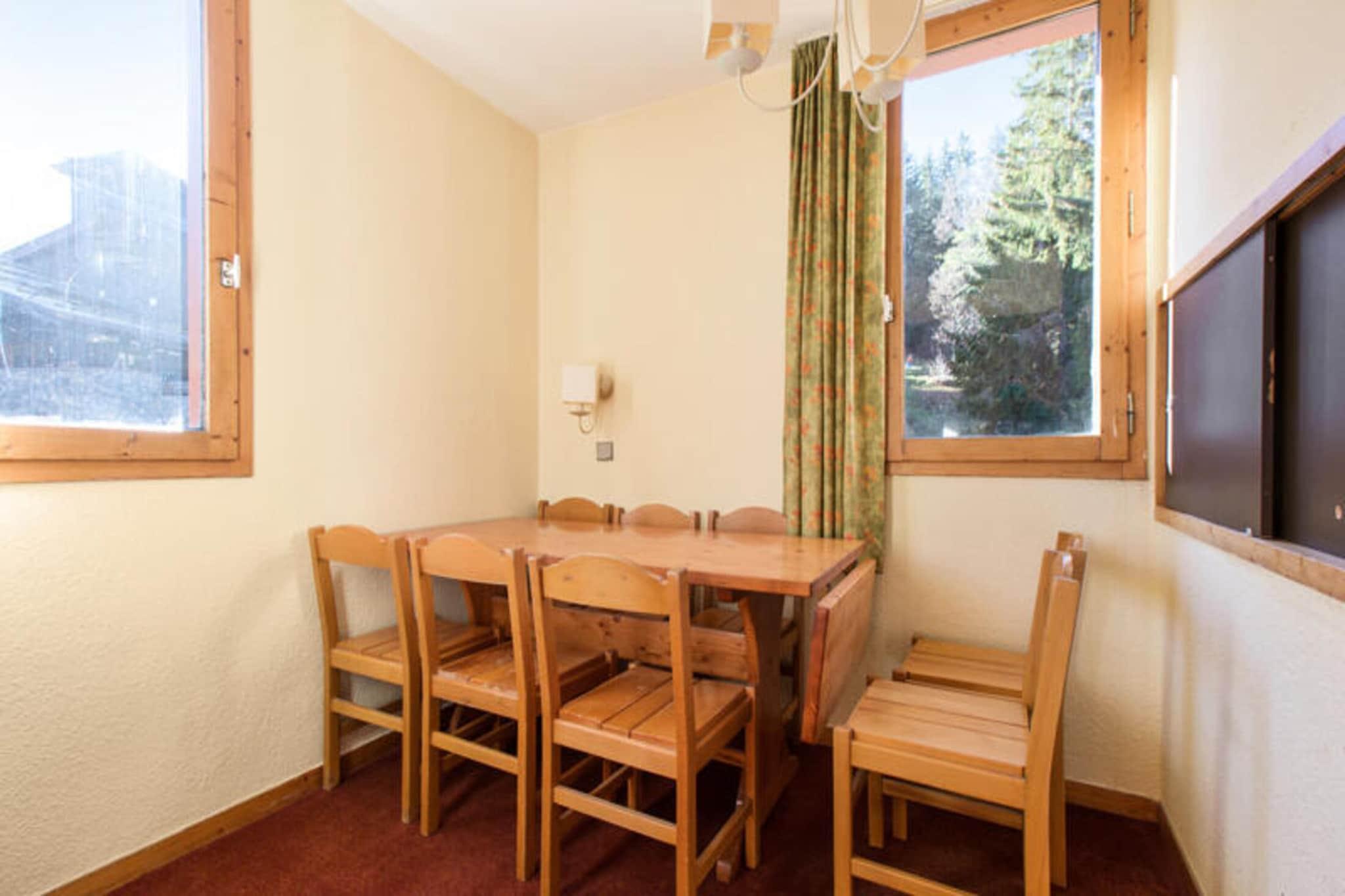 Ejendom tilbyder sammen med sin charmerende beliggenhed i Valmorel en rummelig og veludstyret duplex-lejlighed ideel til familier eller grupper. Lejligheden kan rumme op til 7 gæster, med en stue med to enkelt sovesofaer og en udtræksseng, hvilket giver rigelig plads til afslapning. Køkkenet er adskilt og kommer med et sydvendt vindue, der giver naturligt lys mulighed for at oplyse rummet. Lejligheden har også to altaner - den ene i stuen og den anden i soveværelserne - så gæsterne kan nyde den friske bjergluft. Lejligheden indeholder to badeværelser, det ene med badekar og det andet med bruser, plus to separate toiletter. Tjenester som sengelinned, håndklæder og daglig rengøring er tilgængelige mod et ekstra gebyr. Med hensyn til beliggenhed er lejligheden ideelt beliggende i La Forêt-distriktet i Valmorel, kun 50 meter fra Planchamp stoleliften, hvilket sikrer nem adgang til skiområdet. Området er fodgængervenligt og familieorienteret, med nærhed til en fyrreskov og faciliteter til et fredeligt tilflugtssted. Gæsterne kan nå Maeva Home-agenturet og lokale butikker inden for 5 minutters gang, hvilket giver bekvemmelighed til hverdagens behov. Resortets beliggenhed tilbyder en perfekt balance mellem natur og bekvemmelighed, med malerisk udsigt over bjergene og en rolig atmosfære. Lejligheden har væsentlige faciliteter såsom et veludstyret køkken med et smukt sydvendt vindue, perfekt til at tilberede måltider efter en dag med udendørs aktiviteter. Yderligere tjenester omfatter trådløs internetadgang, som er tilgængelig mod et ekstra gebyr, og et babysæt, der kan rekvireres baseret på tilgængelighed. For ekstra bekvemmelighed er parkering tilgængelig mod et gebyr, og der er mulighed for overdækket parkering i vintersæsonen. Slutrengøring er obligatorisk og kan arrangeres enten af ??gæsterne eller mod et tillægsgebyr.