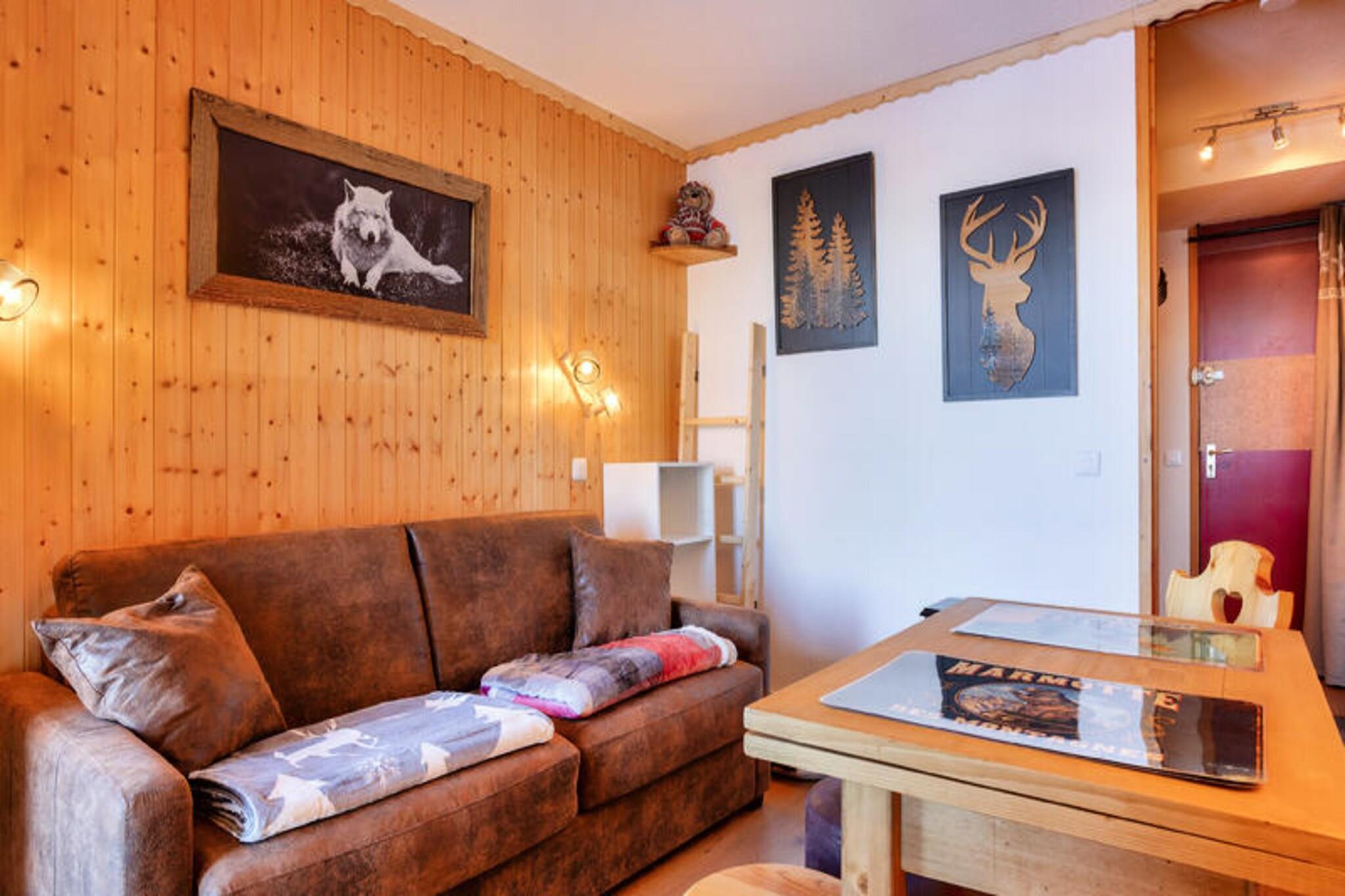 Beliggende på højderne af Valmorel i Crève Cœur-distriktet, tilbyder disse charmerende hytter, bygget i typisk Savoyard-stil, en idyllisk alpine ferie. Boligerne er fordelt på 4 til 5 etager og danner en lille landsby med nem adgang til både pisterne og vandrestierne. Uanset om du besøger om vinteren eller sommeren, er beliggenheden perfekt for udendørsentusiaster med direkte adgang til pisterne og en fantastisk udsigt over bjergene. Byens centrum og dens butikker ligger kun en kort køretur væk via Télébourg-svævebanen, som tilbyder bekvemmelighed for shopping og spisning. Med den nærmeste skilift kun 1-5 minutters gang væk, tilbyder denne studio den perfekte base for dit bjergeventyr. Maeva Home-agenturet og forskellige butikker ligger inden for 5 minutters gang. Nærliggende attraktioner omfatter den maleriske by Valmorel, vandrestier og et væld af udendørs aktiviteter. Nyd en ferie med komforten i et velholdt, værdi for pengene studie, og nyd skønheden i de omkringliggende alper. Studiet på 20 m² ligger i stueetagen og byder på et halvåbent køkken, en komfortabel opholdsstue med en sovesofa og køjesenge, et badeværelse med badekar og et separat toilet. En overdækket terrasse med en vestvendt udsigt over bjergene fuldender pladsen, ideel til at slappe af efter en dag med aktiviteter.