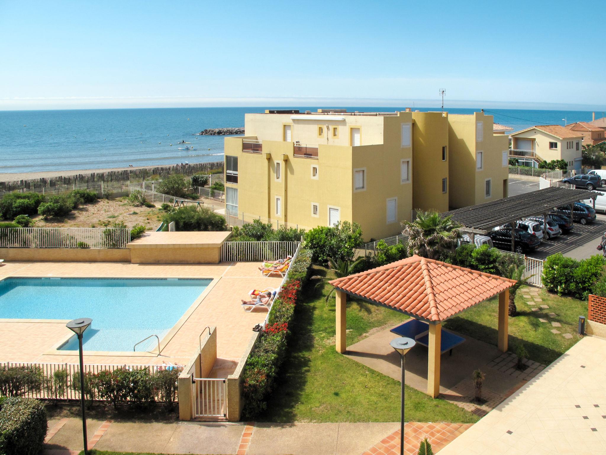 Resort "Résidence Alizéa", 4 storeys. 3 houses in the resort. 80 apartments in the residence. 2 km from the centre of Valras-Plage, 10 m from the sea. For shared use: property (fenced) with plants, swimming pool fenced (10 x 5 m, seasonal availability: 05.Apr. - 31.Oct. pool opening hours: 10:00-12:30 and 13:30-20:00). Outdoor shower, table tennis. In the complex: reception, WiFi, table tennis, lift, washing machine, tumble dryer (for shared use, extra). Parking on the premises. Shop 200 m, supermarket 5 km, sandy beach 10 m. Please note: the photograph shows a typical example. The holiday properties may differ in living space, floorplan, equipment and furnishing. Wi-fi only at the reception.