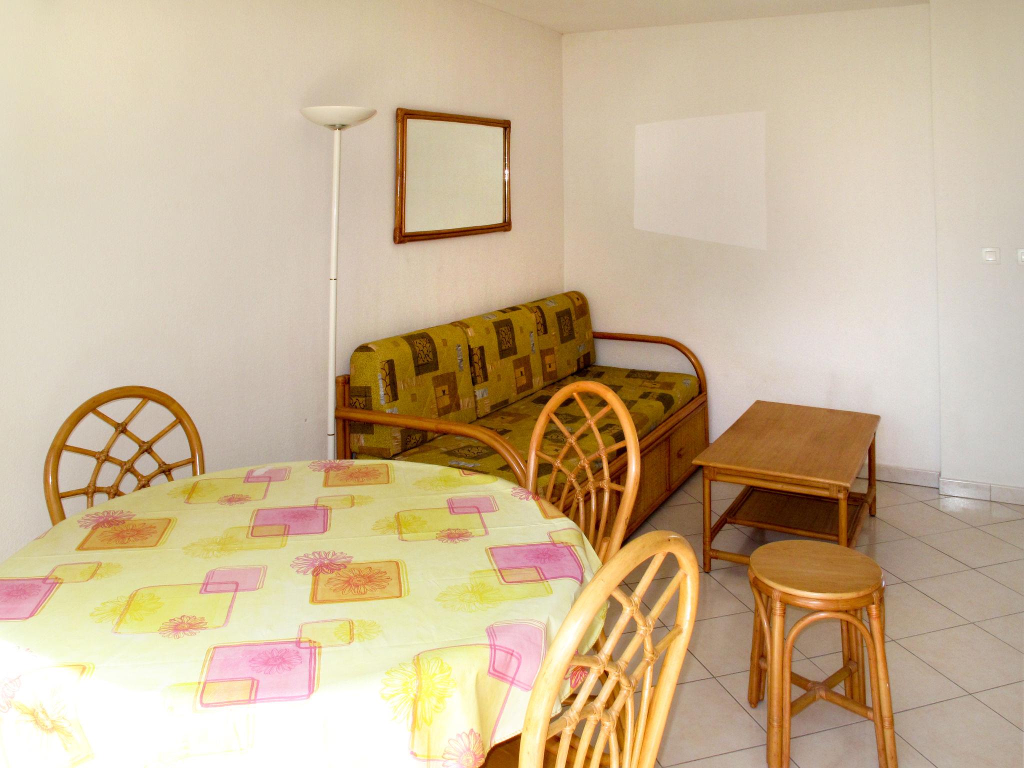 "Résidence Alizéa", 2-room apartment 45 m2. Bright, simple furnishings: living/sleeping room with 1 pull-out bed (2 x 80 cm), dining table and TV. Exit to the balcony, to the terrace. 1 room with 1 french bed. Open kitchen (mini-oven, dishwasher, 4 ceramic glass hob hotplates, electric coffee machine). Shower/WC. Electric heating. Balcony or terrace. Terrace furniture, balcony furniture. Facilities: children's high chair, baby cot. Please note: maximum 1 pet/ dog allowed. Smoke alarm.