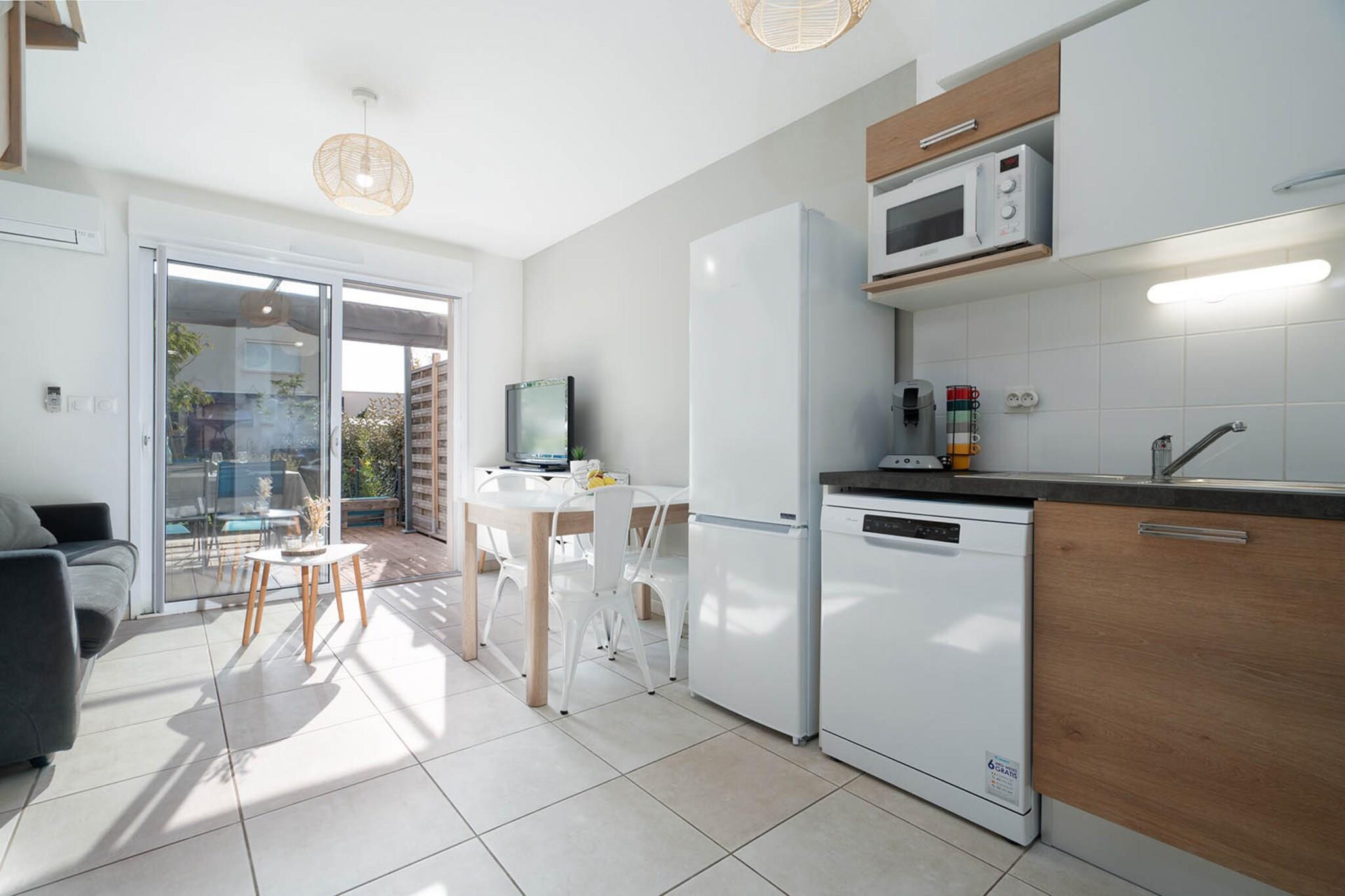 Denne charmerende villa på 40 m² i Valras-Plage er en perfekt tilflugtssted ved kysten for op til 6 gæster. Med 2 hyggelige soveværelser og en beliggenhed kun 450 meter fra sandstranden tilbyder det både komfort og bekvemmelighed i et fredeligt, familievenligt kvarter. En nærliggende restaurant (600 m) og supermarked (1 km) gør daglige udflugter ubesværede. Nyd udendørs med en privat have, møbleret terrasse og plads til udendørs spisning eller slappe af i solen. Indvendigt er villaen udstyret med aircondition, elvarme, vaskemaskine, strygejern, hårtørrer og tv. Gæsterne har også adgang til en fælles opvarmet swimmingpool og udendørs parkering i bygningen. Det elektriske køkken i åbent plan er fuldt udstyret med moderne apparater - køleskab, mikroovn, opvaskemaskine, kaffemaskine, brødrister, kedel - og alle de tallerkener og redskaber, du skal bruge for at tilberede måltider med lethed. Uanset om du planlægger en strandpicnic eller en afslappet middag derhjemme, gør denne villa livet ved havet enkelt og behageligt.