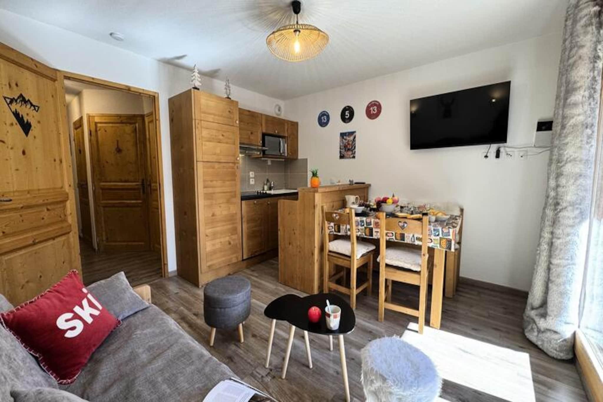 Højt over Vars' maleriske skråninger tilbyder residensen Hameau des Rennes et roligt alpint tilflugtssted, hvor charme og komfort blandes ubesværet. Denne dejlige landsby, beliggende ved foden af ??Fontbonne-stoleliften, giver direkte adgang til pisterne for erfarne skiløbere via en central elevator, hvilket gør den til et paradis for vintersportsentusiaster. Om sommeren forvandles residensen til en rolig oase med både indendørs og udendørs swimmingpools, der inviterer gæsterne til at slappe af midt i et betagende bjerglandskab. Uanset om du er her for snefyldte eventyr eller solrige vandreture, lover omgivelserne uforglemmelige øjeblikke i hjertet af Alperne. \n\nLejligheden, der er designet til op til fire gæster, kan prale af et varmt og lyst opholdsrum, der åbner ud til en solrig balkon. Forestil dig at starte din dag med morgenmad med udsigt over det majestætiske alpine landskab eller at dele en hyggelig middag efter at have udforsket stierne. Det åbne køkken er fuldt udstyret med moderne apparater, herunder opvaskemaskine, Nespresso-maskine, raclette-grill og mere, hvilket sikrer, at hvert måltid er en fornøjelse at tilberede. Et dobbeltværelse med en blød 160x200 cm seng og et fjernsyn, samt en sovesofa i stuen, der kan laves om til to separate sovepladser, giver komfort og fleksibilitet for familier eller venner, der rejser sammen. Badeværelset, komplet med håndklædetørrer og hårtørrer, samt et separat toilet, bidrager til lejlighedens bekvemmelighed.\n\nBeliggende kun 200 meter fra butikker, restauranter og skiudlejning, og betjent af en gratis shuttlebus hvert 15.-20. minut, tilbyder boligen nem adgang til alle faciliteterne i Vars Les Claux. Uanset om du er på pisterne, nyder sommerpoolene eller udforsker den charmerende landsby, er alt hvad du behøver inden for rækkevidde. Bemærk venligst, at swimmingpoolen er lukket i lavsæsonen og genåbner i sommeren 2025 efter reparationer.\n\nMed sit skirum, private parkeringsplads og uovertrufne beliggenhed er denne lejlighed den perfekte base for at skabe dyrebare minder i de franske alper. Book dit ophold i dag og oplev magien ved bjerglivet.