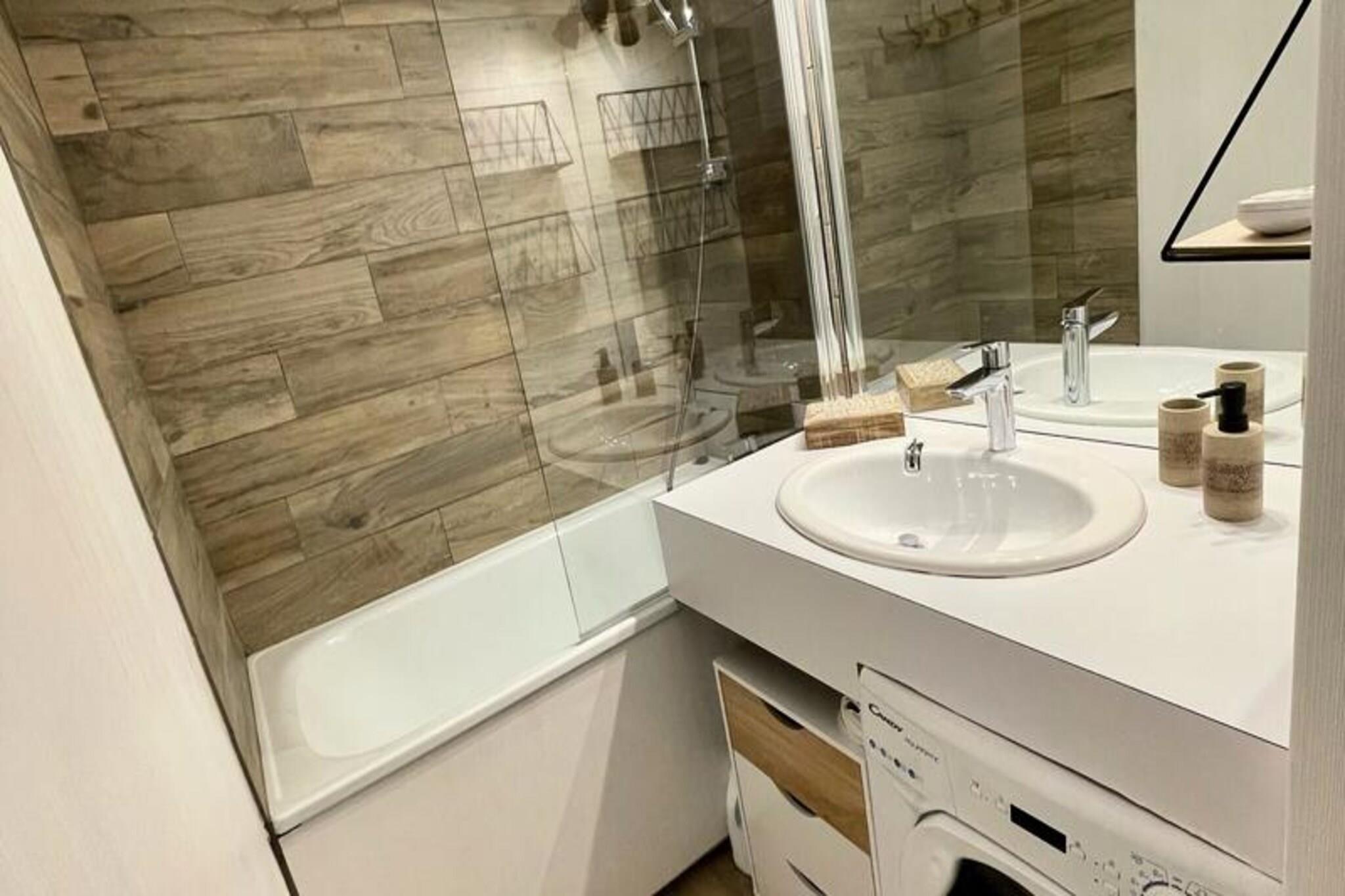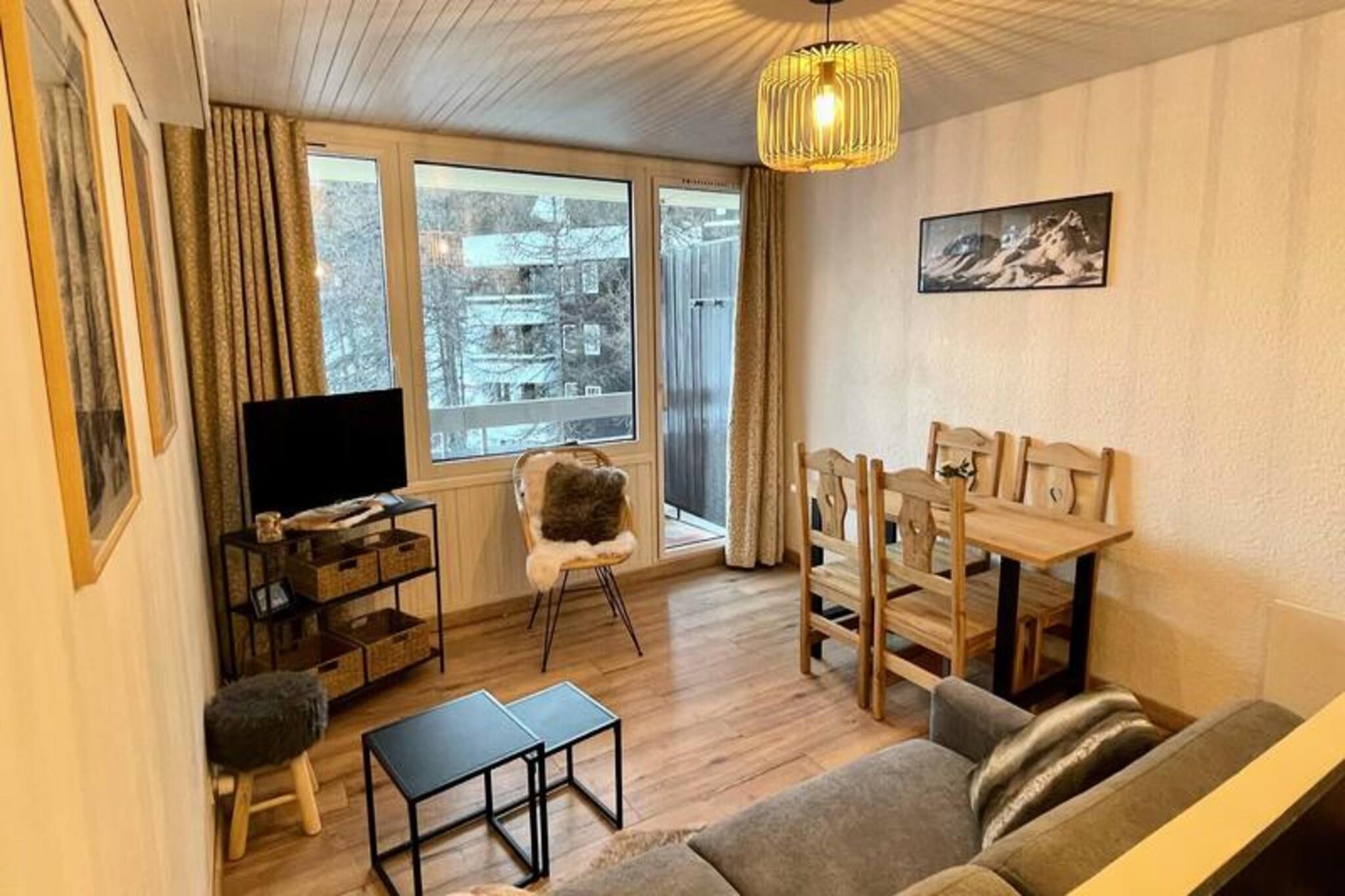 Denne ski-in, ski-out lejlighed er perfekt beliggende på den grønne skråning af Chemin des Italiens, og tilbyder direkte adgang til pisterne, hvilket gør den ideel for begyndere. Ejendommen ligger kun få skridt fra kælkebanen og Sherpa-supermarkedet samt adskillige udstyrsudlejningsbutikker. Et gratis busstoppested for foden af ??bygningen giver nem adgang til hele resortet, og Point Show ligger kun 500 meter væk, hvor du kan finde en ny swimmingpool og diverse butikker. Parkeringspladser er bekvemt placeret i nærheden. Ejendommen ligger i kort afstand fra lokale attraktioner, herunder resortets nye swimmingpool og butikker, hvilket sikrer en balance mellem både afslapning og bekvemmelighed. Nyd den perfekte skiferie med nem adgang til alt, hvad du har brug for! Lejligheden indeholder en hyggelig spiseplads med åbent køkken, der fører ud til en sydøstvendt altan, perfekt til at nyde udsigten. Opholdsområdet har en sovesofa med en rigtig madras, der tilbyder komfort efter en dag på pisterne. Køkkenet er veludstyret med mikroovn, traditionel ovn, opvaskemaskine, induktions kogeplader, citruspresse, stavblender, brødrister, kedel, vaskemaskine og både et fondue- og raclettesæt til hyggelige måltider. En Nespresso-kaffemaskine er til rådighed for din bekvemmelighed.