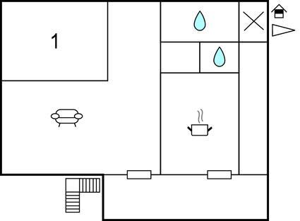 Gæsterne bydes velkommen i stuen/spisestuen eller køkkenet, og begge åbner ud på en stor altan med udsigt over haven. Der er et soveværelse med en dobbeltseng og sovesofaen i stuen/spisestuen med to yderligere sovepladser.