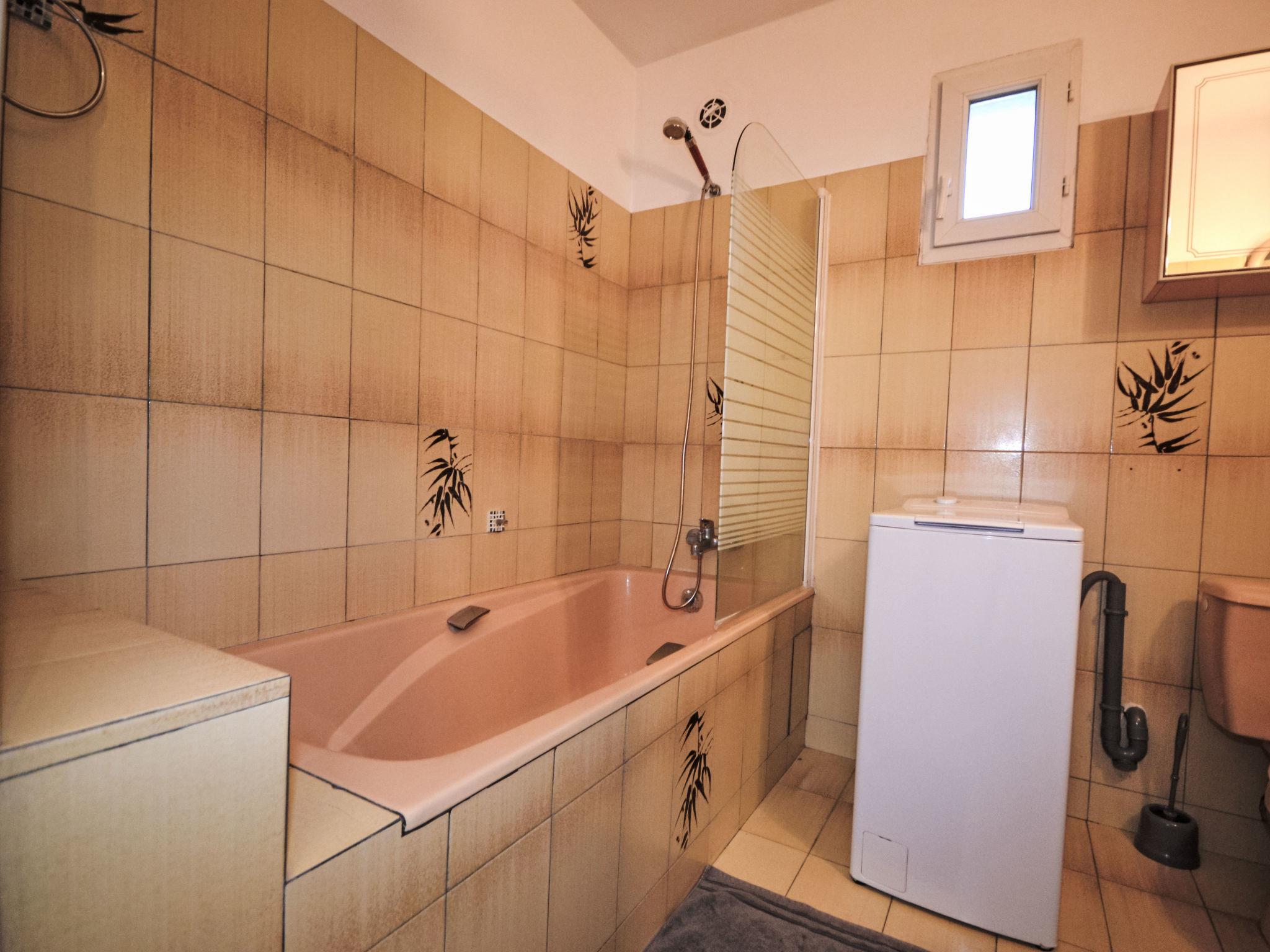 "Le Real", 3-room house 65 m2. Practical and rustic furnishings: living/dining room with open-hearth fireplace (only for decoration), dining table and TV. Exit to the terrace. 1 room with 2 beds. 1 room with 1 french bed. Kitchen (oven, dishwasher, 4 gas rings, toaster, kettle, microwave, electric coffee machine). Bath/WC. Electric heating. Terrace partly roofed, garden 300 m2. Terrace furniture, barbecue. Facilities: washing machine. Internet (WiFi, free). Please note: non-smokers only.