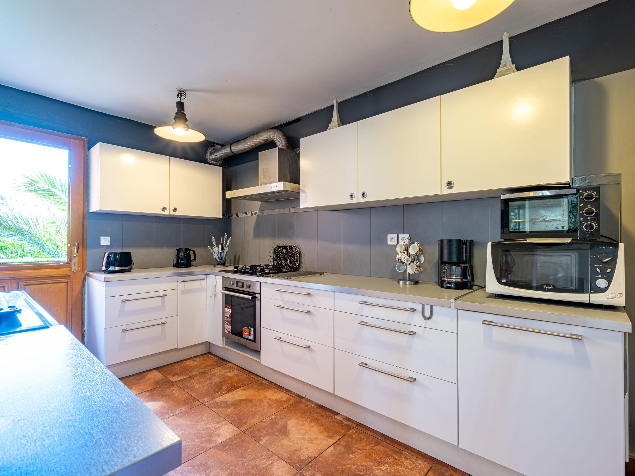 House "Jasmine". 900 m from the centre of Vendres, 12 km from the centre of Béziers, 8 km from the centre of Valras-Plage, on a slope, in the residential district, 8 km from the sea, in a cul-de-sac. Private: property (fenced), parking, single garage. Shop 900 m, supermarket 10 km, bus stop "Parc de Vénus" 400 m, sandy beach "Vendres-Plage / Valras Plage" 8 km. Owner lives in separate semi-detached house.