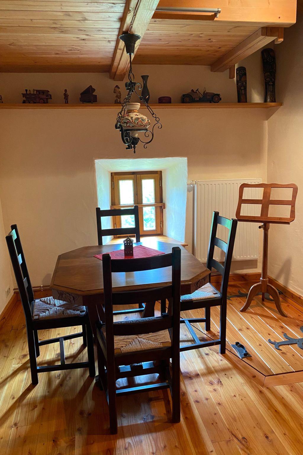 For information: Distance rules can be kept very well due to the location and the large garden! Attention: We are child-friendly! Children up to 6 years are free of charge. We have a child- and pet-friendly holiday home - old, lovingly renovated Ferme, in the Vosges (F), near Gerademer (15 km). Also suitable for musicians (good acoustics) and sportsmen (we have a sports corner in our large room). Our house offers space for 3 - 7 persons (6th and 7th person please ask for price). Pets are allowed (with a large fenced garden). We have the following rooms to offer: Kitchen with wood cooker + electric cooker (induction), microwave, coffee machine, refrigerator, (simple equipment, no dishwasher), 1 living room, 1 bathroom with bathtub and shower, 1 separate WC, the 2 bedrooms (1 double bed, 3 single beds) are on the 1st floor (up stairs), 1 attic room (there are two bunk beds in it (please bring a sleeping bag), which can be reached by a staircase, 1 large hobby room with table tennis table, climbing frame, abdominal trainer, sports trampoline, skipping ropes, medicine ball. Attic with sofa, armchair and stereo system. 1 separate barbecue, badminton, boules, garden furniture and deckchairs are available, a rubber dinghy is also ready for you. In the house there is no TV, no computer, no telephone, no W-Lan, Internet reception is possible via mobile data !!!! - so a quiet oasis. However, a stereo system for your favourite music is available. Shopping facilities in the village (approx. 10 minutes on foot) for small purchases, supermarket in the neighbouring village, approx. 8 km Cornimont, for driving. In this area you can go hiking, there are many lakes for swimming or just relaxing. There is also cycling, tennis, a playground, fishing, cross-country skiing in winter and skiing in Ventron, Cornimont and La Bresse. There is also a swimming pool in La Bresse (10 km).