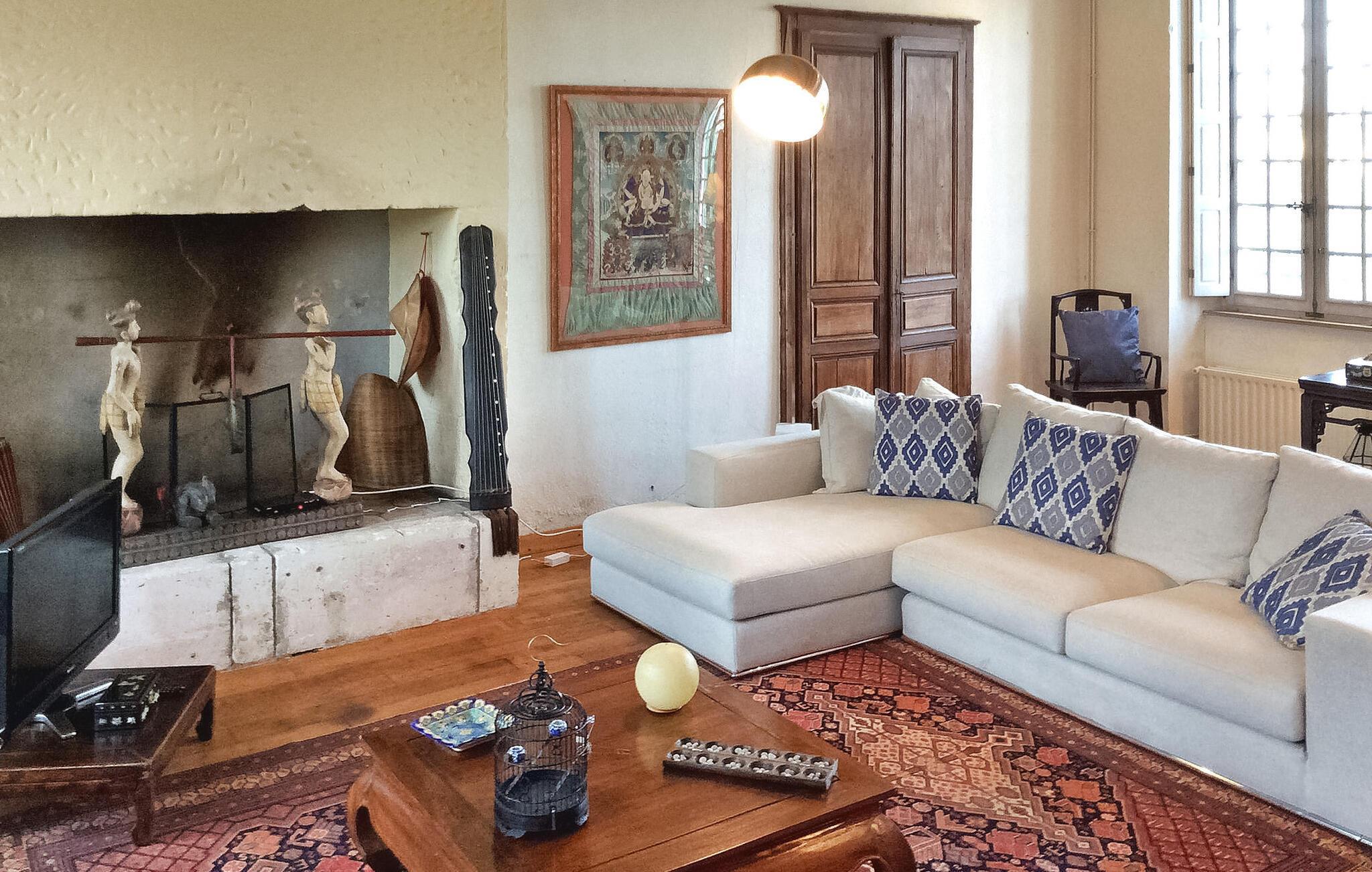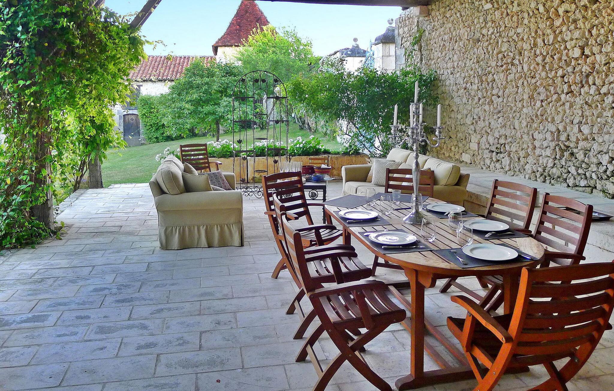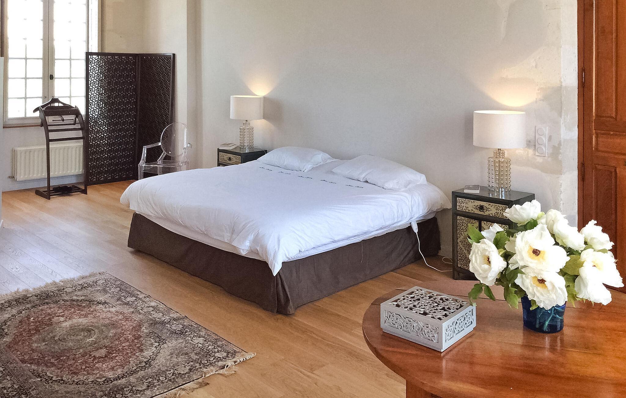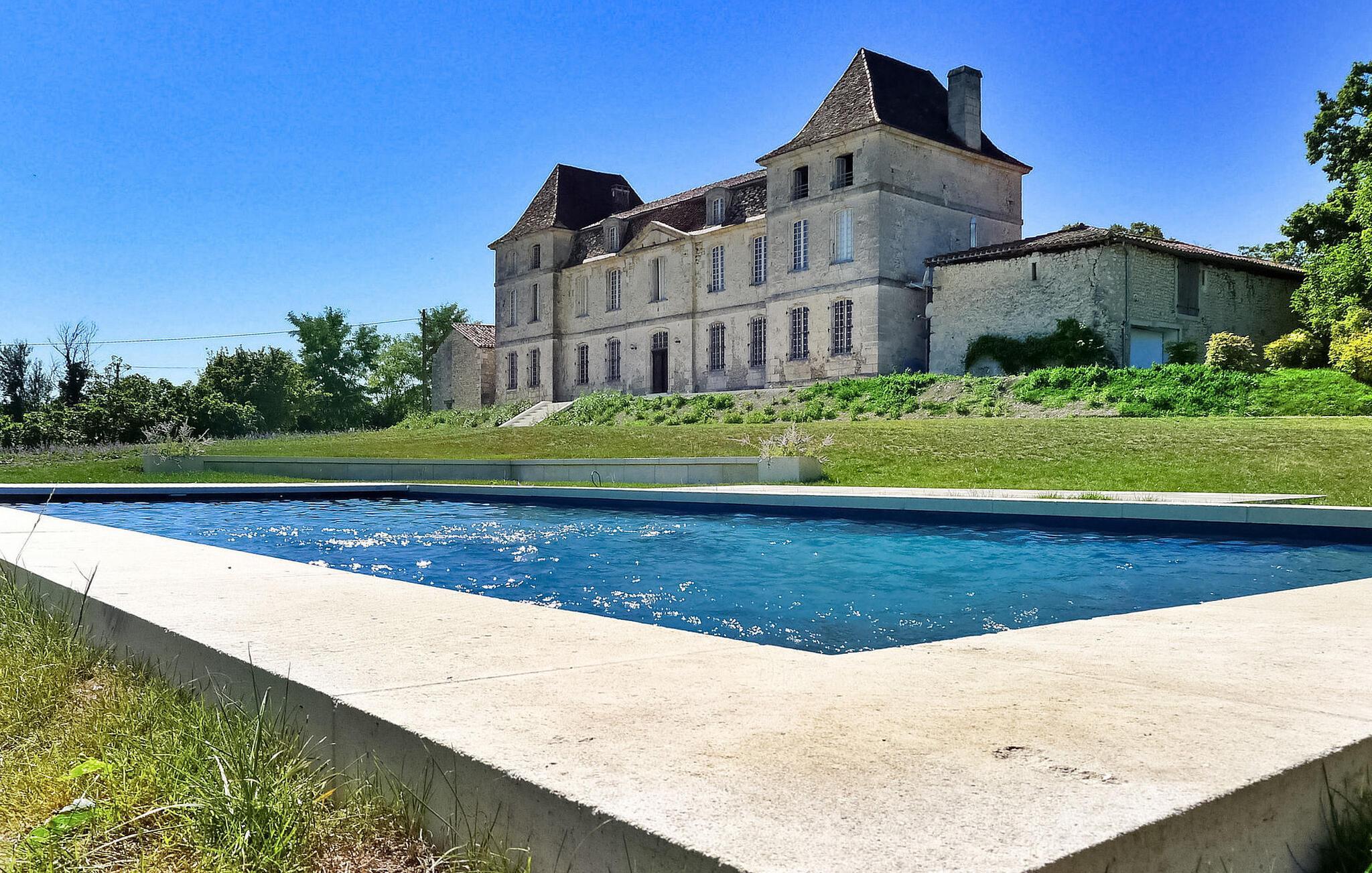 hjertet af Dordogne kan du opdage et uforglemmeligt slot fra det 18. århundrede midt i et stort område. Denne historiske bolig kan prale af en privat opvarmet pool og storslået storhed. Slottets stueetage har en storslået entré med trappe. Østfløjen byder på en stue med komfortable siddepladser og et skakbord, mens Vestfløjen byder på en rummelig spiseplads og et velindrettet køkken. Stiger op til første sal huser østfløjen to sammenhængende soveværelser, hvoraf det ene har aircondition, mens vestfløjen har yderligere to soveværelser. På anden sal har østfløjen to værelser mere, og vestfløjen har en tv-stue og det sidste soveværelse. Udendørs er slottet omgivet af vidtstrakte grunde med en indre gårdhave og rigelig privat parkering. En overdækket terrasse har en udendørs lounge og spiseplads, mens en anden terrasse har udsigt over poolen. En udhus har et spillelokale, og et kapel ligger på stedet. Den private opvarmede pool suppleres af liggestole og et poolhus med faciliteter. Slottet ligger i Périgord Vert, de nærmeste butikker er i Verteillac omkring 10 km. Bemærk venligst: vagter bor i den tilstødende lejlighed, og en ekstra rengøringsservice er tilgængelig efter anmodning.