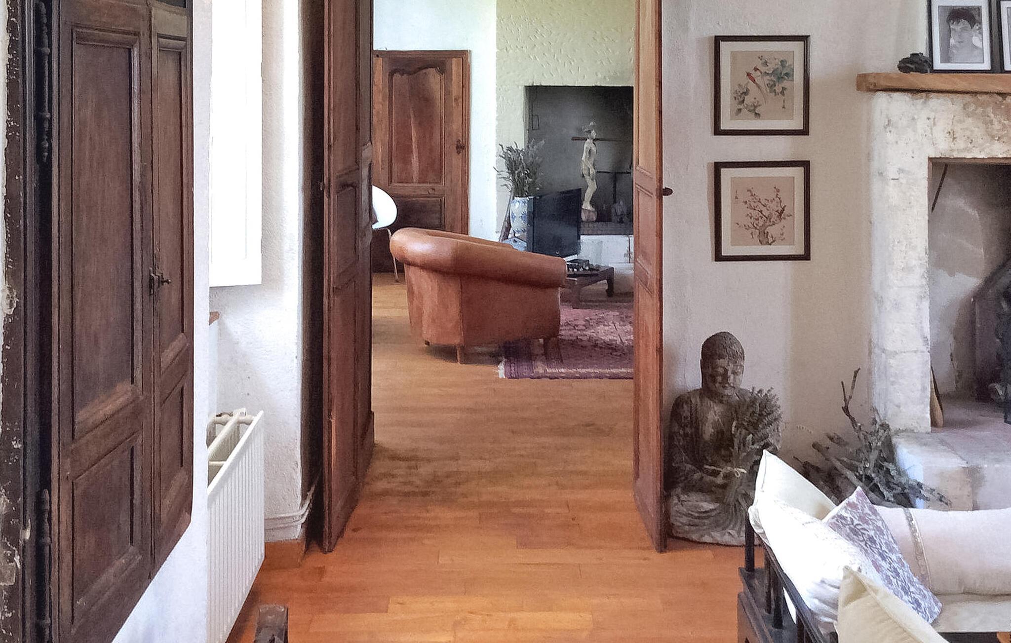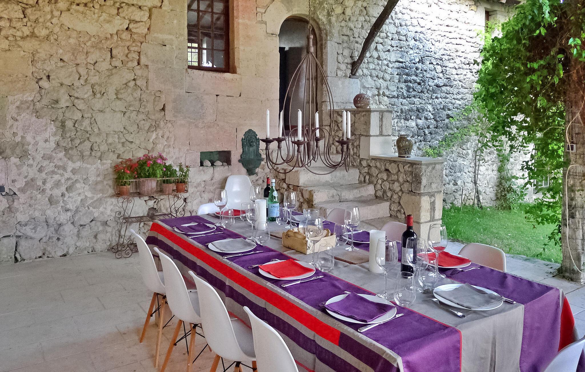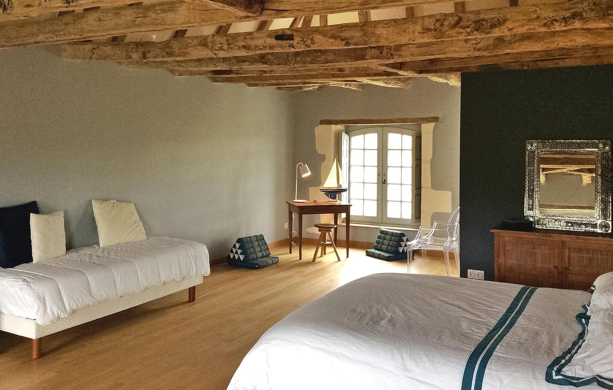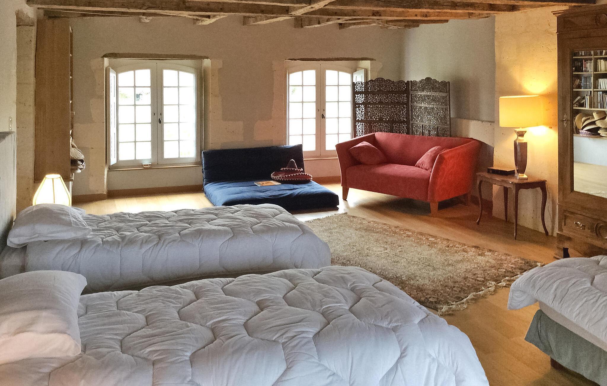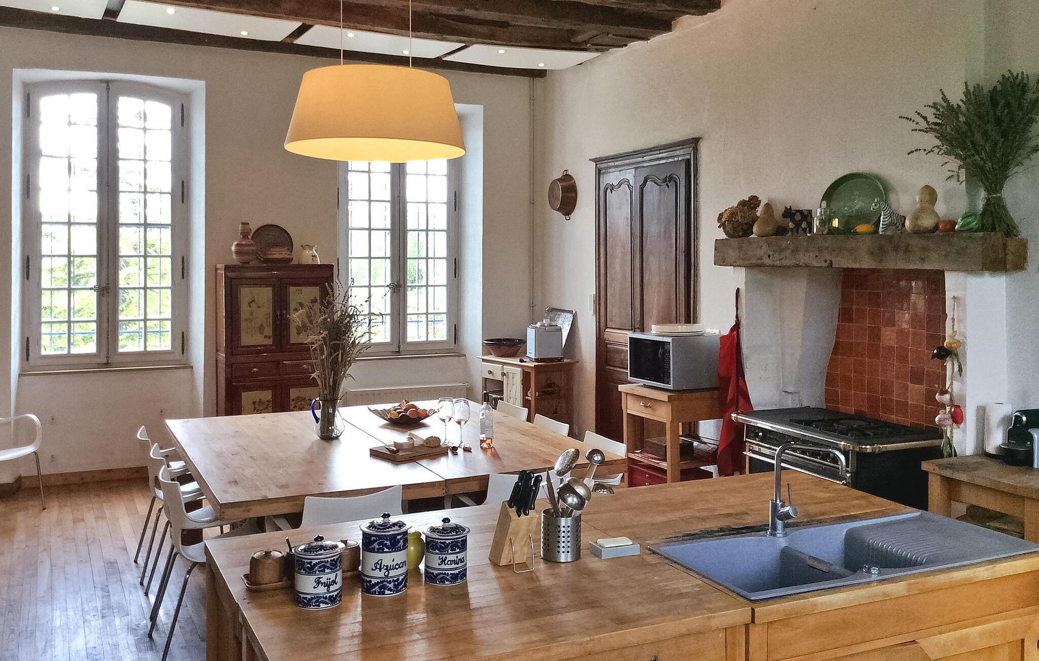 hjertet af Dordogne kan du opdage et uforglemmeligt slot fra det 18. århundrede midt i et stort område. Denne historiske bolig kan prale af en privat opvarmet pool og storslået storhed. Slottets stueetage har en storslået entré med trappe. Østfløjen byder på en stue med komfortable siddepladser og et skakbord, mens Vestfløjen byder på en rummelig spiseplads og et velindrettet køkken. Stiger op til første sal huser østfløjen to sammenhængende soveværelser, hvoraf det ene har aircondition, mens vestfløjen har yderligere to soveværelser. På anden sal har østfløjen to værelser mere, og vestfløjen har en tv-stue og det sidste soveværelse. Udendørs er slottet omgivet af vidtstrakte grunde med en indre gårdhave og rigelig privat parkering. En overdækket terrasse har en udendørs lounge og spiseplads, mens en anden terrasse har udsigt over poolen. En udhus har et spillelokale, og et kapel ligger på stedet. Den private opvarmede pool suppleres af liggestole og et poolhus med faciliteter. Slottet ligger i Périgord Vert, de nærmeste butikker er i Verteillac omkring 10 km. Bemærk venligst: vagter bor i den tilstødende lejlighed, og en ekstra rengøringsservice er tilgængelig efter anmodning.