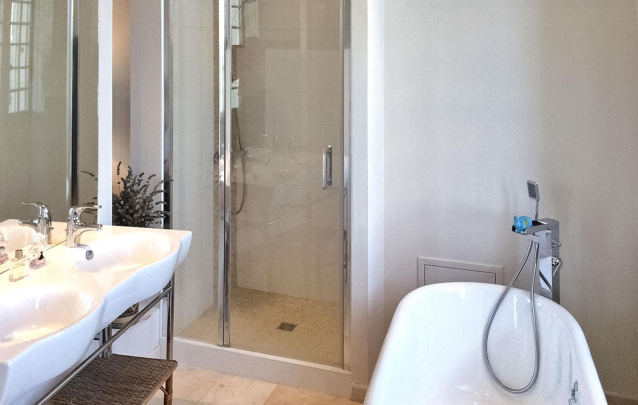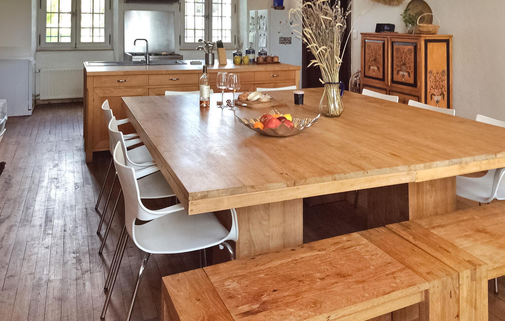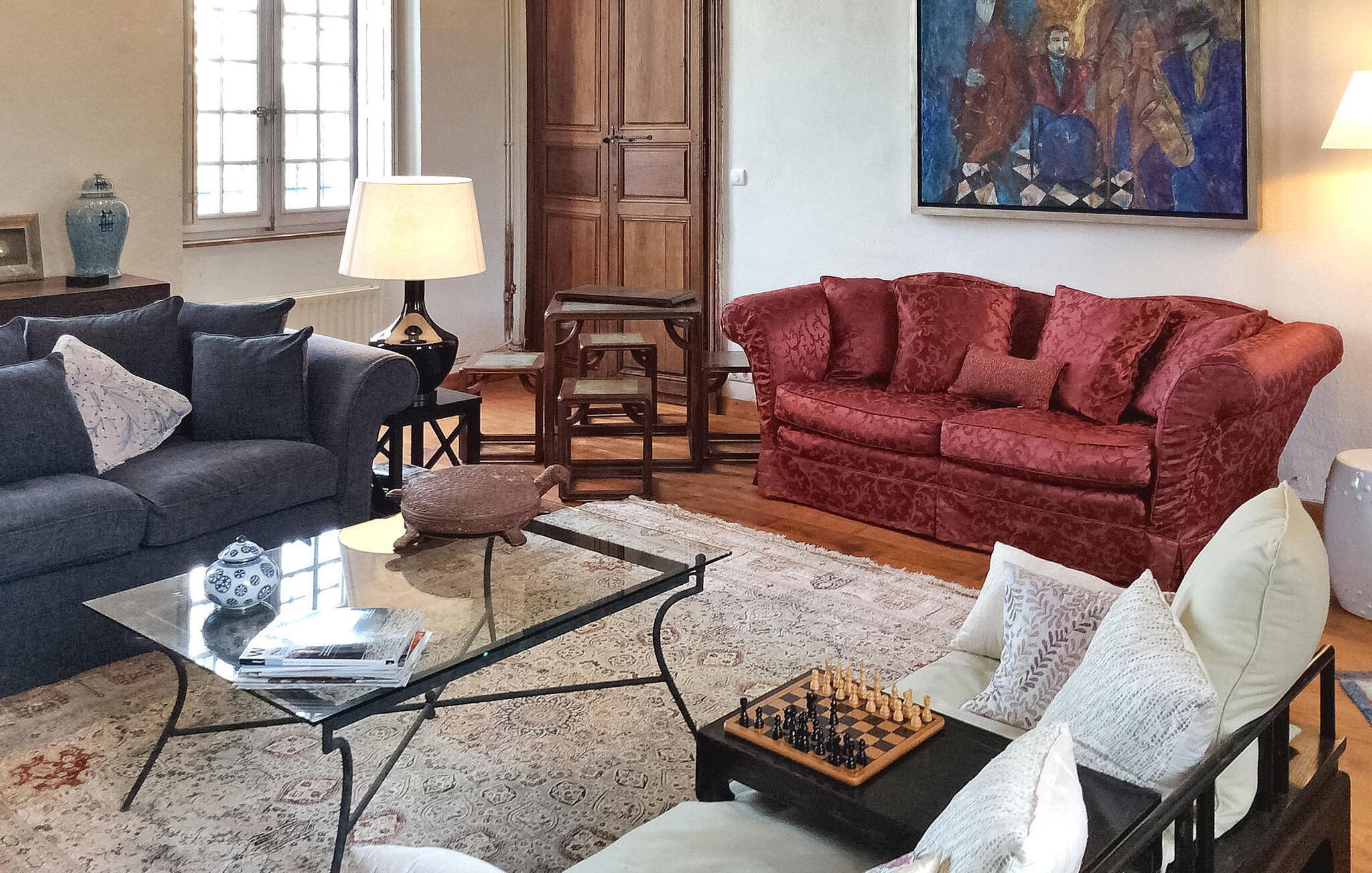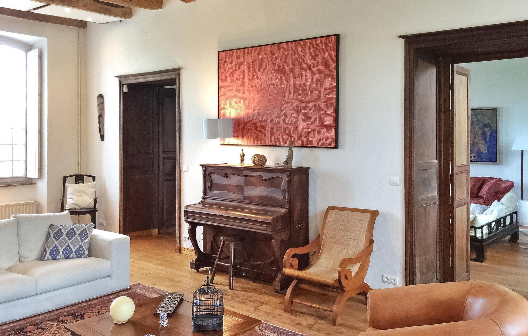 hjertet af Dordogne kan du opdage et uforglemmeligt slot fra det 18. århundrede midt i et stort område. Denne historiske bolig kan prale af en privat opvarmet pool og storslået storhed. Slottets stueetage har en storslået entré med trappe. Østfløjen byder på en stue med komfortable siddepladser og et skakbord, mens Vestfløjen byder på en rummelig spiseplads og et velindrettet køkken. Stiger op til første sal huser østfløjen to sammenhængende soveværelser, hvoraf det ene har aircondition, mens vestfløjen har yderligere to soveværelser. På anden sal har østfløjen to værelser mere, og vestfløjen har en tv-stue og det sidste soveværelse. Udendørs er slottet omgivet af vidtstrakte grunde med en indre gårdhave og rigelig privat parkering. En overdækket terrasse har en udendørs lounge og spiseplads, mens en anden terrasse har udsigt over poolen. En udhus har et spillelokale, og et kapel ligger på stedet. Den private opvarmede pool suppleres af liggestole og et poolhus med faciliteter. Slottet ligger i Périgord Vert, de nærmeste butikker er i Verteillac omkring 10 km. Bemærk venligst: vagter bor i den tilstødende lejlighed, og en ekstra rengøringsservice er tilgængelig efter anmodning.