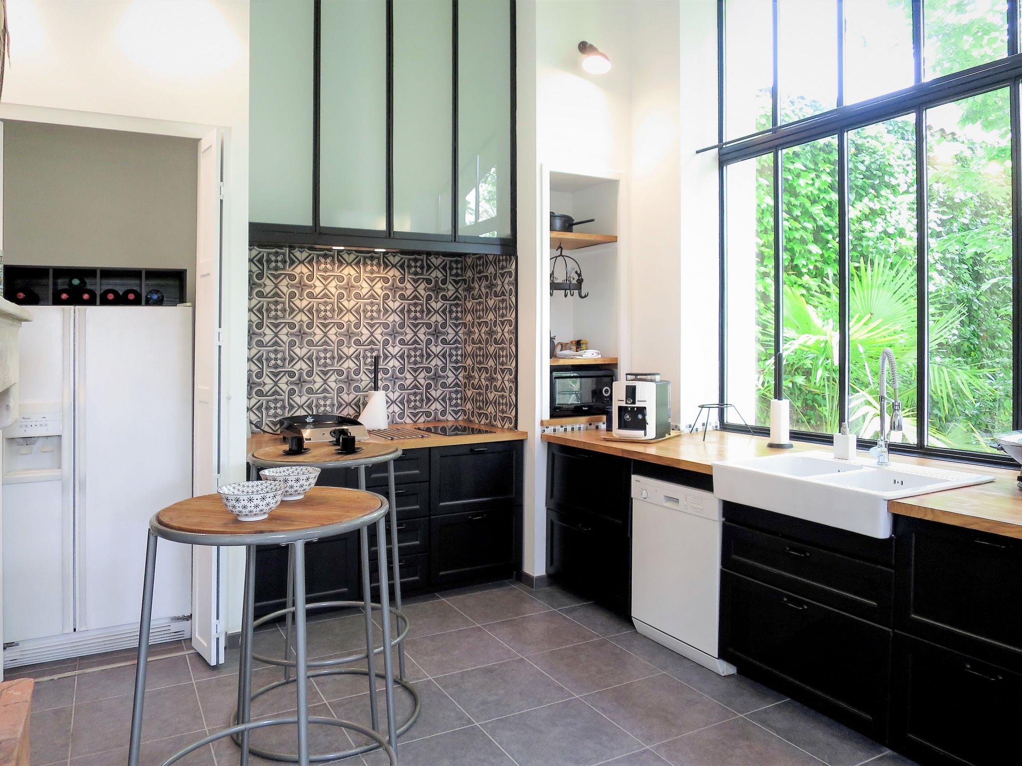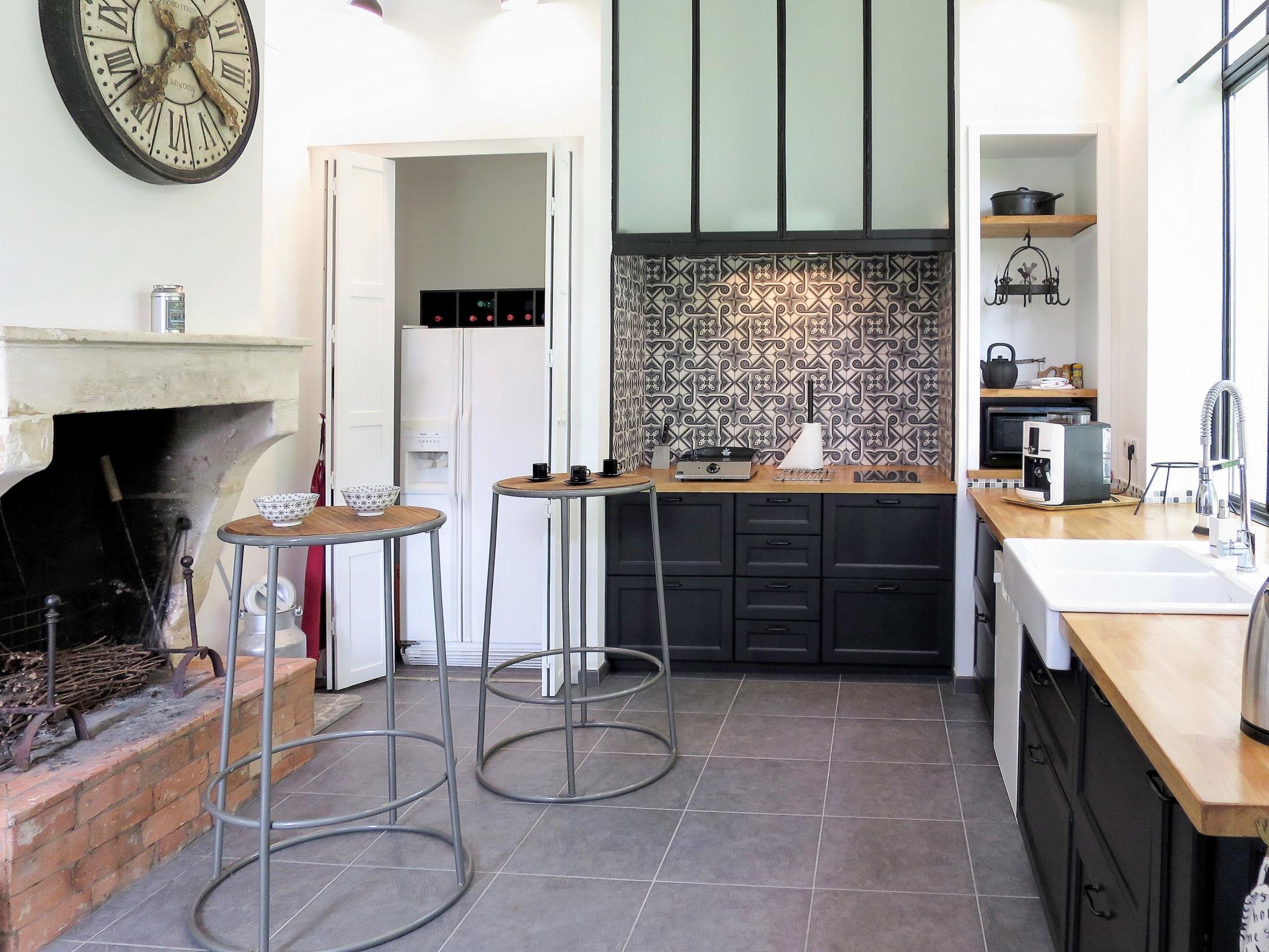 "La Vertheuillaise", 2-room house 80 m2 on 2 levels. Bright, beautiful and cosy furnishings: living/dining room with dining table, radio and CD-player. Exit to the garden. Large kitchen (dishwasher, 2 ceramic glass hob hotplates, toaster, kettle, microwave, freezer, electric coffee machine) with open-hearth fireplace (only for decoration). Exit to the garden. Shower/WC, double hand-basin. Upper floor: open gallery with sloping ceilings with 2 beds (90 cm, length 190 cm). 1 open room with sloping ceilings with rooflight with 1 french bed (140 cm, length 190 cm). Electric heating. Terrace furniture, deck chairs (4), box-room. Facilities: iron. Internet (WiFi, free). Please note: non-smoking house. Smoke alarm. Instead of an enclosed bedroom, some sleeping areas are located in an open-plan area (gallery, alcove, etc.). FR3157.651.1