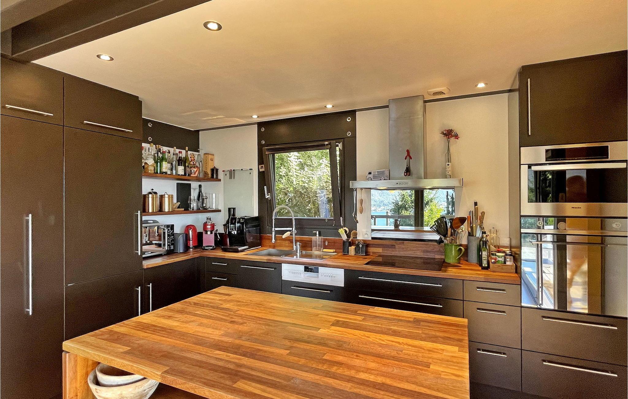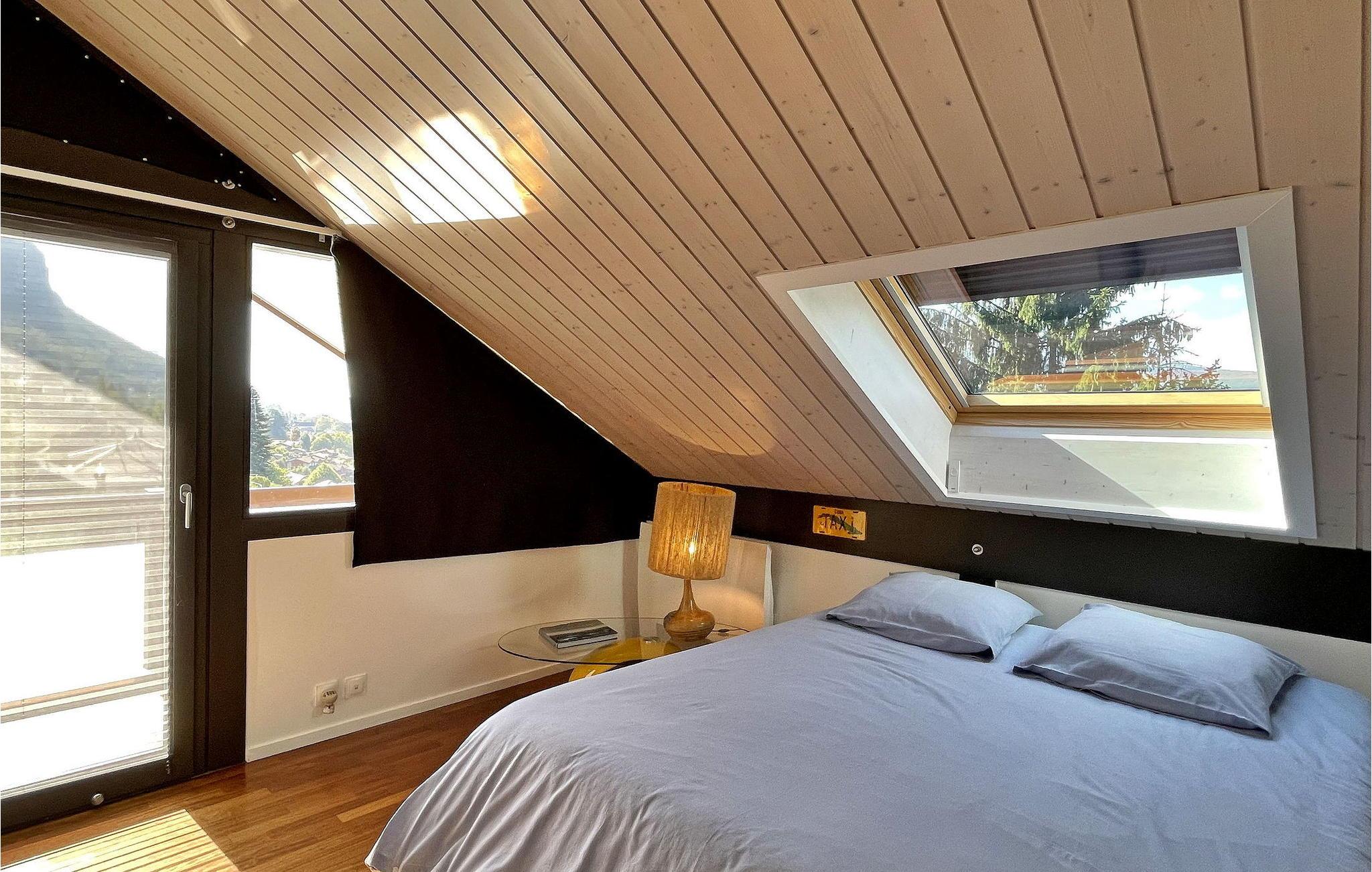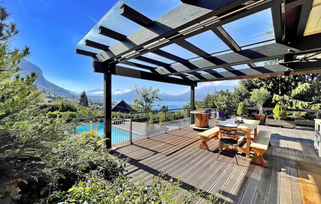 Oplev freden i Veyrier du Lac i denne moderne, slående villa med en fascinerende udsigt over Annecy-søen, kun 600 m gåtur fra søen. Stueetagen byder dig velkommen med en indbydende entré, der problemfrit smelter sammen i opholdsstuen, prydet med komfortable sofaer, en spiseplads og et fuldt udstyret åbent køkken med moderne apparater og bekvemmeligheder. Gå op til første sal, hvor du finder to af soveværelserne, hvoraf det ene har en malerisk udsigt over søen. Haveniveauet rummer det tredje soveværelse, som har direkte adgang ud til haven. Udendørs kan du nyde at sidde på den delvist overdækkede terrasse med fængslende udsigt over søen, udstyret med en plancha til udendørs spisning. Den private opvarmede pool, sikret med et sikkerhedsdæksel, venter på dine fritidsstunder på solterrassen. Villaen ligger i bakkerne over landsbyen Veyrier du Lac ved den solrige side af søen Annecy. Villaen har en smuk udsigt over søen; stranden Veyrier ligger 600 m væk. Villaen ligger tæt på landsbyens centrum med alle nærbutikker (bageri, købmand, restauranter, apotek, læge). Vandsport er en 800m gåtur. Byen Annecy er tilgængelig på cykel via cykelstien. Parapente, ridning og golf i Talloires inden for 5 km. Veyrier du Lac har 2200 indbyggere og er beliggende på solsiden af søen Annecy. Bemærk venligst: Soveværelserne på første sal tilbyder et forfriskende system til sommeren. Haveniveauet kan lejlighedsvis være beboet af ejerens søn, og et selvstændigt studie er placeret på bagsiden af villaen. Der er en lille vej under huset med minimal trafik, som kan mærkes fra terrassen på grund af forbipasserende køretøjer (maks. hastighed: 30 km/t). To cykler i voksenstørrelse er tilgængelige, og søen er let tilgængelig til fods om sommeren.