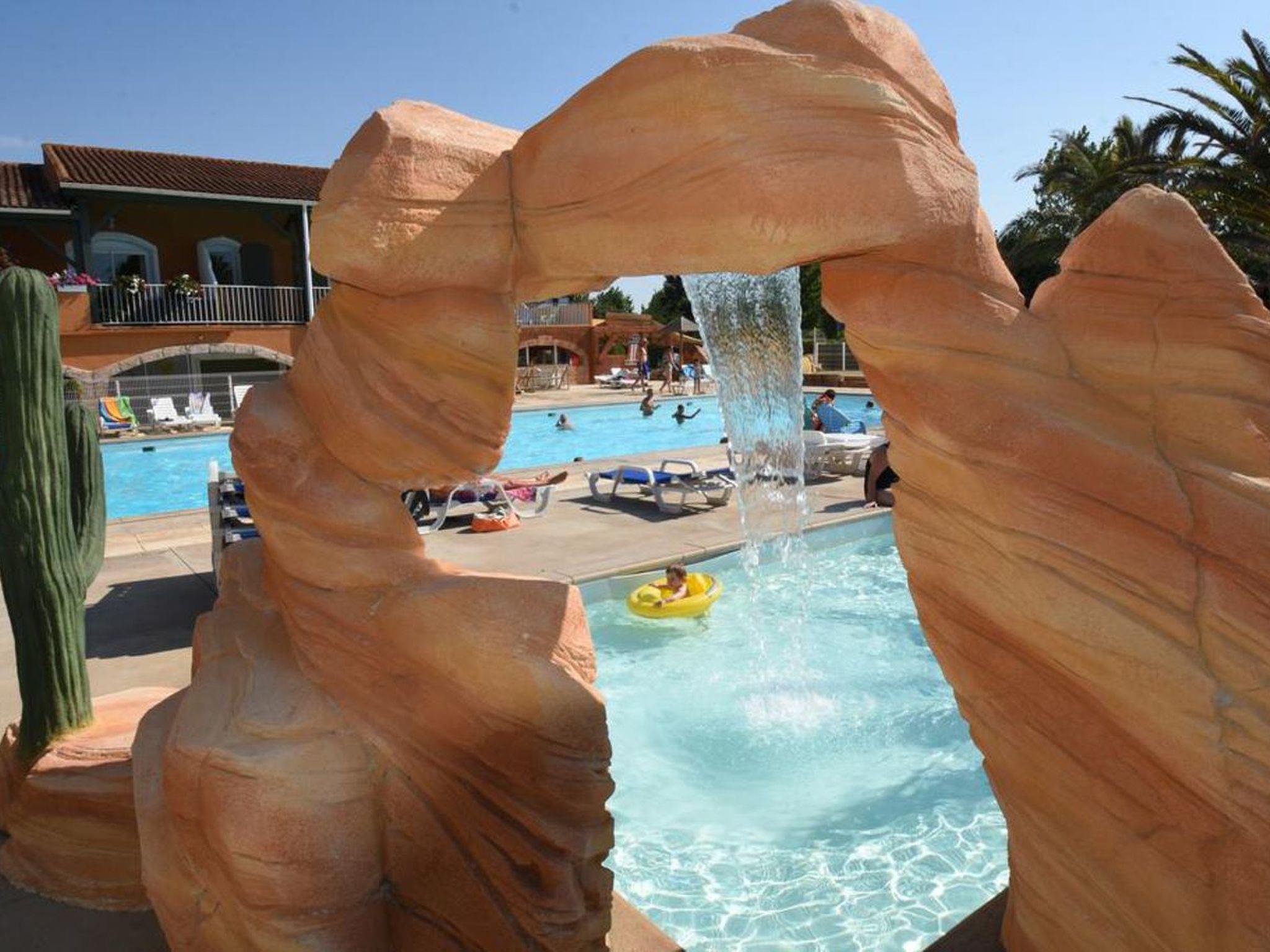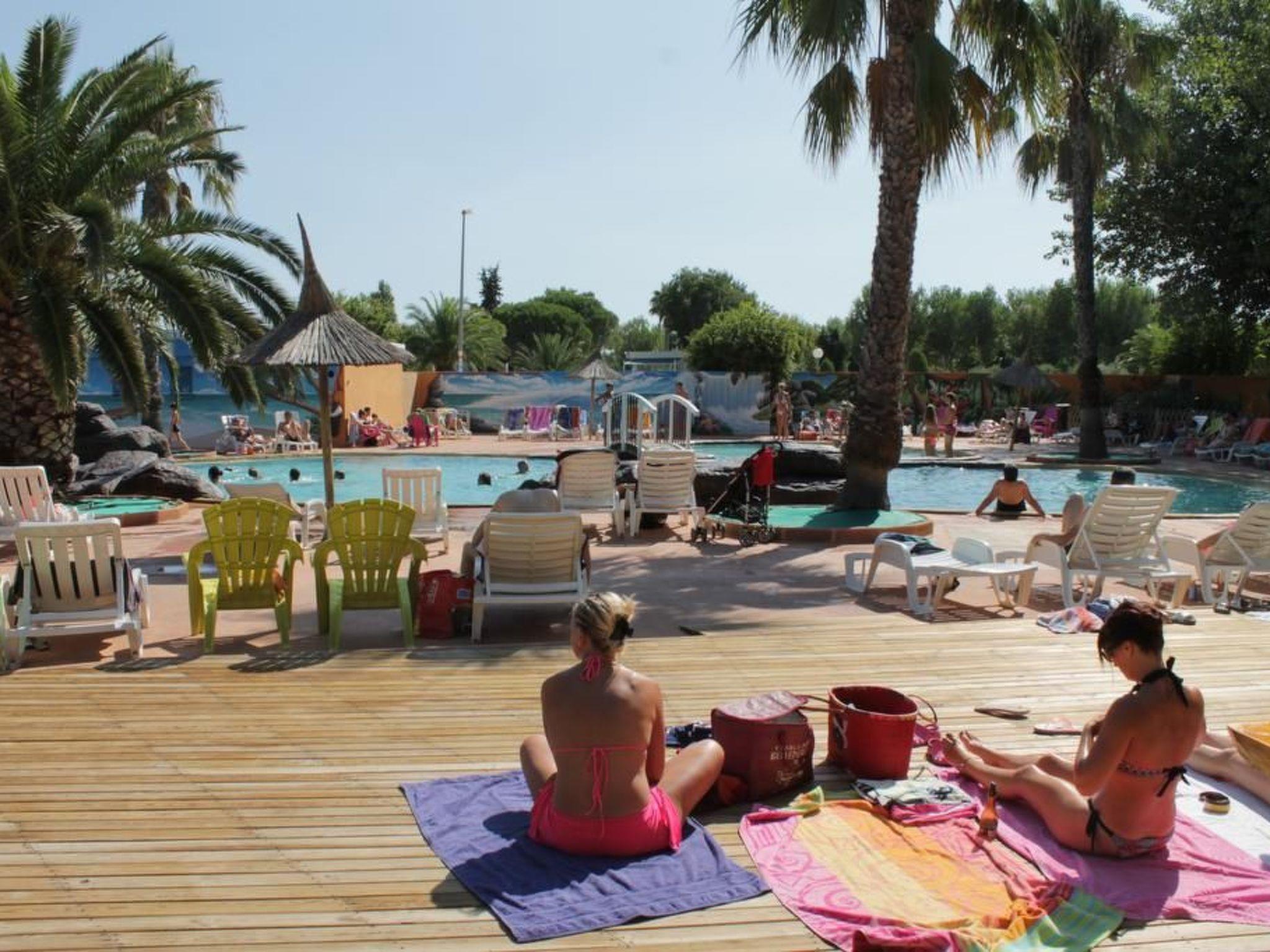 The campsite: A fantastic 4-star campsite right on the Mediterranean with lots of entertainment for young people, great swimming pools, water slides and luxury paddling pool, several playgrounds, disco/entertainment every evening. No one will be bored at this campsite! The campsite is just a few minutes away from the charming seaside resort of Vias-Plage with its restaurants and terraces. The campsite has a restaurant with a bar. Takeaway food, chips and pizza available at the campsite.
