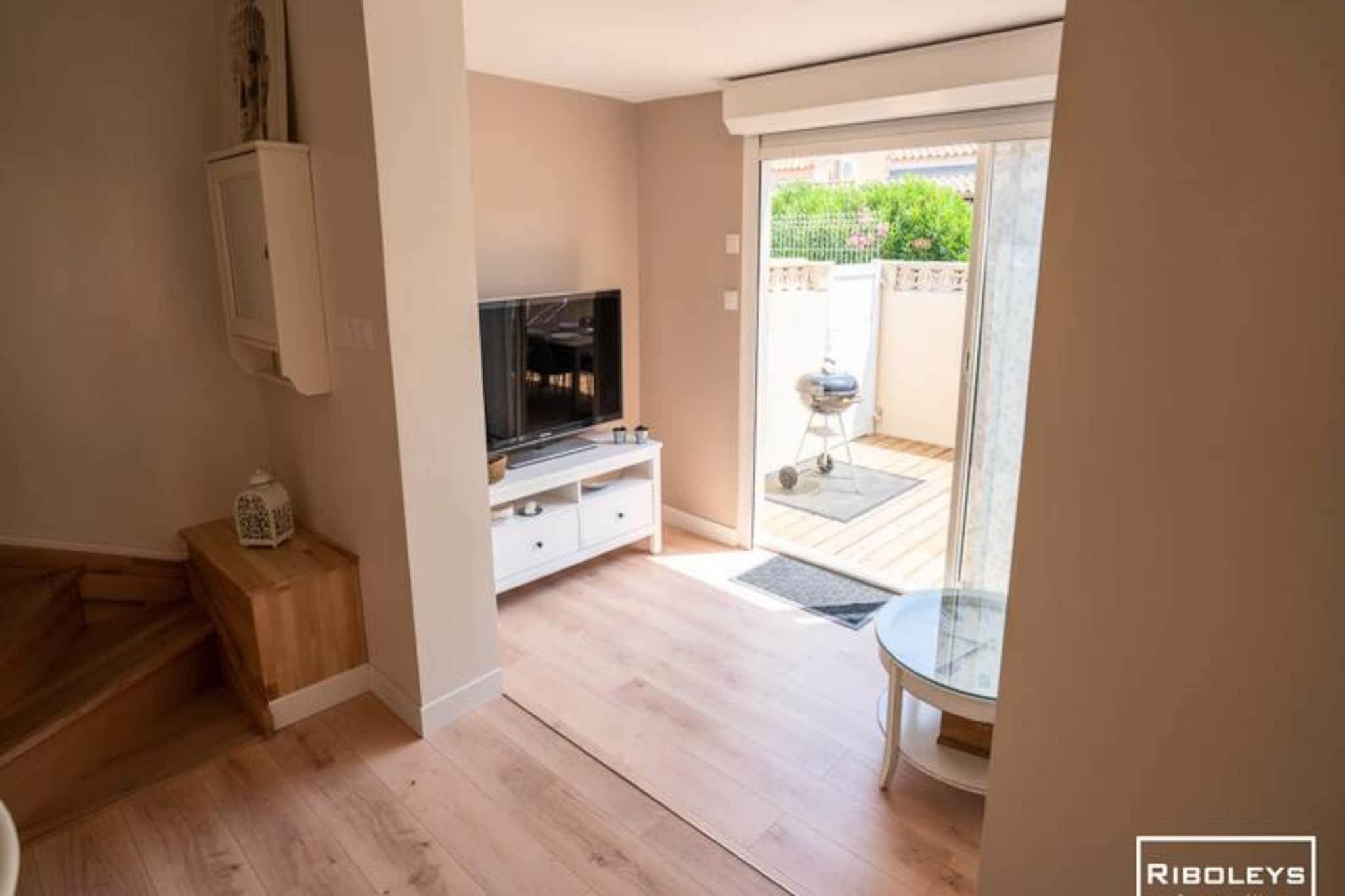 Midt i Middelhavets fredfyldte charme tilbyder denne dejlige villa med to soveværelser i det lukkede område 'Les Ondines' et roligt tilflugtssted for din ferie i Vias. Med sin solbeskinnede terrasse og moderne bekvemmeligheder inviterer denne villa dig til at slappe af og nyde essensen af ??Sydfrankrig. Uanset om du nyder en afslappet morgenmad udendørs eller soler dig i den varme occitanske sol, er hvert øjeblik her designet til afslapning. \n\nIndenfor strækker villaen sig over 45 m² og er omhyggeligt indrettet for at sikre komfort og bekvemmelighed. Stueetagen har en lys opholdsstue med et fuldt udstyret køkken, en hyggelig spiseplads og en indbydende lounge med sofa og tv. Et moderne badeværelse med bruser og en diskret placeret vaskemaskine under trappen bidrager til den praktiske anvendelighed. De to soveværelser er designet til afslappende nætter, hvor det ene i stueetagen tilbyder en udtræksseng og det andet ovenpå har en rummelig dobbeltseng.\n\nTræd udenfor til den private terrasse, hvor en kulgrill venter på dejlige måltider under åben himmel. Villaen inkluderer også en privat parkeringsplads i den sikre residens 'Les Ondines', med yderligere gratis parkering i nærheden. Den rolige, familievenlige atmosfære i lokalsamfundet sikrer et fredeligt ophold.\n\nVias er en pulserende kystby med 5 km sandstrande, traditionelle markeder og den historiske Canal du Midi. Udforsk området på cykel, besøg den berømte forlystelsespark Europark, eller forkæl dig selv med vandsport som paddleboarding og jetski. Med nem adgang til strande, restauranter og butikker er denne villa perfekt placeret til en uforglemmelig middelhavsferie.