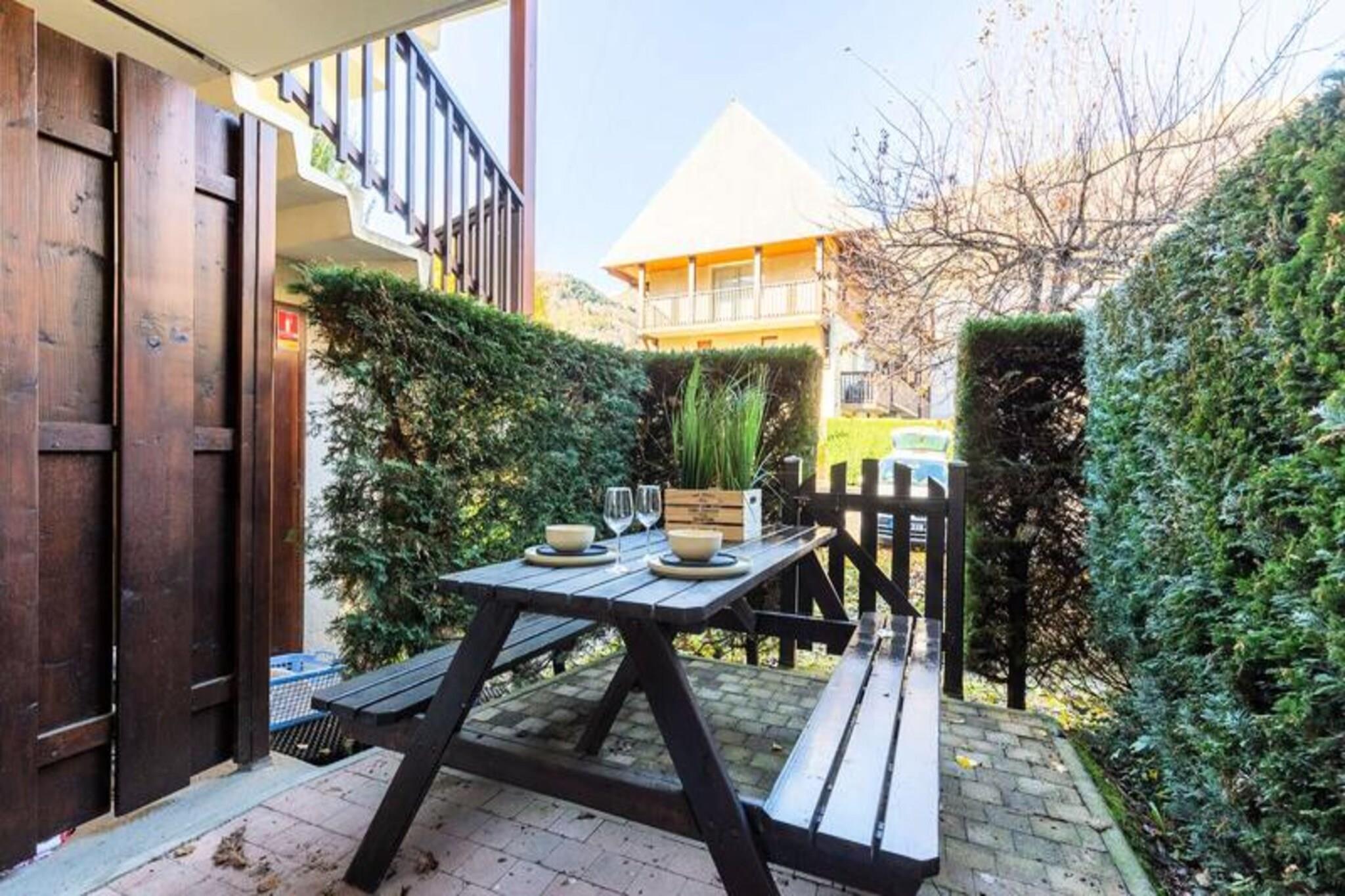 Denne lejlighed i stueetagen kan rumme op til seks personer og byder på et soveværelse med en dobbeltseng, et andet soveværelse med tre enkeltkøjesenge og en sovesofa i stuen. Kæledyr er ikke tilladt. Lejligheden har også en privat have med havemøbler, hvilket giver et behageligt udendørsrum. Lejligheden er bekvemt beliggende 800 meter fra centrum af Saint-Lary-Soulan, tæt på Pic Lumière-svævebanen og det termiske distrikt med gratis shuttle-adgang til skiløjperne. Den nye téléphérique ligger kun 500 meter væk, og en række lokale attraktioner, caféer og butikker ligger inden for gåafstand. Lejligheden er udstyret med et fuldt funktionelt køkken, der inkluderer en 4-brænder elektrisk kogeplade, elektrisk ovn, mikroovn og vaskemaskine. Det separate brusebad og toilet tilbyder ekstra bekvemmelighed. For gæsternes bekvemmelighed er der en privat parkeringsplads og et skiskab. Valgfri tjenester som rengøring, sengetøj, håndklæder og leje af Wi-Fi-boks er tilgængelige efter anmodning.
