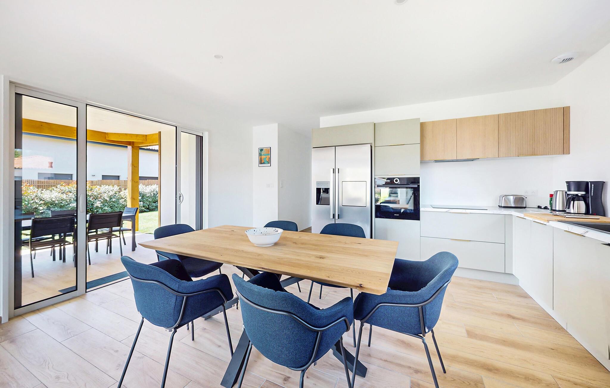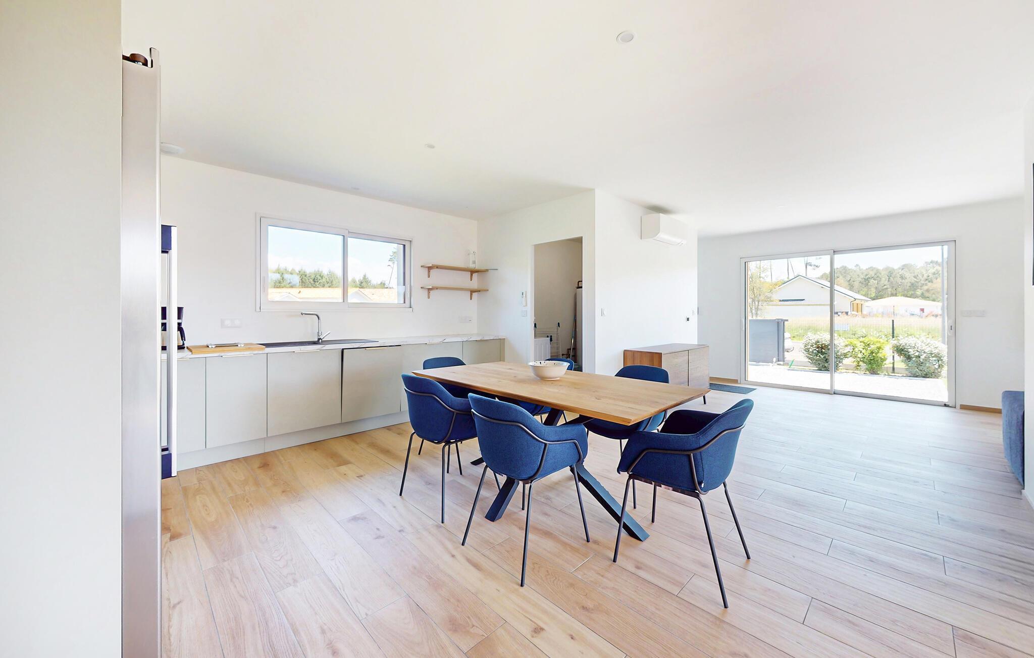 Den rolige beliggenhed i Dette feriehus og nærheden til Atlanterhavsstrandene giver optimale betingelser for en vellykket familieferie. Træd ind i de lyse, moderne møblerede værelser og føl jer straks hjemme. Den rummelige opholdsstue med en behagelig sofa og store vinduer åbner ud mod haven og skaber en luftig atmosfære. Brug det åbne køkken til fælles måltider og tilbring tid sammen ved spisebordet. De rene linjer, varme trægulve og stilfulde møbler skaber en behagelig atmosfære.